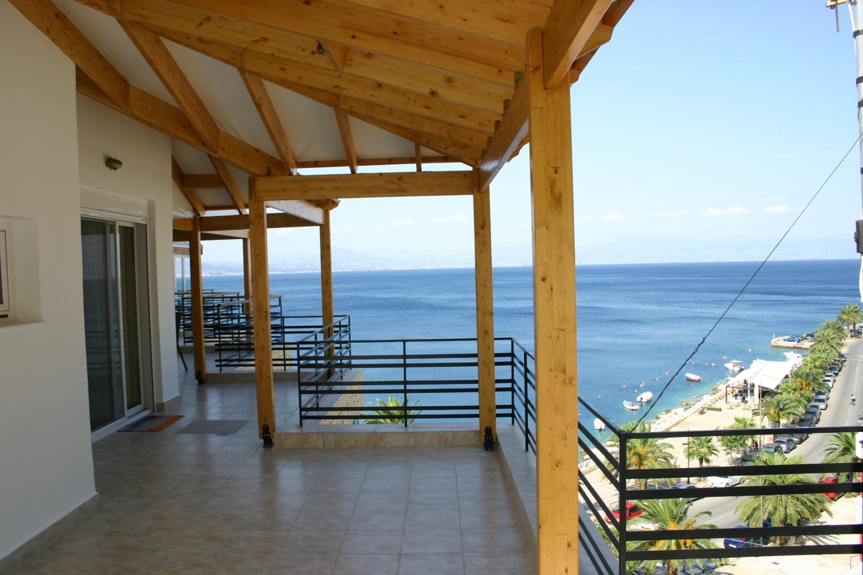 Experience spacious rooms equipped with TV, fridge, and air conditioning, all overlooking the mesmerizing Korinthian Bay from a large balcony.