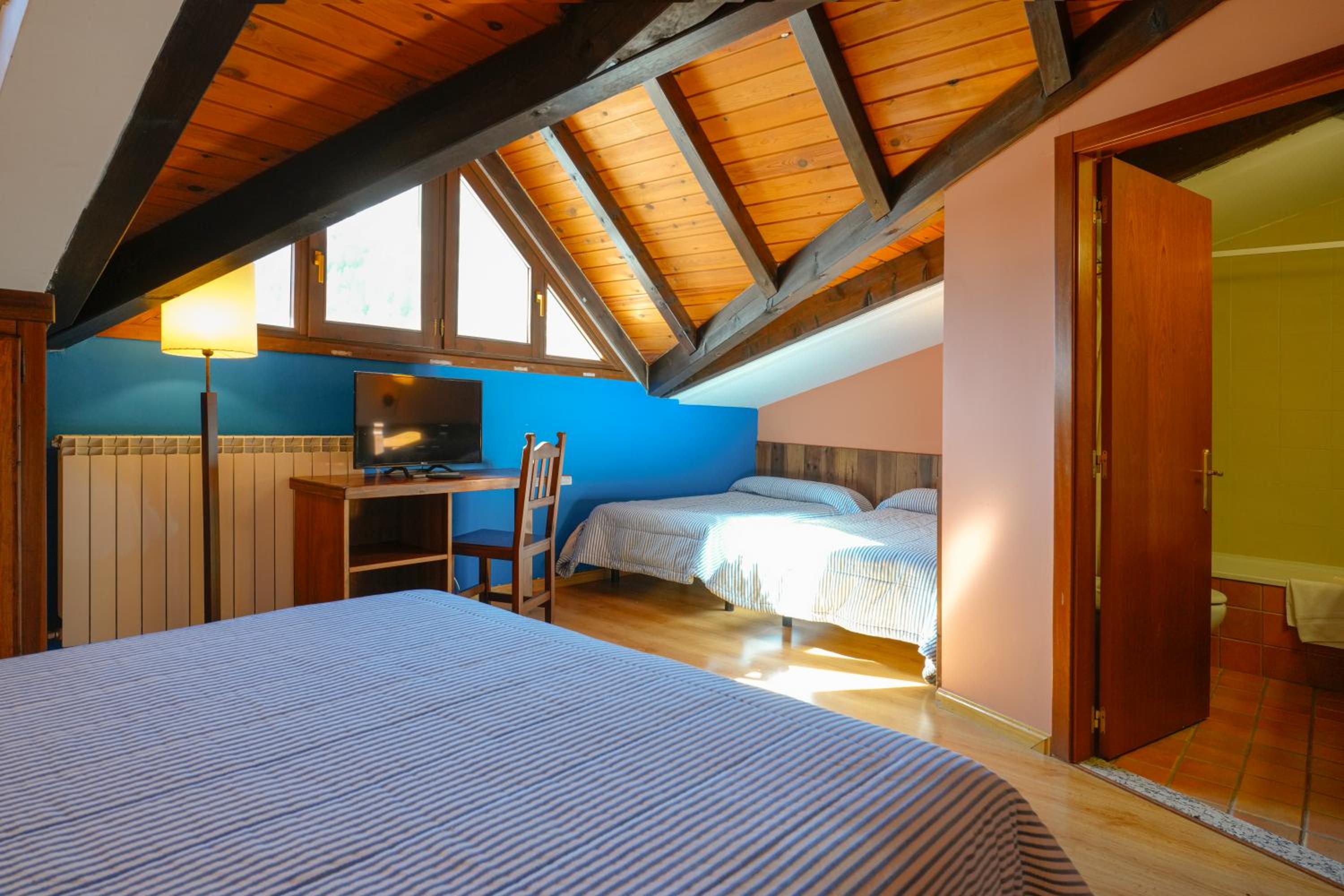 Each room at our 2-star hotel is thoughtfully equipped with a desk, flat-screen TV, and a private bathroom. Relax in comfort with quality bed linen and towels provided. The shared lounge offers a cozy space to unwind after a day of adventure.