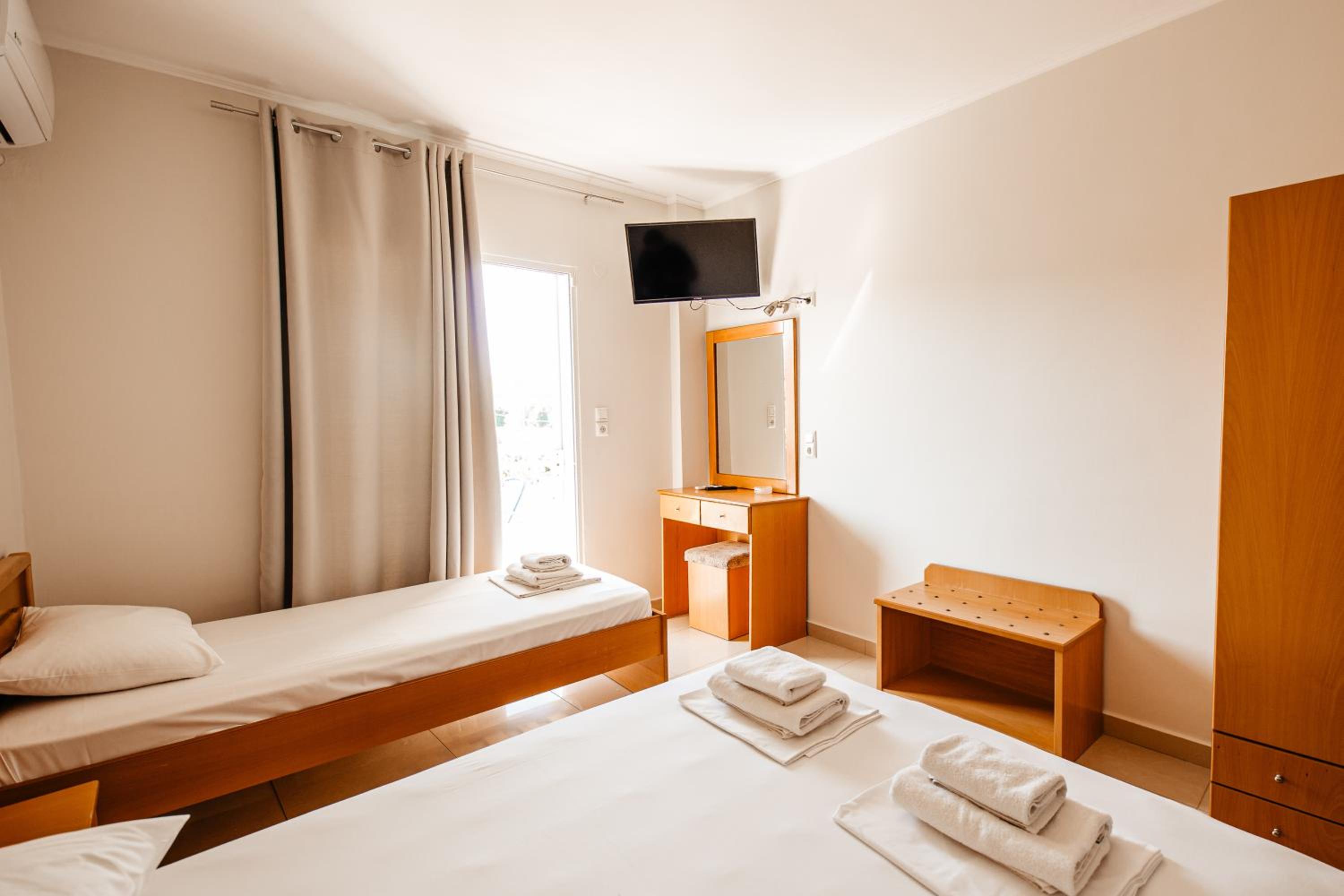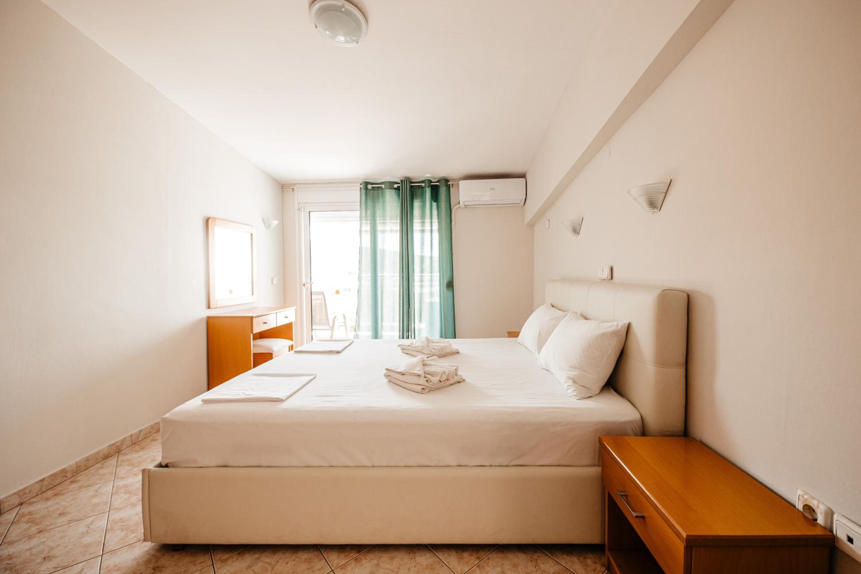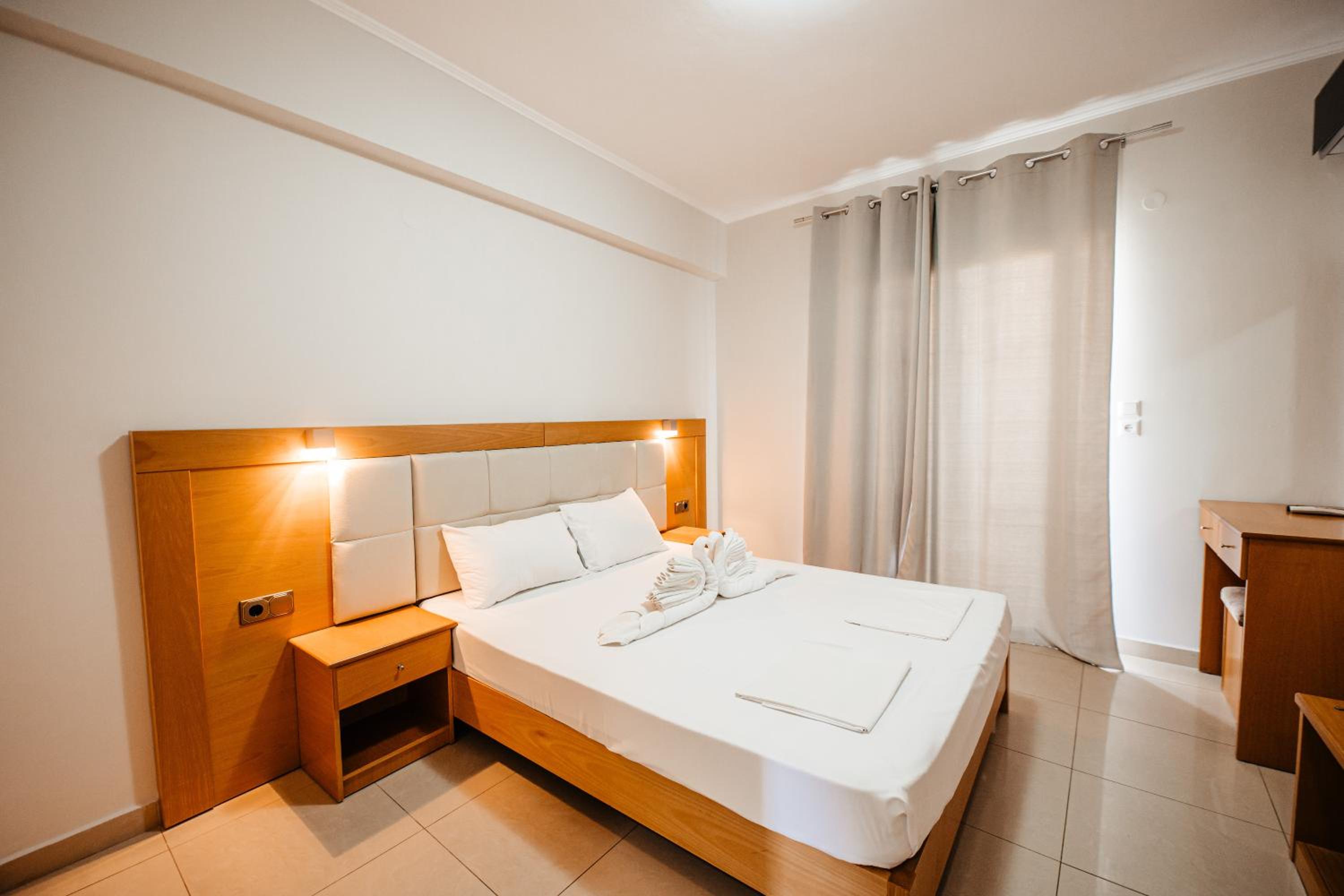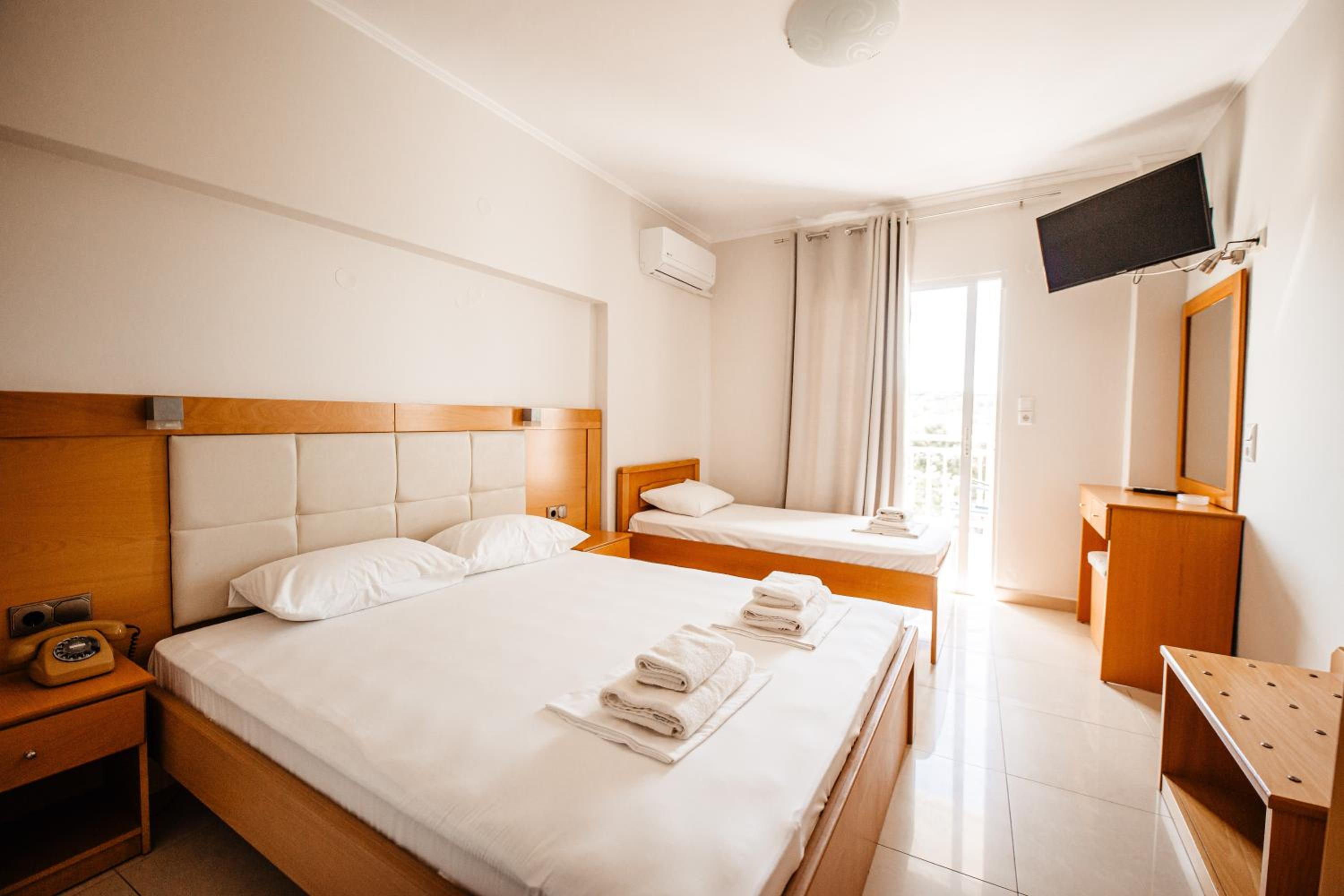 Amazing hotel, the rooms where very well equipted but also really nicely decorated. It's located two minutes to the beach, and our room on the second floor had a partial see view. The rooms were cleaned daily. Super friendly staff, Marialena is an amazing host and can't wait to visit her again!!