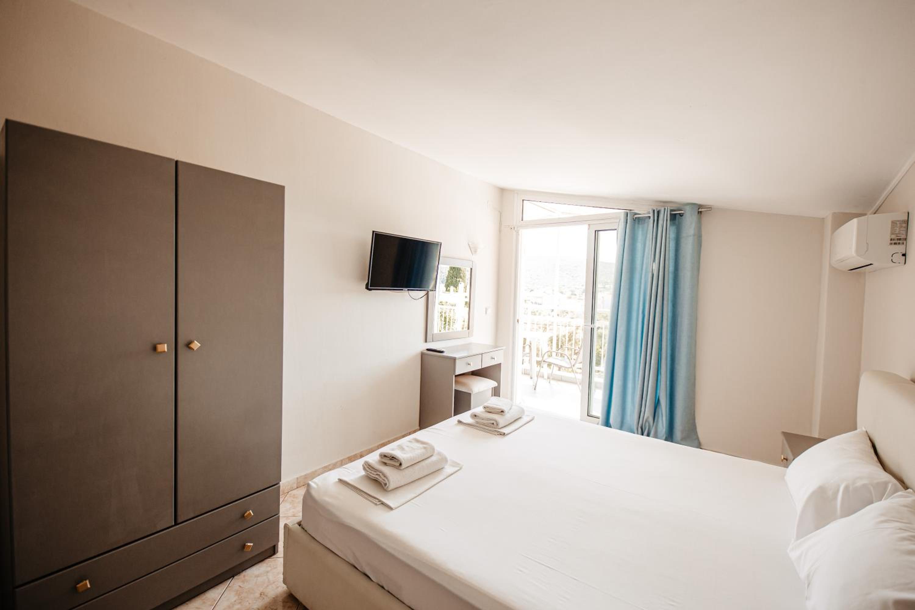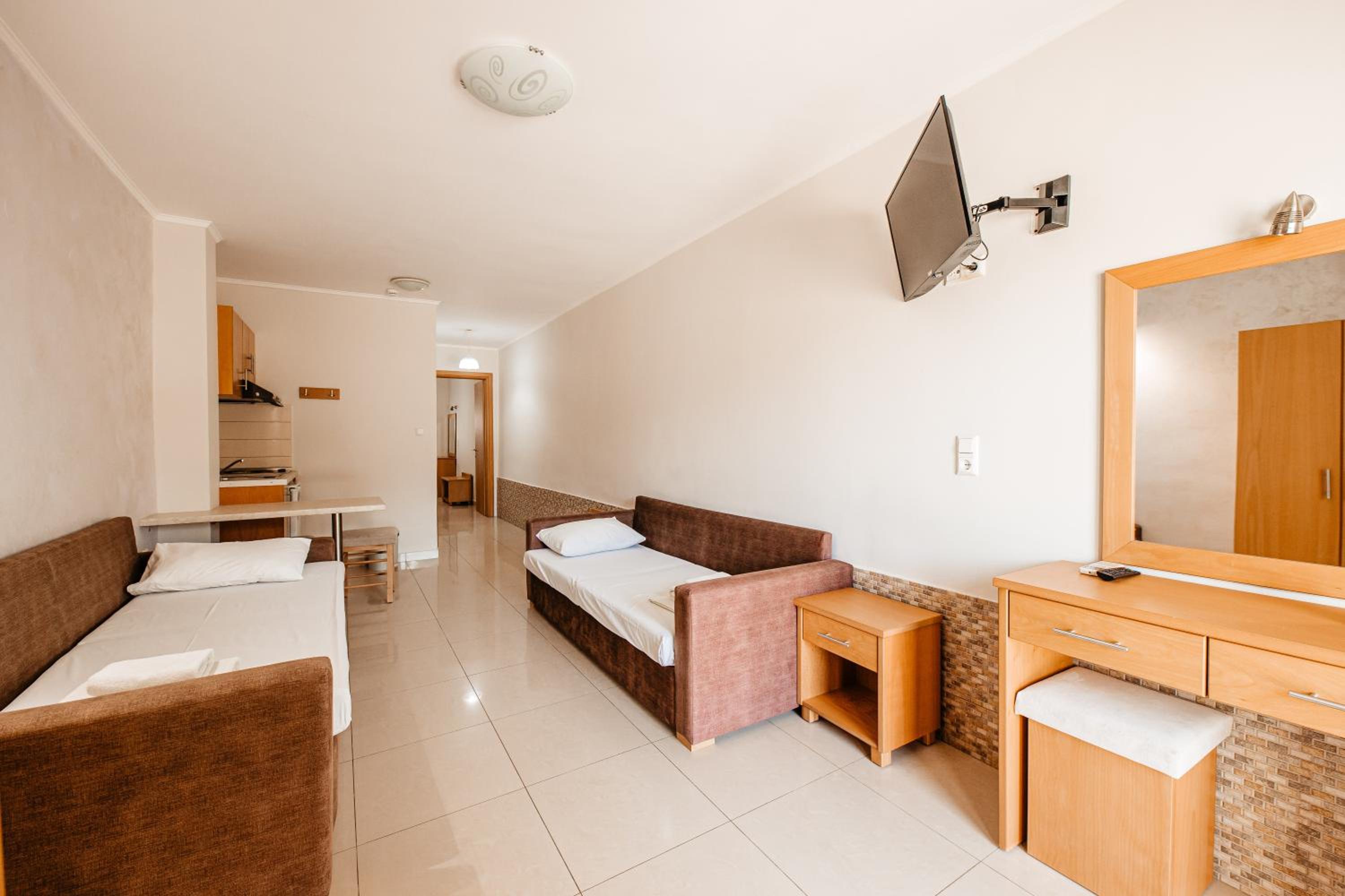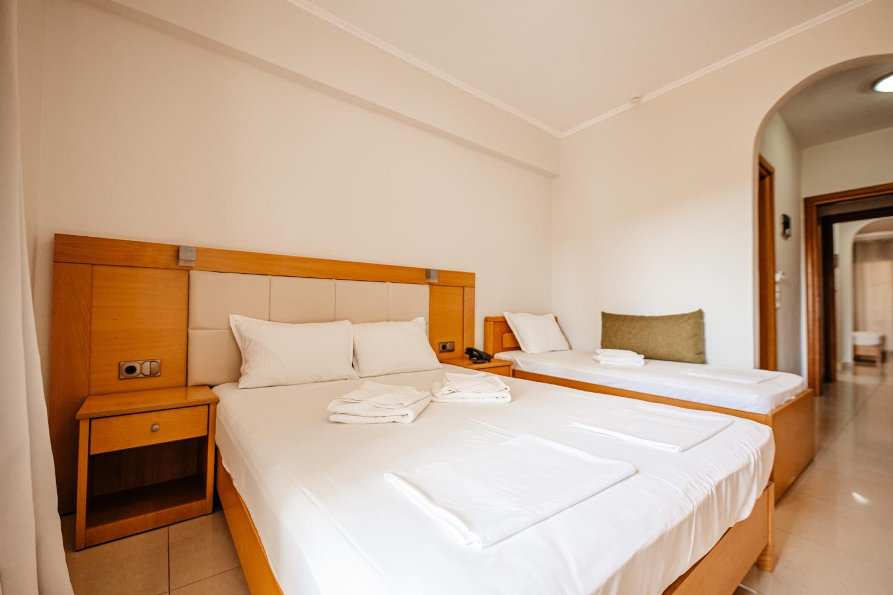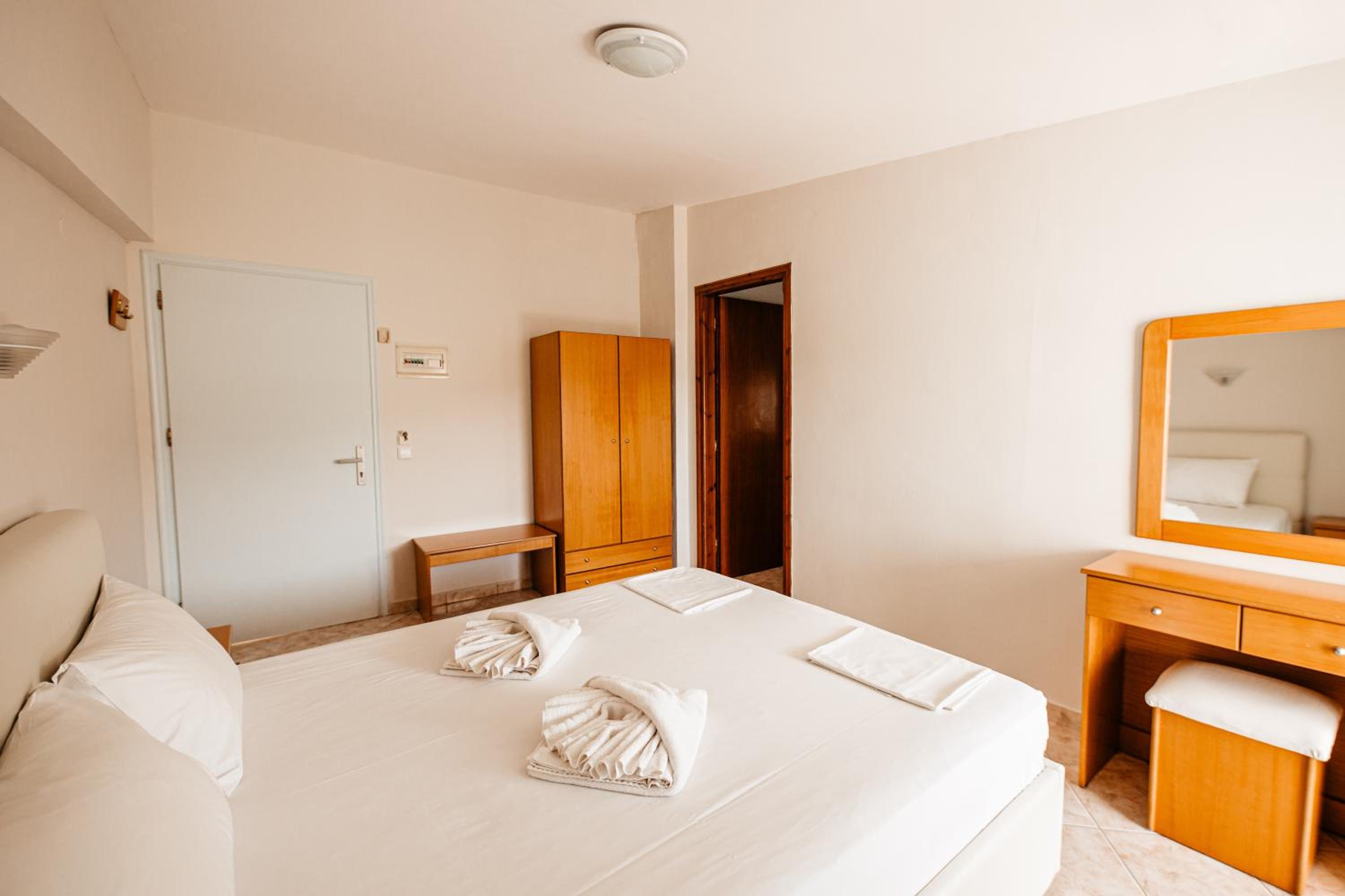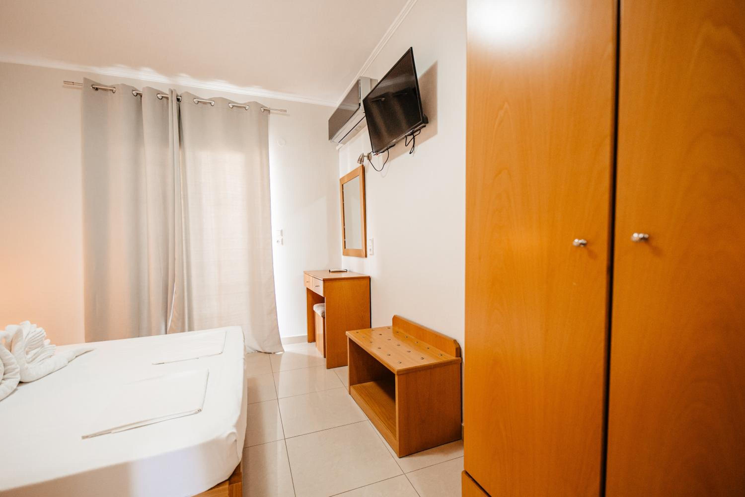 Amazing hotel, the rooms where very well equipted but also really nicely decorated. It's located two minutes to the beach, and our room on the second floor had a partial see view. The rooms were cleaned daily. Super friendly staff, Marialena is an amazing host and can't wait to visit her again!!