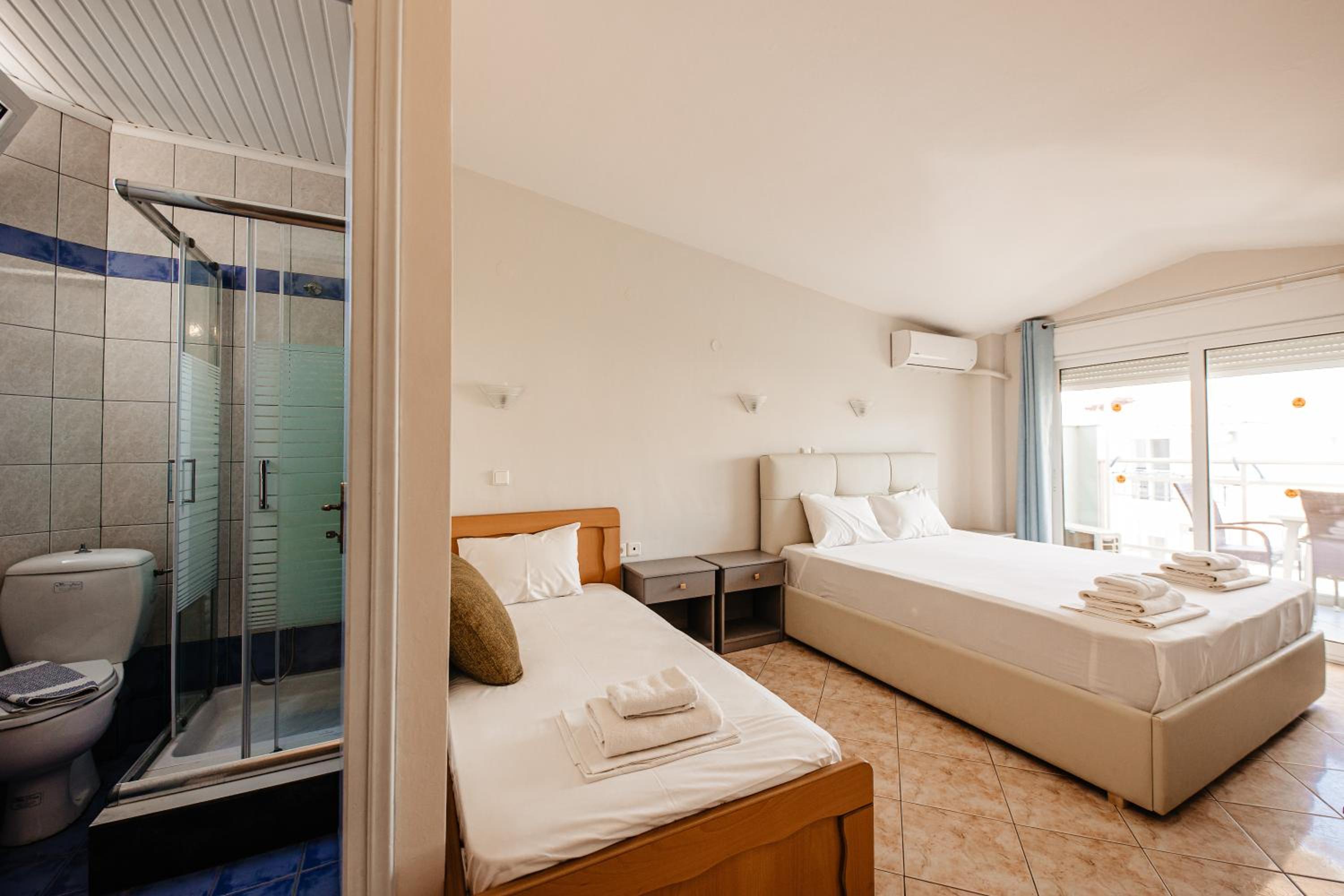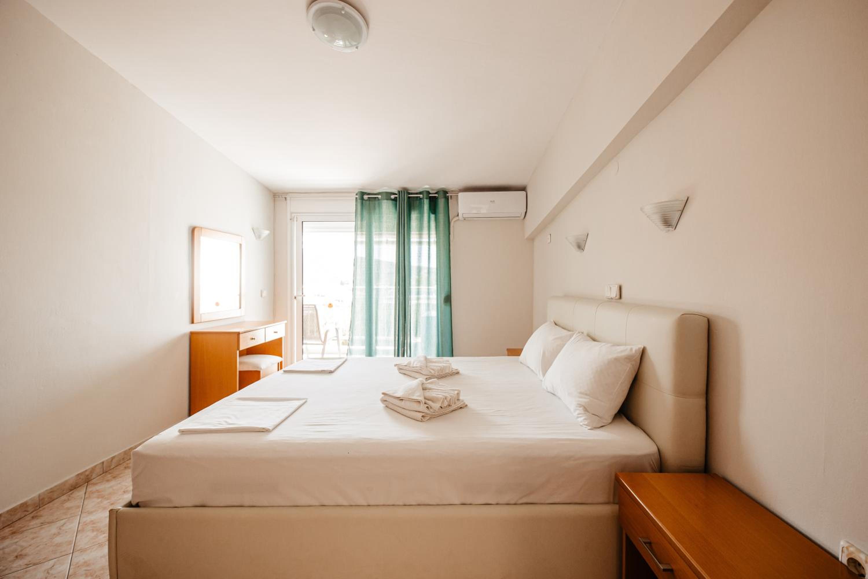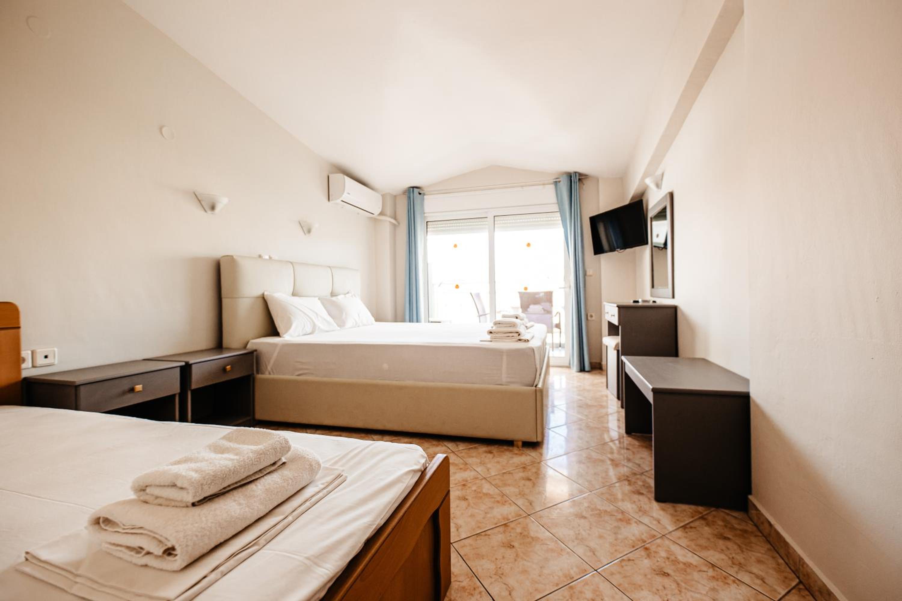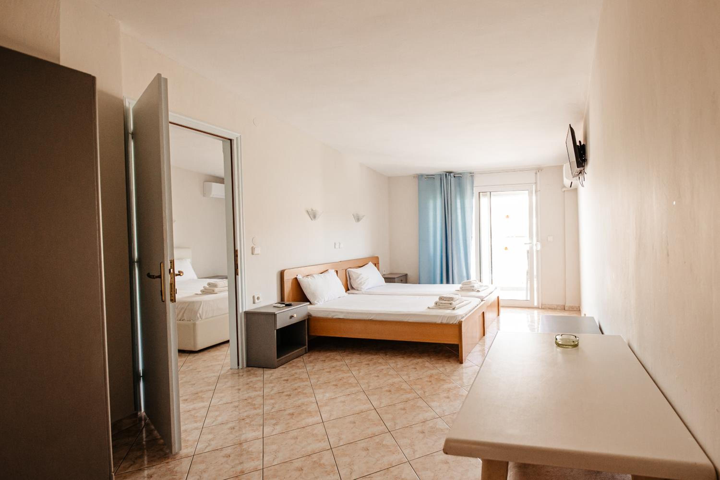 Amazing hotel, the rooms where very well equipted but also really nicely decorated. It's located two minutes to the beach, and our room on the second floor had a partial see view. The rooms were cleaned daily. Super friendly staff, Marialena is an amazing host and can't wait to visit her again!!