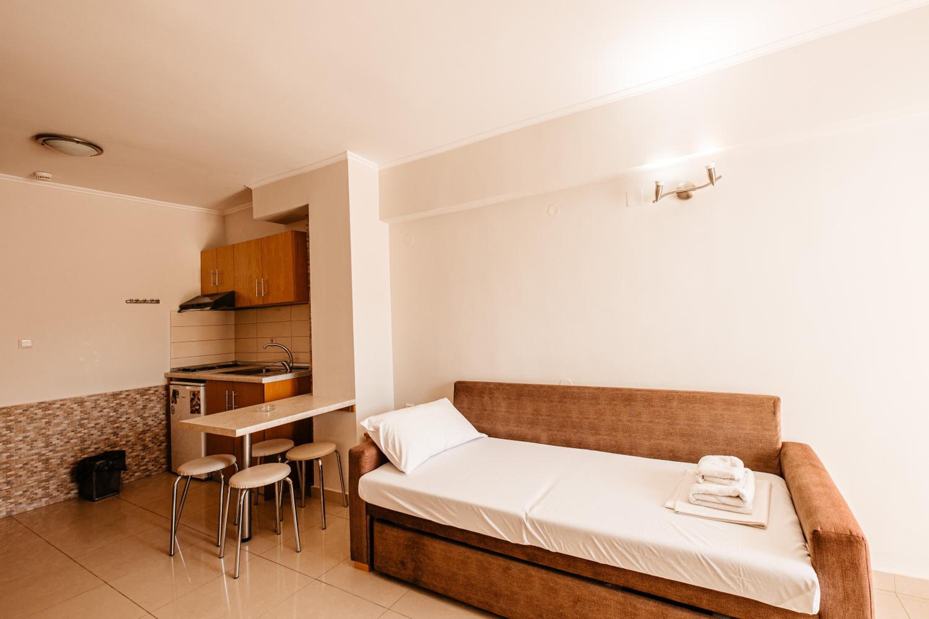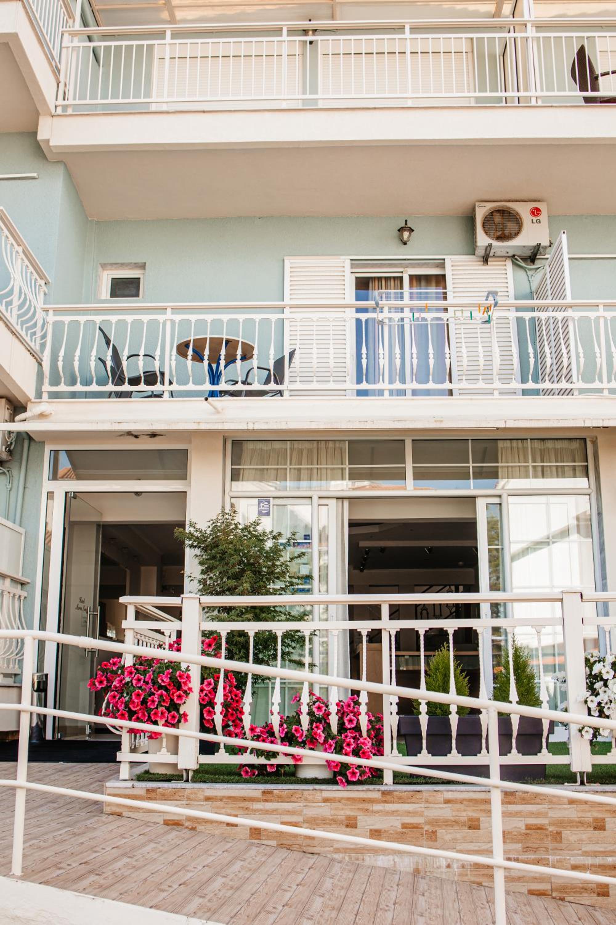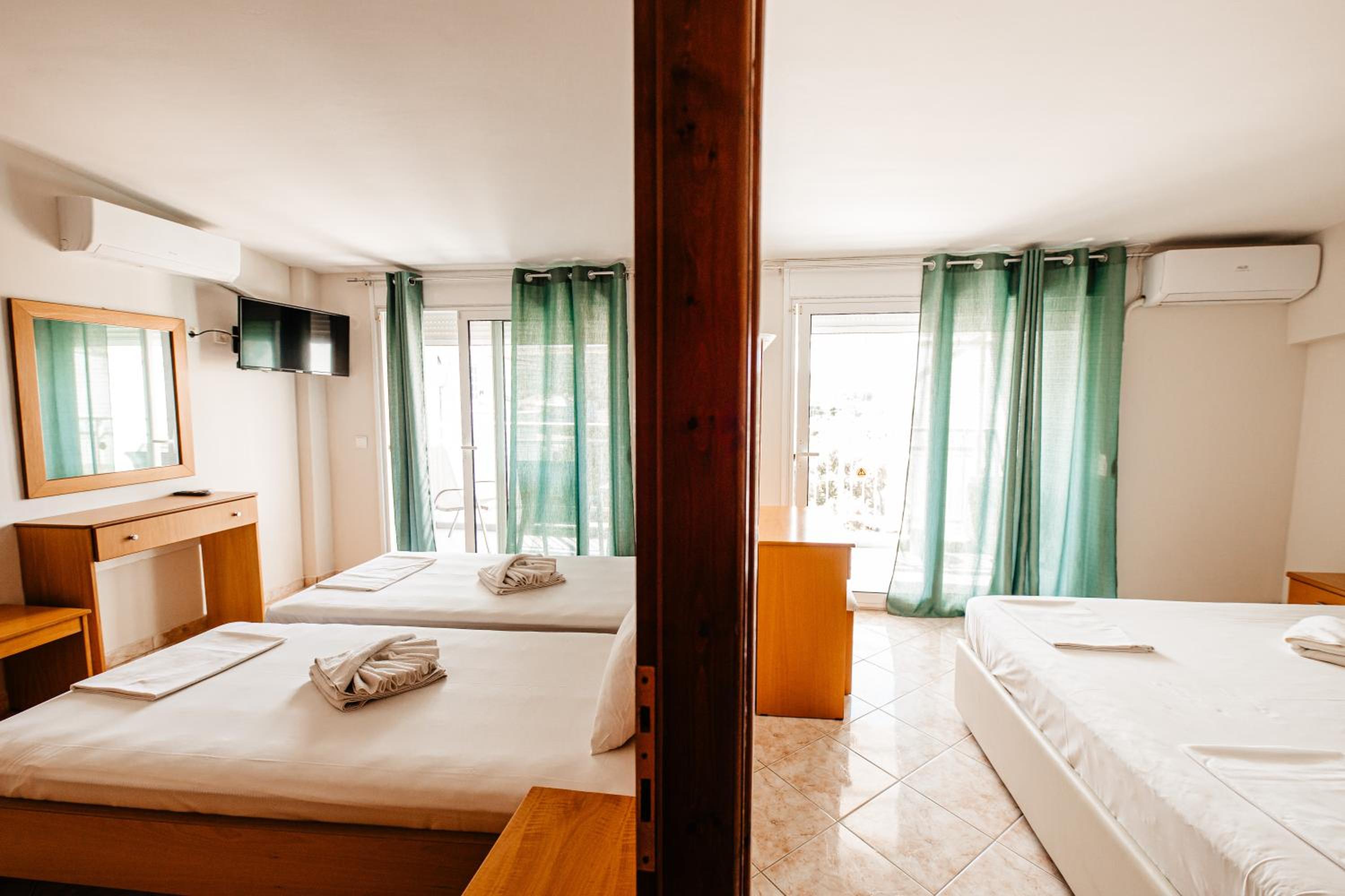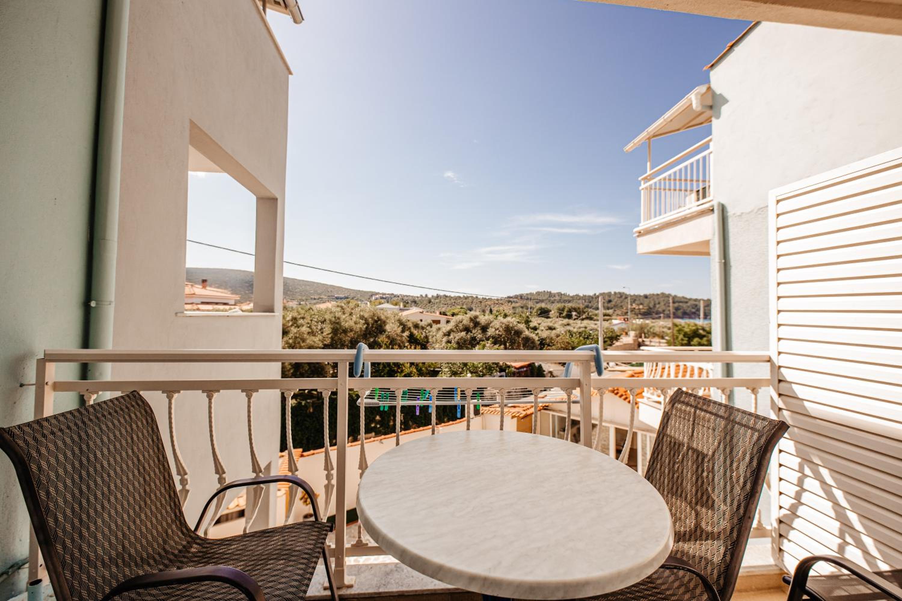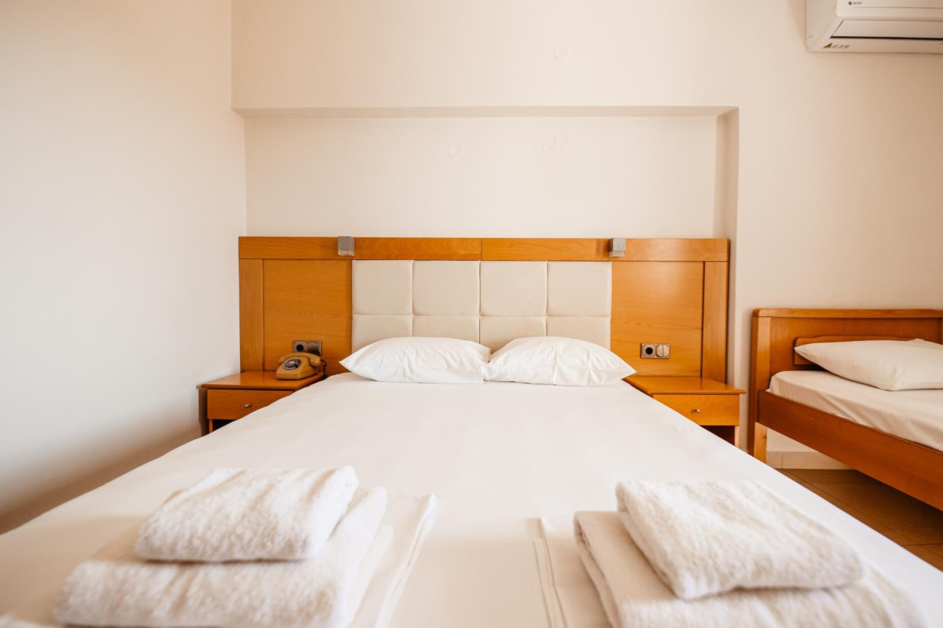 Amazing hotel, the rooms where very well equipted but also really nicely decorated. It's located two minutes to the beach, and our room on the second floor had a partial see view. The rooms were cleaned daily. Super friendly staff, Marialena is an amazing host and can't wait to visit her again!!