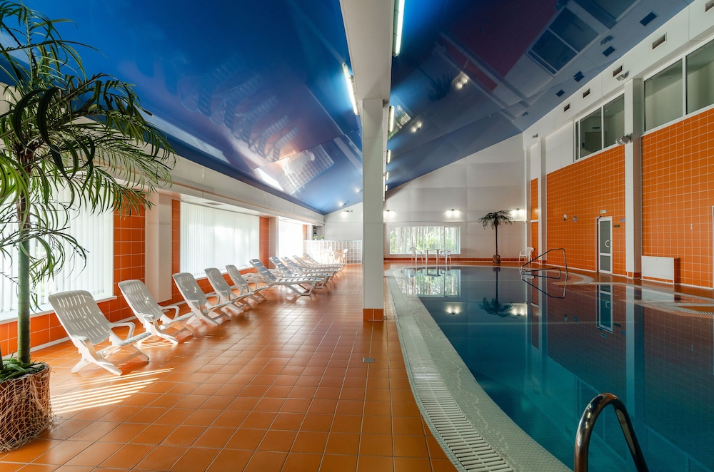 Recreational Amenities: Indulge in relaxation with an indoor pool, spa tub, and sauna at Pleskov Hotel.