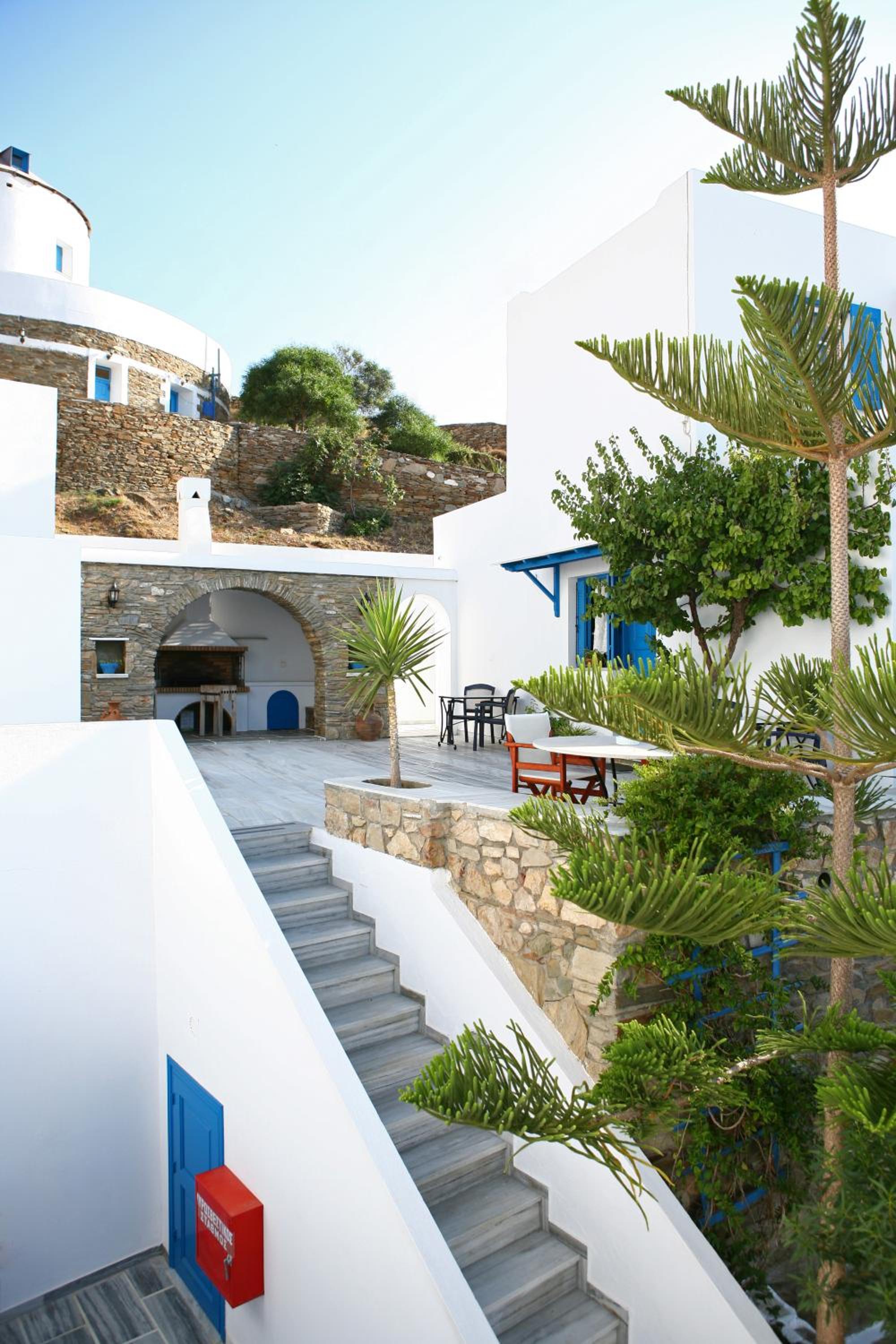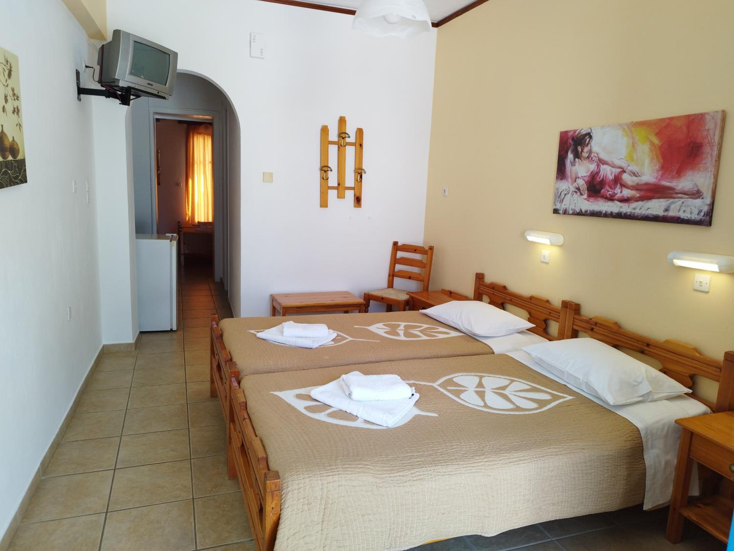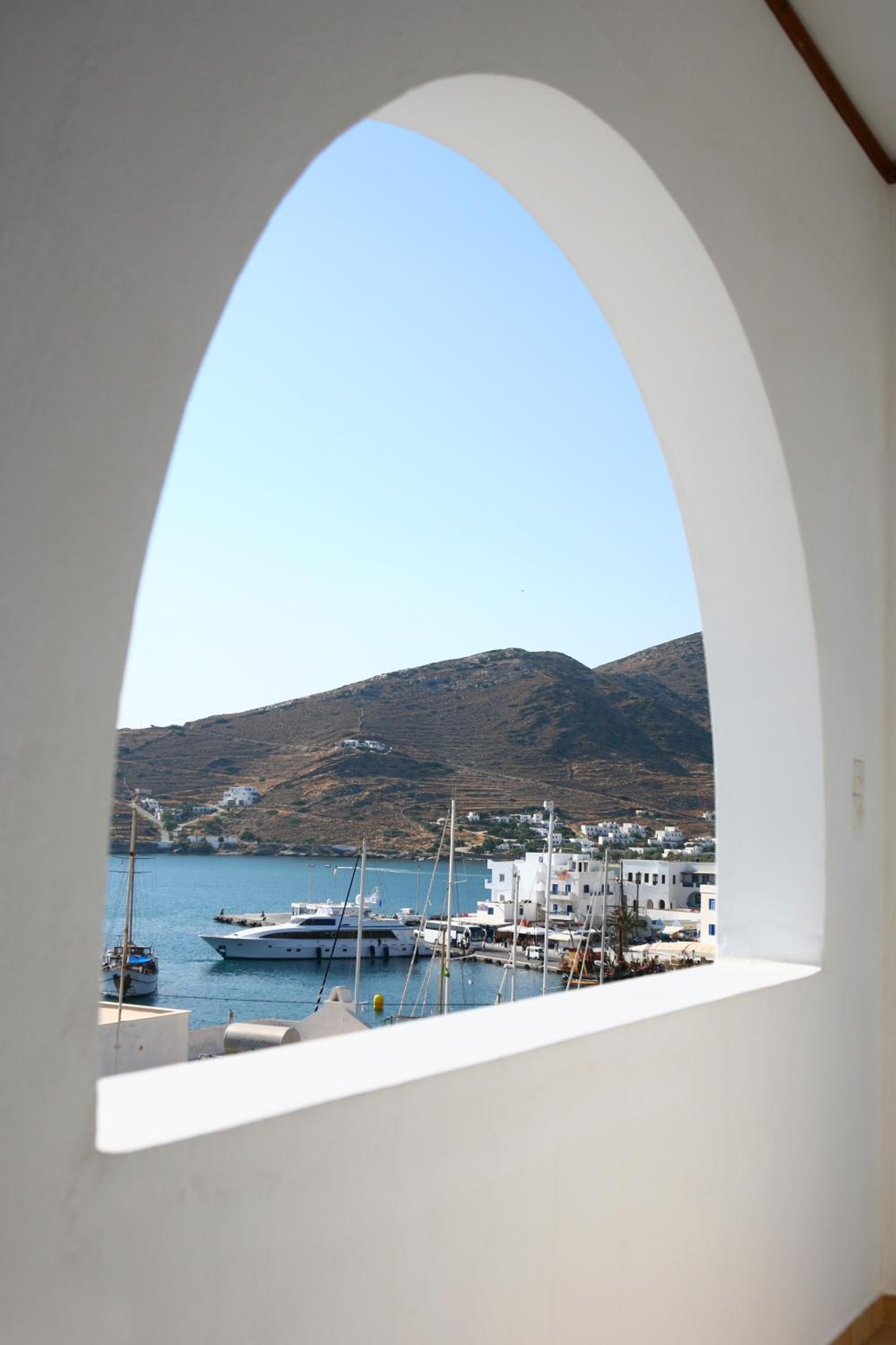 Hotel muito bem localizado no porto de Ios, longe da confusão da Chora. Anfitriã muito simpática e prestável. Quarto com varanda e vista bonita.
