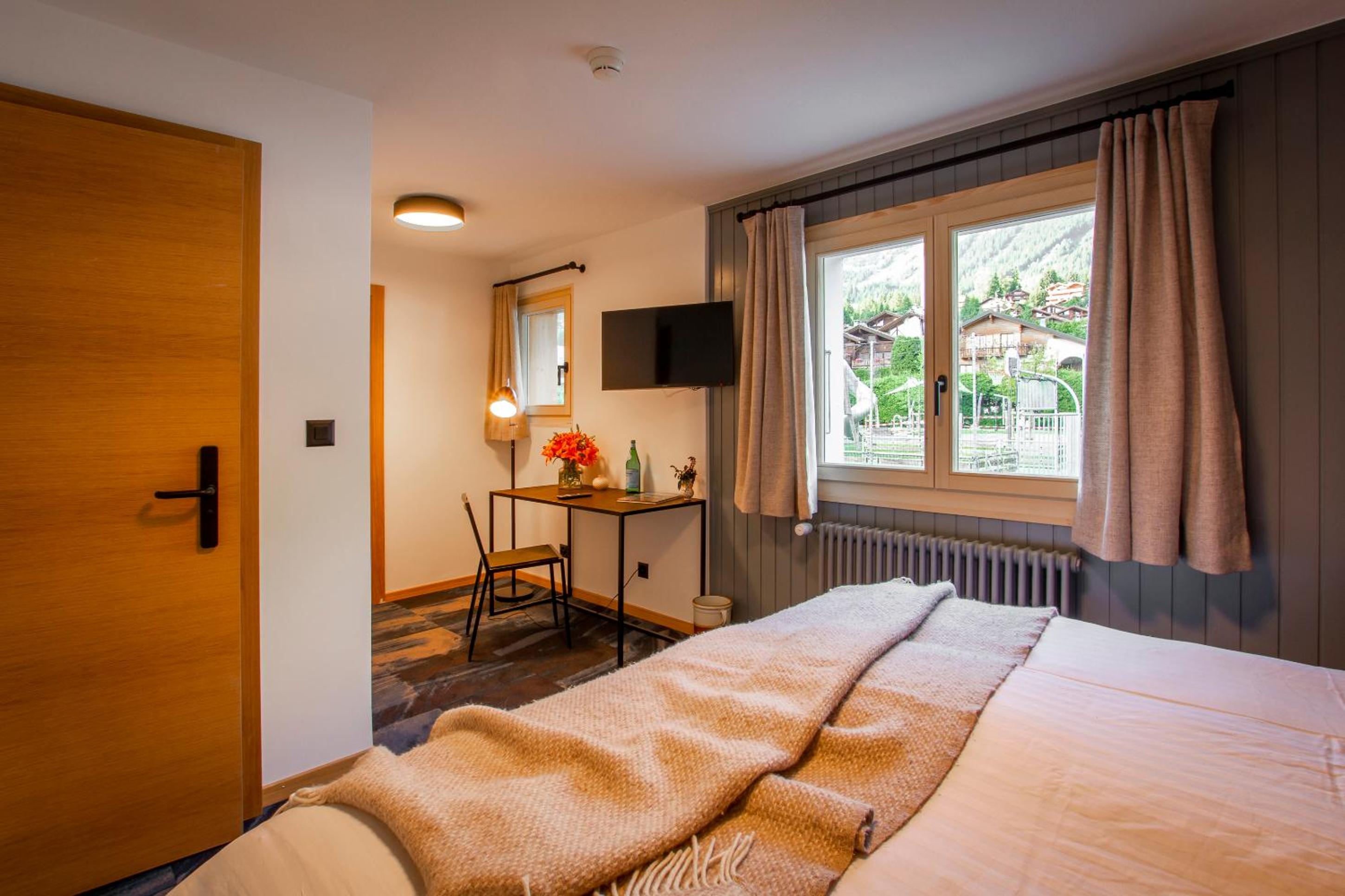 Shed HOTEL in Verbier offers stylish rooms with modern amenities like flat-screen TVs, free WiFi, and city views. Guests can enjoy a comfortable stay with room service and a safety deposit box.