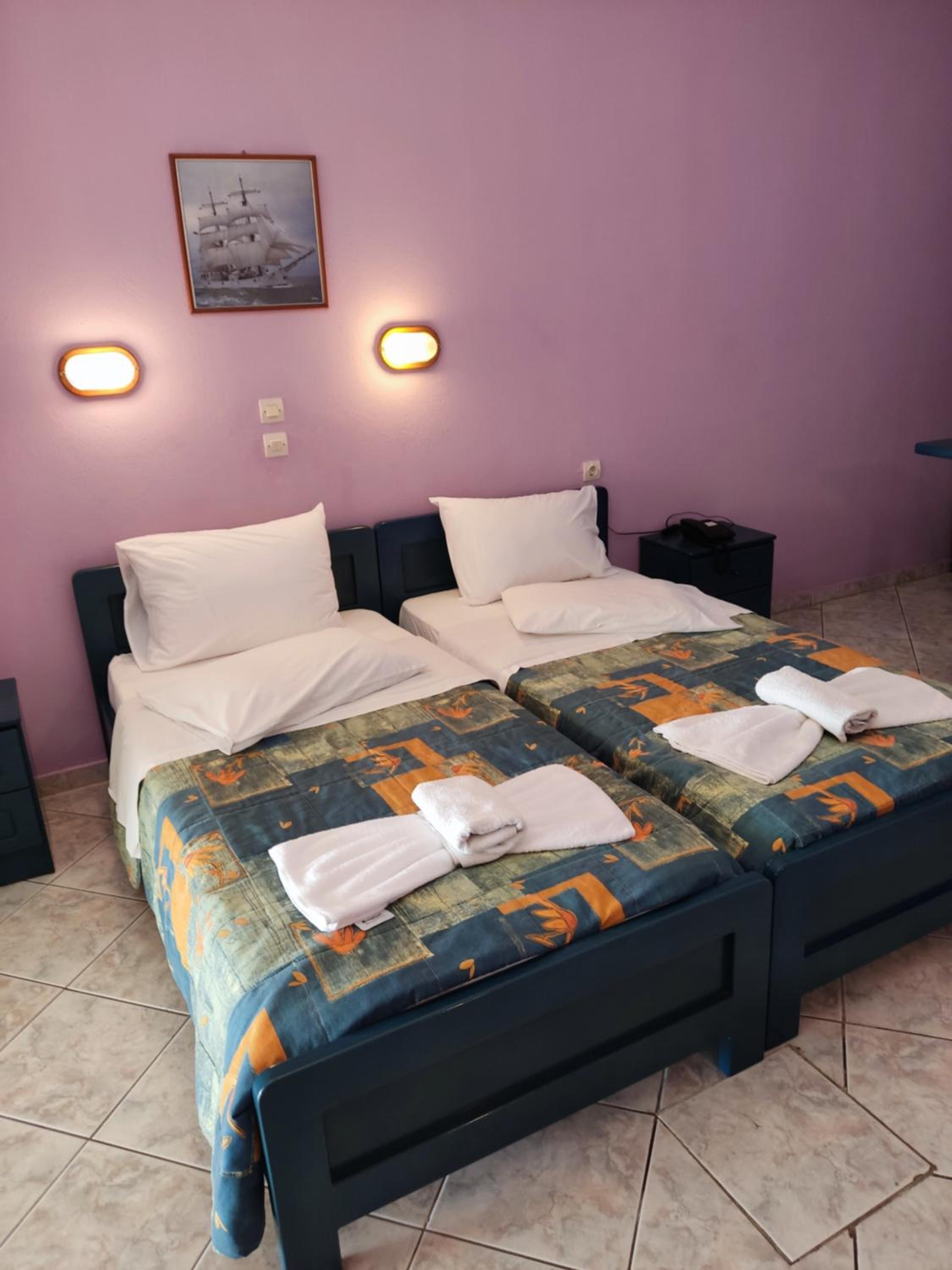 The hotel was in a perfect location above the beach in Patitiri with the most wonderful views. It was very clean and excellent value for money whilst not being luxurious. Our room was quite small but perfectly appointed… there are other larger rooms with larger balconies which I’m sure you can request if needed.