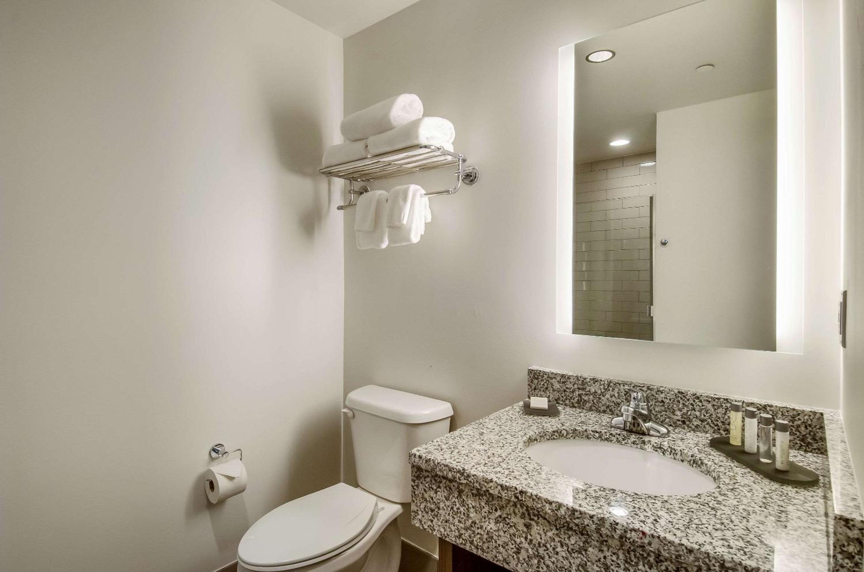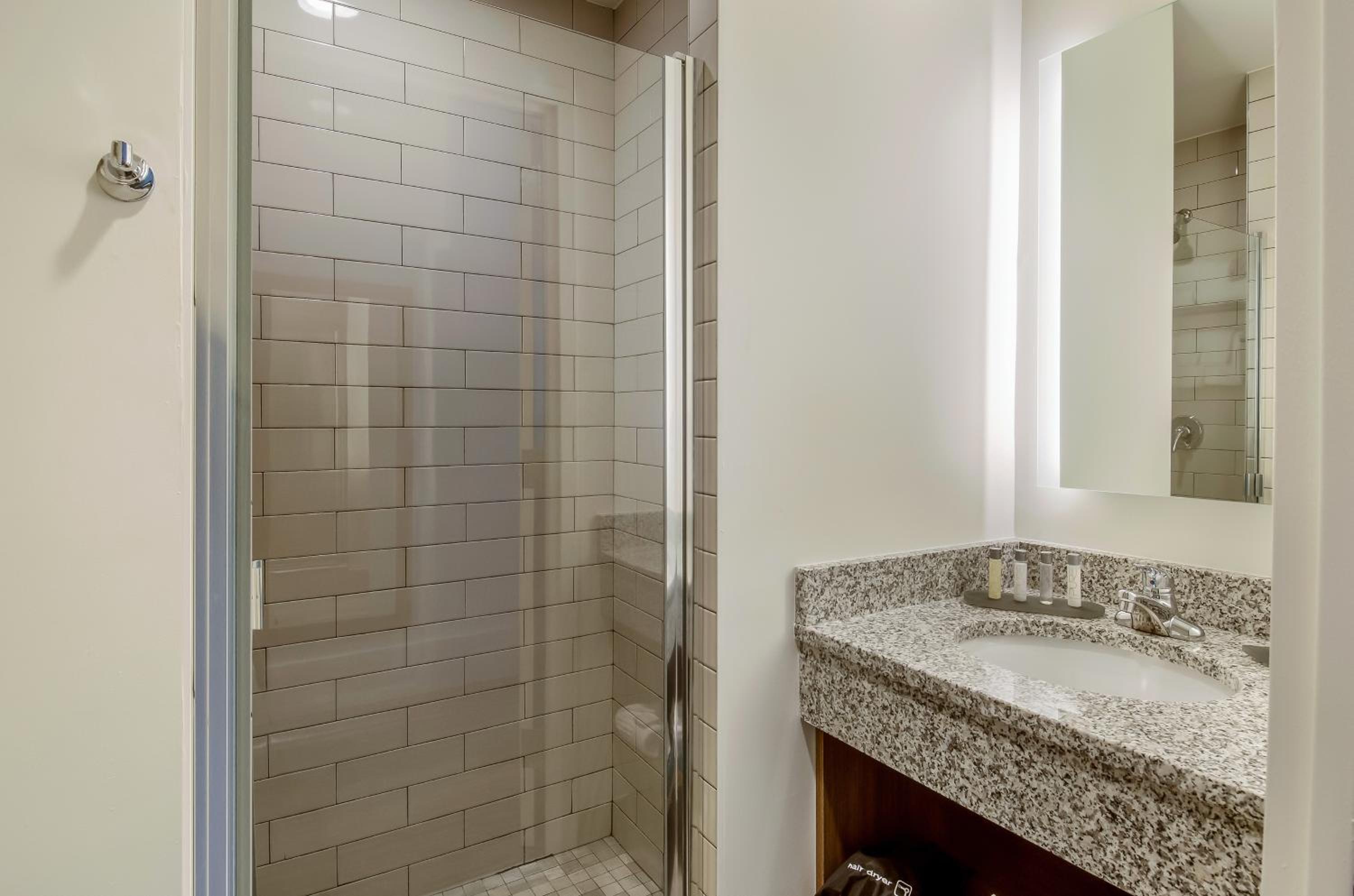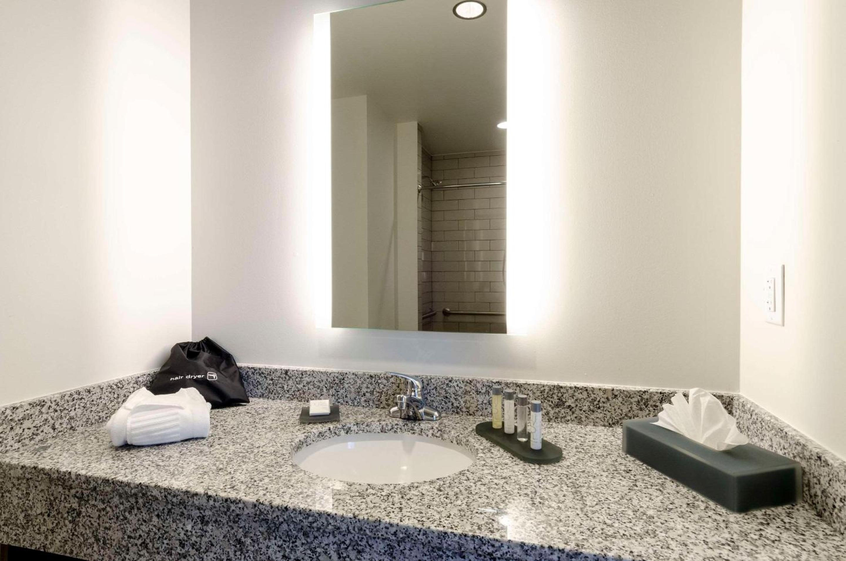 The first room I was in Room 211 seemed like it was 1/2 done. There was no ice bucket, the tv didn't work, when I asked for a new remote it still didn't work, the door sign was bent and wouldn't stay on the door. They moved me to Room 214 at 1am. The road noise from the street sweeper was so loud I was awake at 5:30. Not the hotel's fault, but REALLY annoying when you are on vacation!