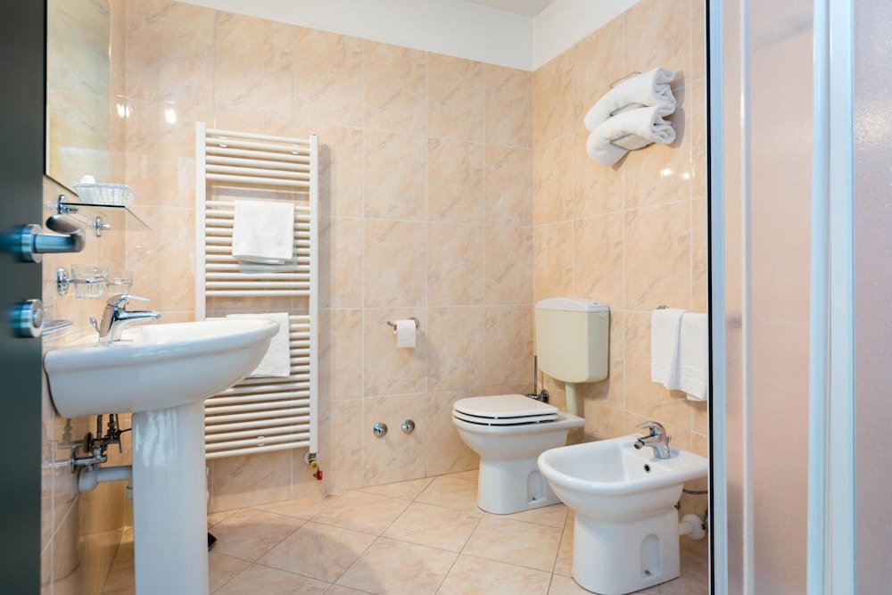 Hotel da ristrutturare, datato, stanza da riverniciare, materasso molto duro e scomodo, ventola rumorosissima, peccato perché la zona è molto tranquilla ma i rumori anche delle stanze adiacenti non facilitano il sonno (il bip in apertura e chiusura porta è insopportabile). Assenza di bidet, terrazza-balcone indicati sulla tipologia di camera ma inesistenti (la terrazza comune chiusa a chiave), colazione scarsa, nessuna spremuta fresca solo bottiglina già pronta nella plastica.