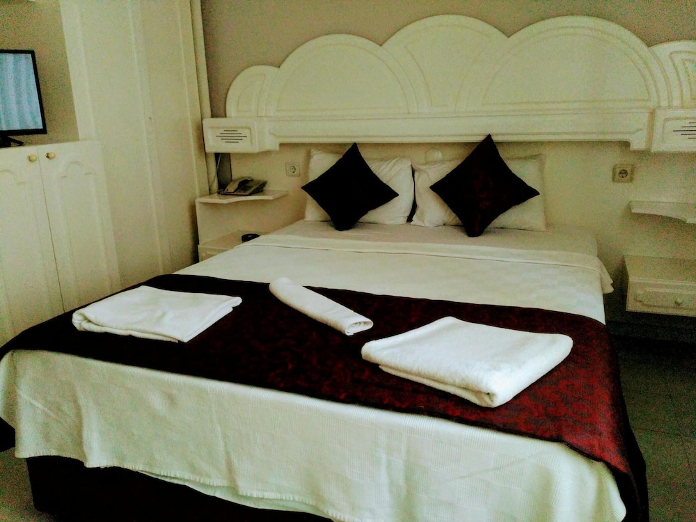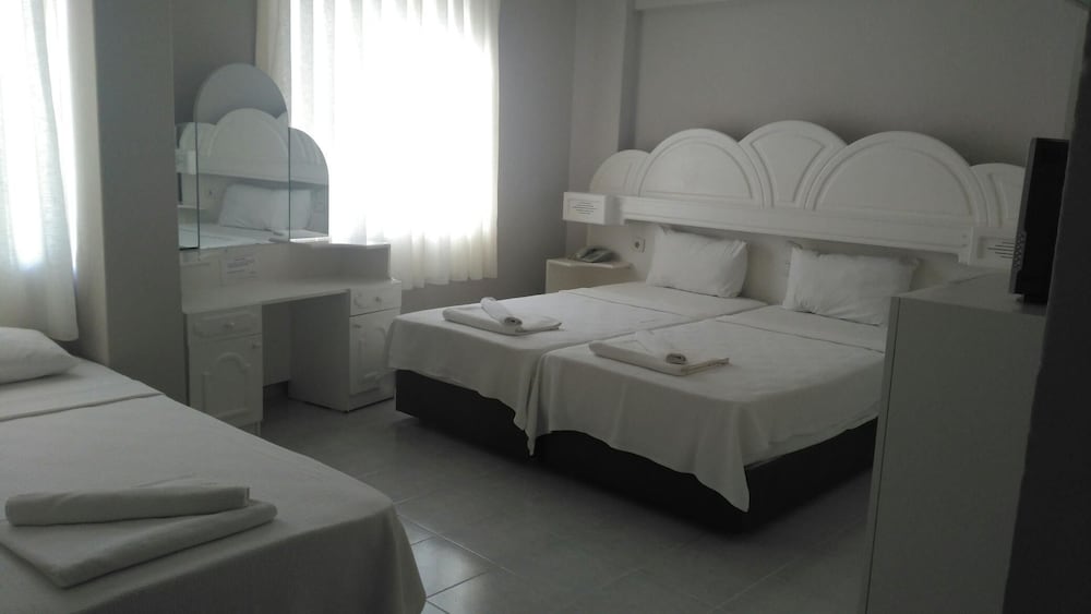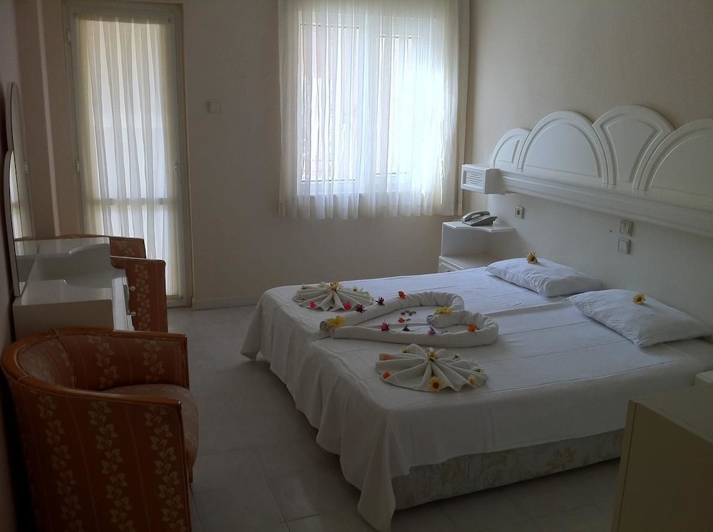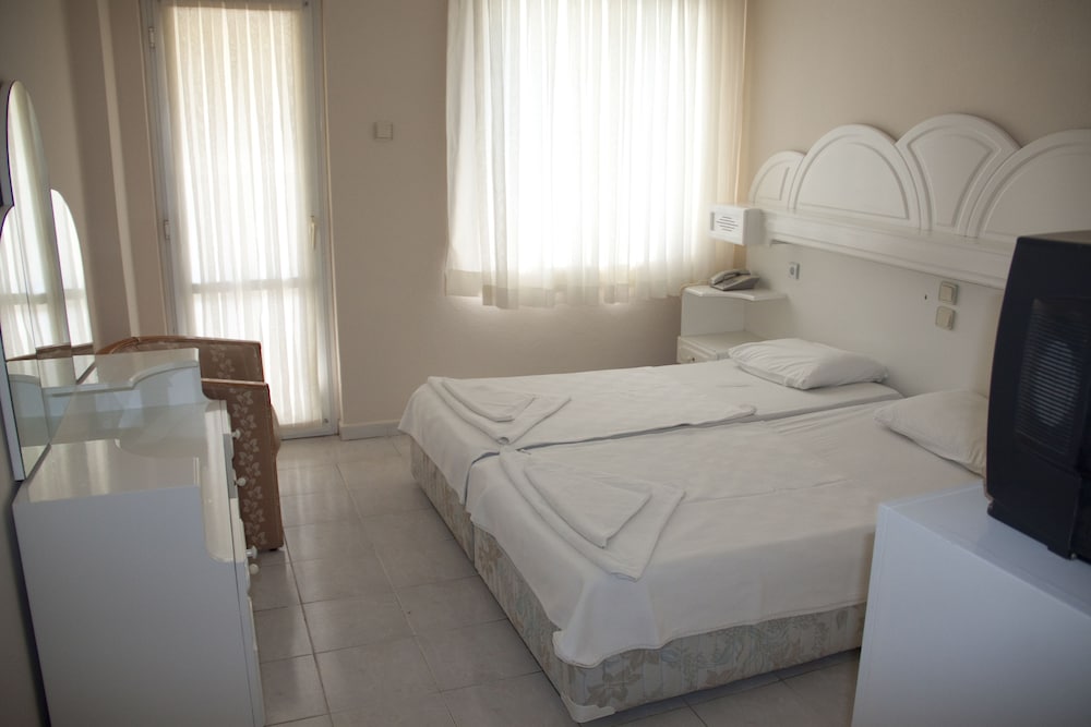Otelin konumu çok iyi, Altınkum plajına yürüyerek 10 dakika mesafede ve etrafında birçok market var. Kahvaltısı çeşitli, güzel ve açık büfe. Odanız hazırsa erken girişe izin veriyorlar ki biz bu sayede bir saat erken girebildik. Personel güler yüzlü ve yardımsever. Odalar yenilendiği için yataklar, dolaplar vs yepyeni ancak bu yenilemeden banyo nasibini almamış. Banyo da yenilense daha şık olurdu. Temizlik çok iyi ve çarşaflarla havlular tertemiz. Odalar fotoğraflarda göründüğü gibi geniş ve rahat. Fiyat olarak ödediğiniz paranın karşılığını tam olarak alıyorsunuz. Altınkum'da güzel bir konaklama için bu oteli tercih etmenizi öneririm.