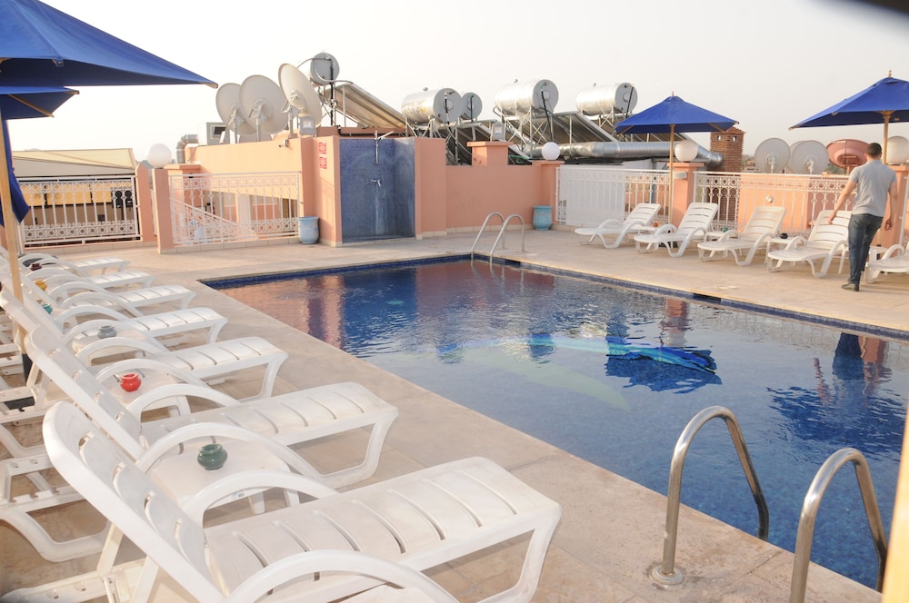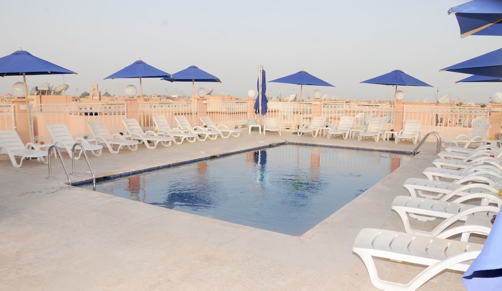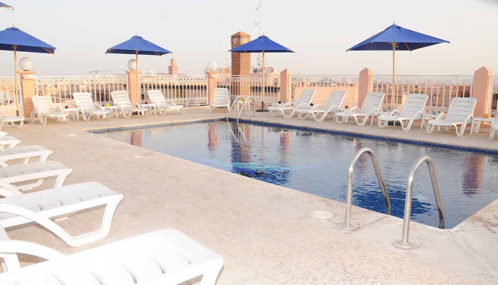 Très satisfaite des prestations de l hôtel Racine. La piscine de jour comme de nuit excellent sur le toit. Situé très proche des sites à visiter et du centre ville. Menage fait tous les jours changement de serviettes à la semande et petit dejeuner très copieux. Je recommande cet hotel pour passer un bon séjour à Marrakech