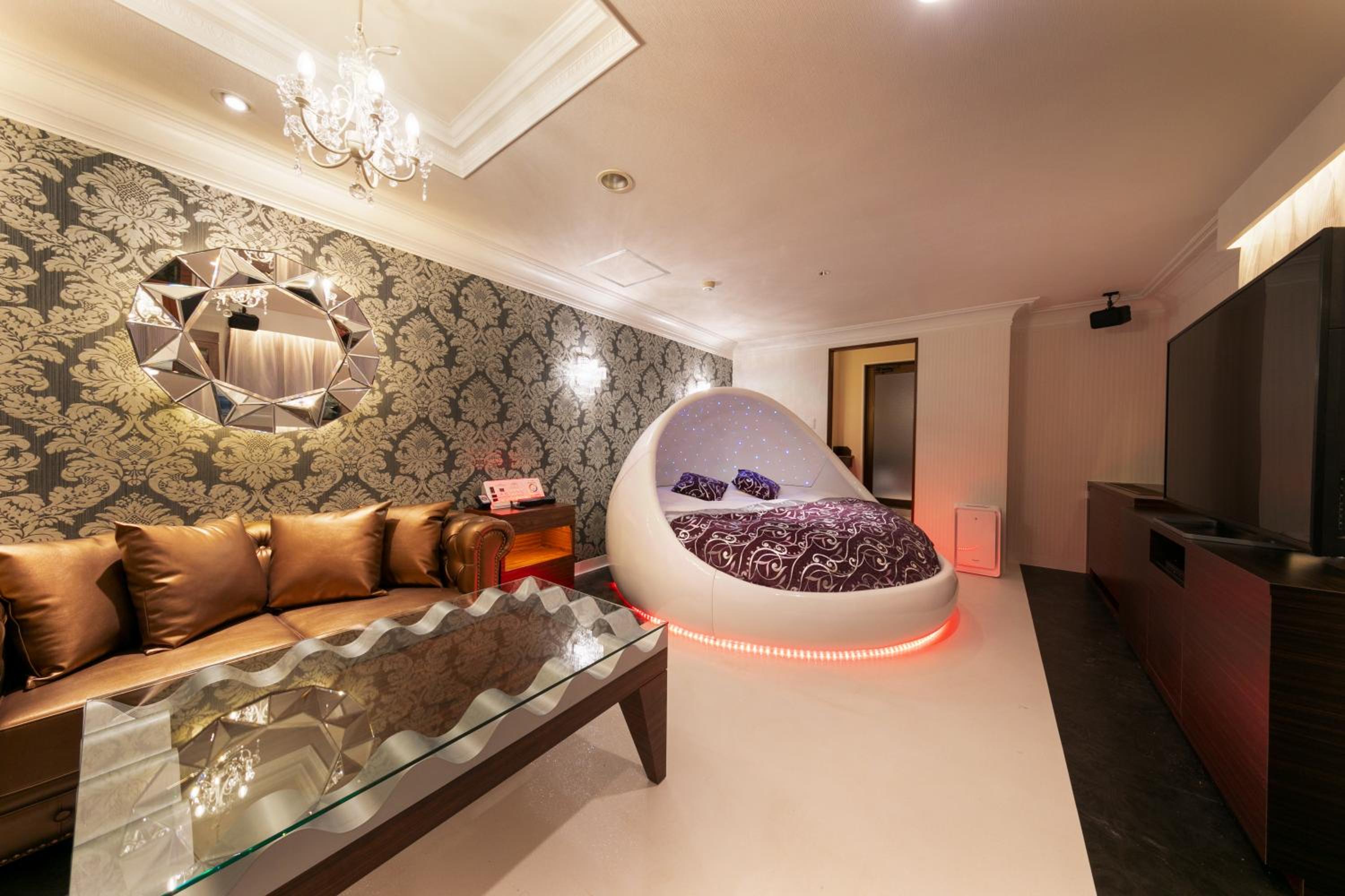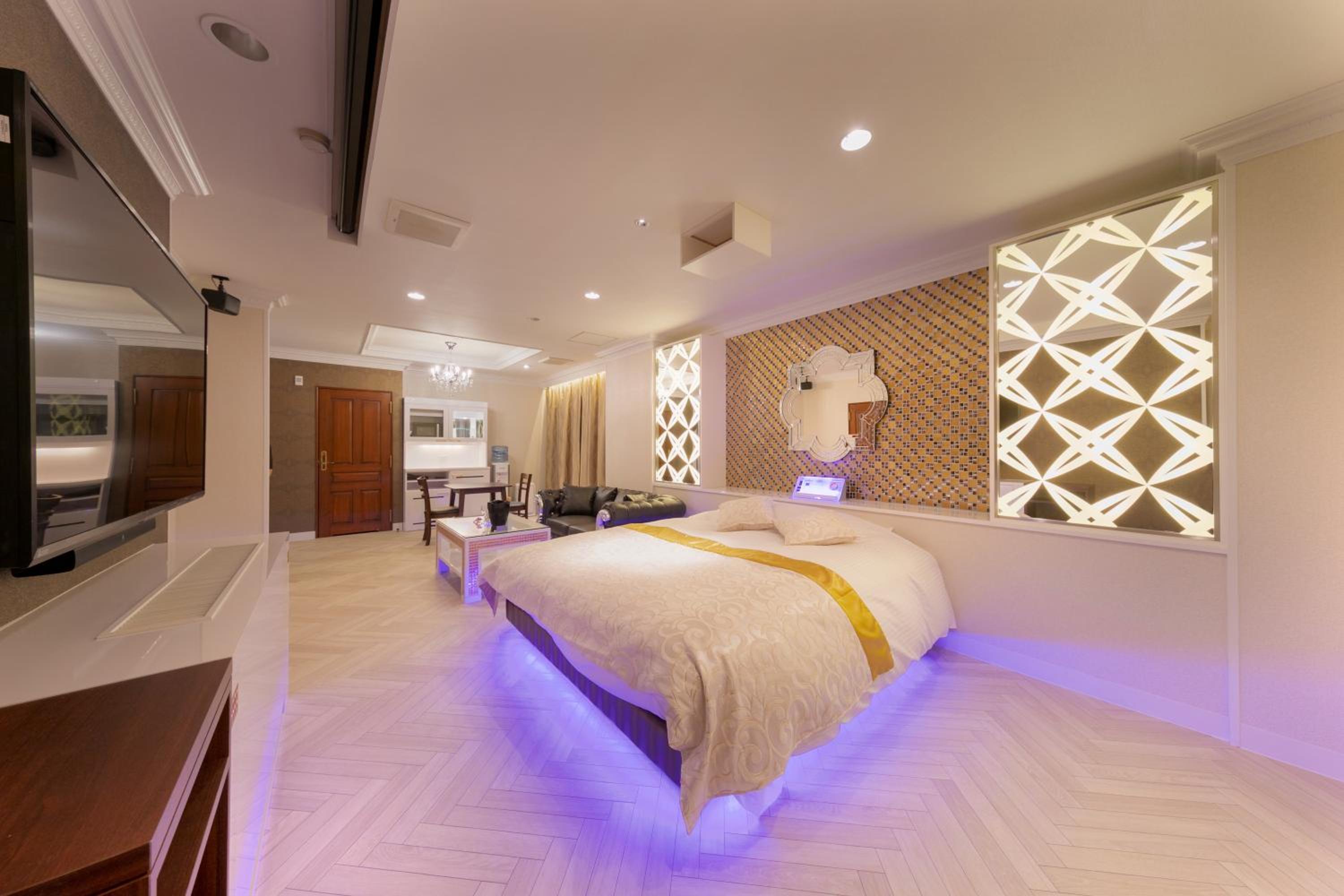 This is an adult only hotel. Guests must be 18 years or older to stay. This hotel is not intended for families. This is a love hotel, and rooms come with adult goods, TV Channels and videos.