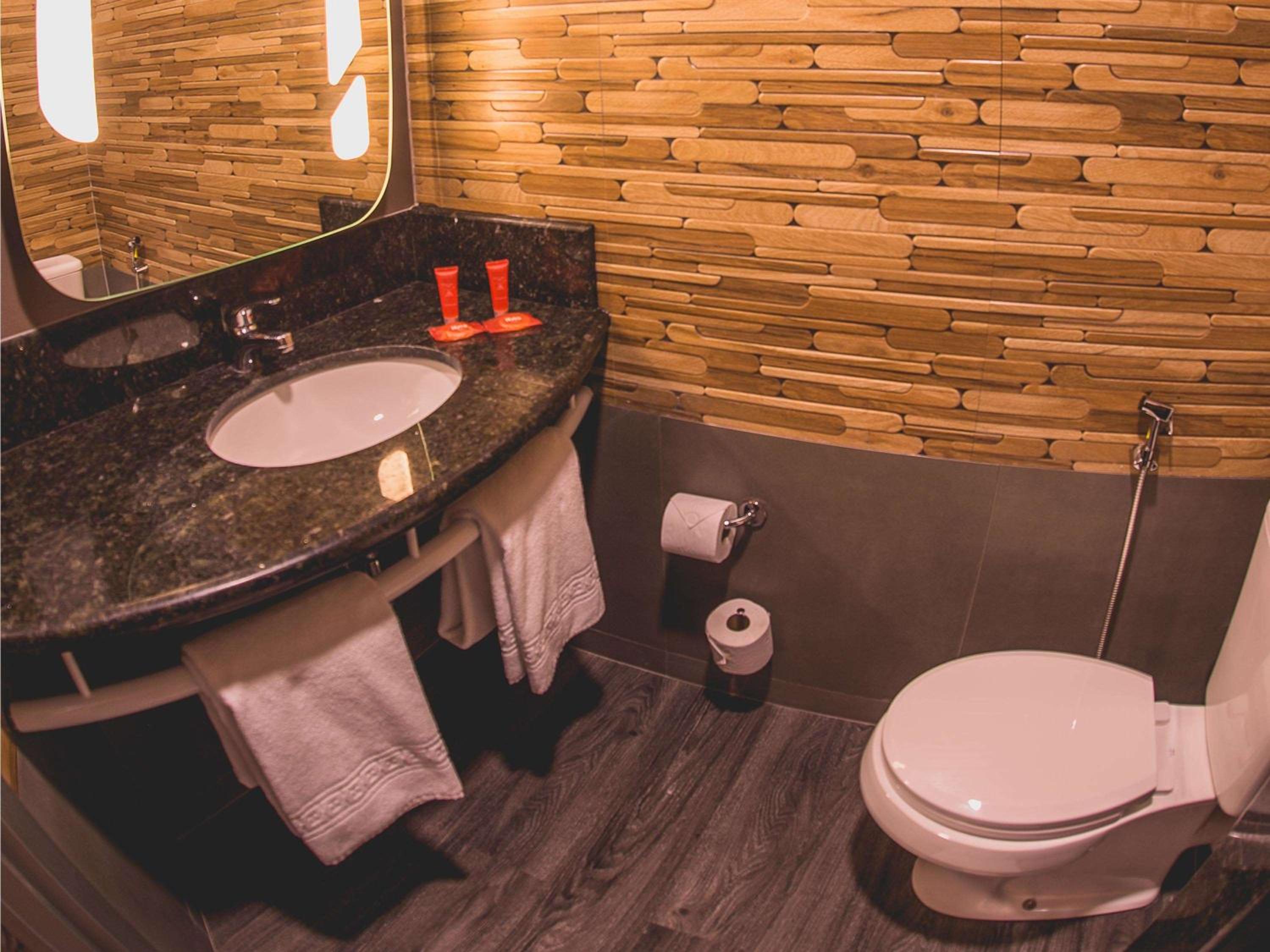 A área do banheiro poderia ser um pouco maior e ter sabonete líquido para lavagem das mãos à disposição na pia, visto que dispõe shampoo líquido (o que achei admirável). Não sei se não vimos, mas poderia ter um lavabo próximo à área de lazer e café da manhã.