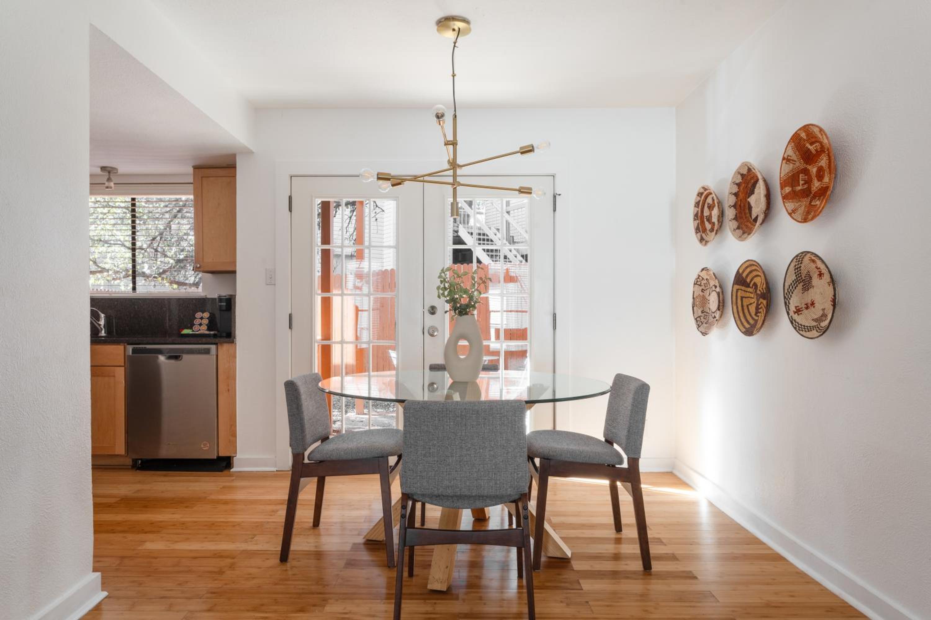 The interior and exterior was badly worn out. The balcony out back and the wood soffit was rotted out and had a lot of water damage. The wood fence was also falling apart and in disrepair. Lots of spider webs on light fixtures which was strange. This is in a great location but on a VERY busy street and you can hear the heavy car traffic day and night. The bed was comfortable