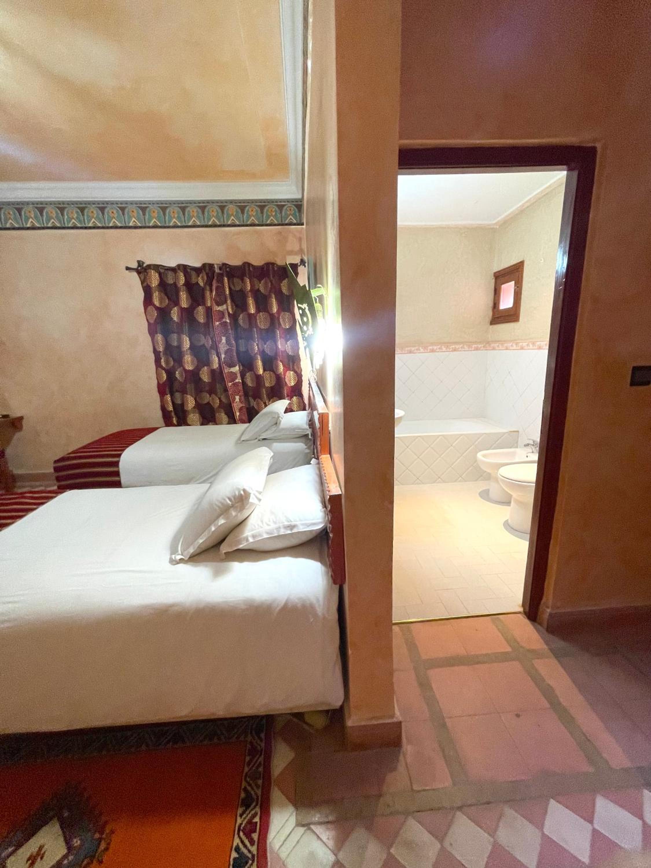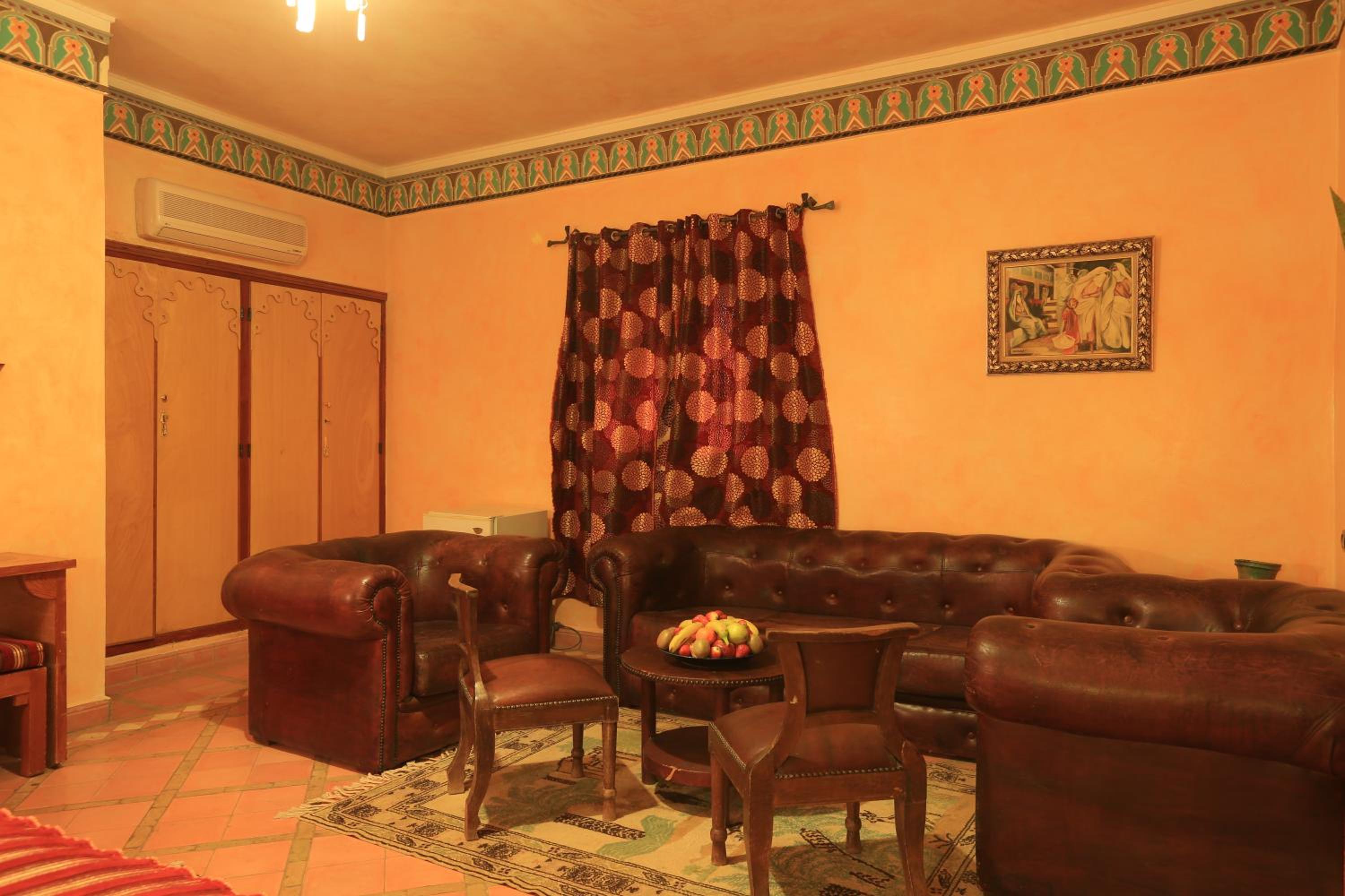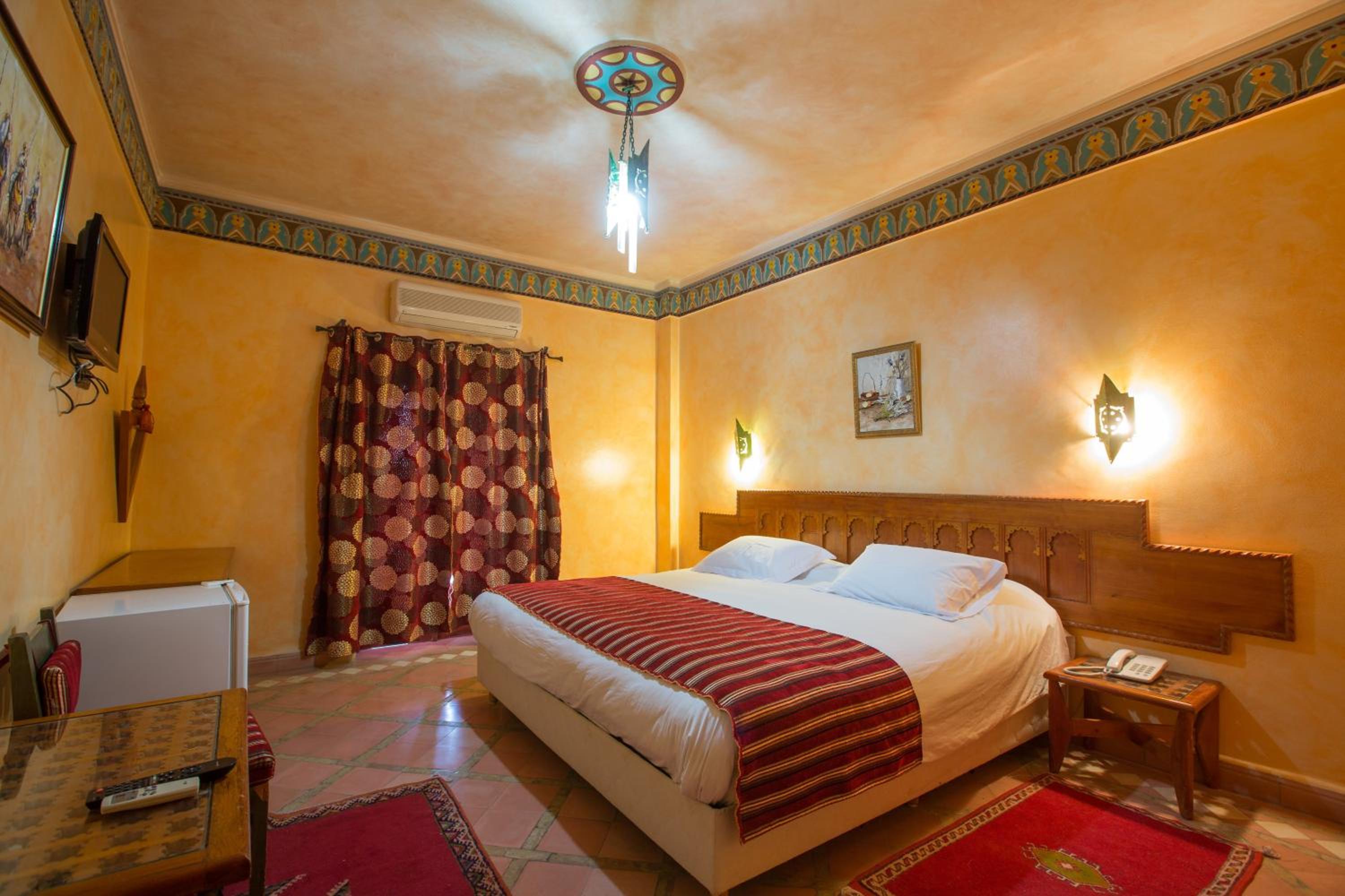 Each guest room features essential amenities like a work desk, wardrobe, and private bathroom. Explore the nearby Tinghir Palm Oasis and Todgha Gorge, both just a short drive away. Book your stay at Hotel Kasbah Lamrani for an unforgettable Moroccan experience.