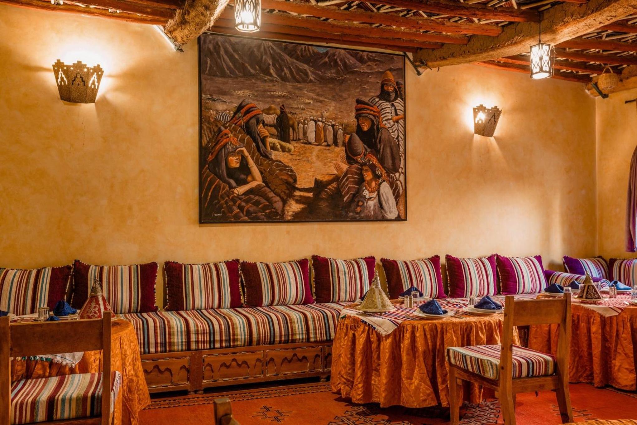 Indulge in delicious Moroccan cuisine and international dishes at the on-site restaurant, or request a BBQ session. The hotel also arranges evening entertainment and desert excursions, providing a true taste of Moroccan hospitality.