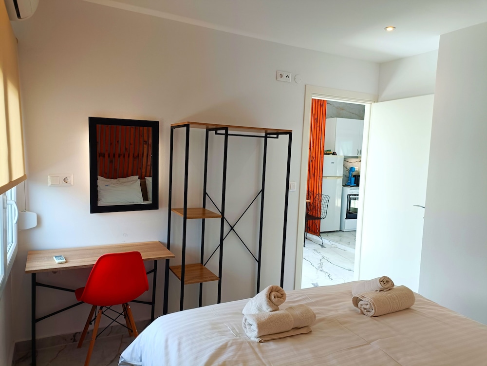 wat is er luxe aan deze "de luxe appartementen" , we hadden een klein appartementje op de 2e verdieping aan de achterzijde van het pand met een aardig ruim balkon dat echter uitkeek op een verlaten pand en de hoofdweg, niet bepaald een fantastisch uitzicht. Bij aankomst heeft de eigenaar prima geholpen met het naar boven sjouwen van de koffers, maar daarna hebben we hem nooit meer gezien. Wel werden elke dag de ingrediënten voor het ontbijt (wel zelf maken) prima aangevuld, wat op zich een prettige verrassing was. Het strand voor de deur is niet aantrekkelijk en het dorp op 6 km met wel 10 "tavernas" valt ook erg tegen. Als met al niet een verblijf om aan te bevelen, wel een gunstige prijs voor een keurig gerenoveerd appartementje!