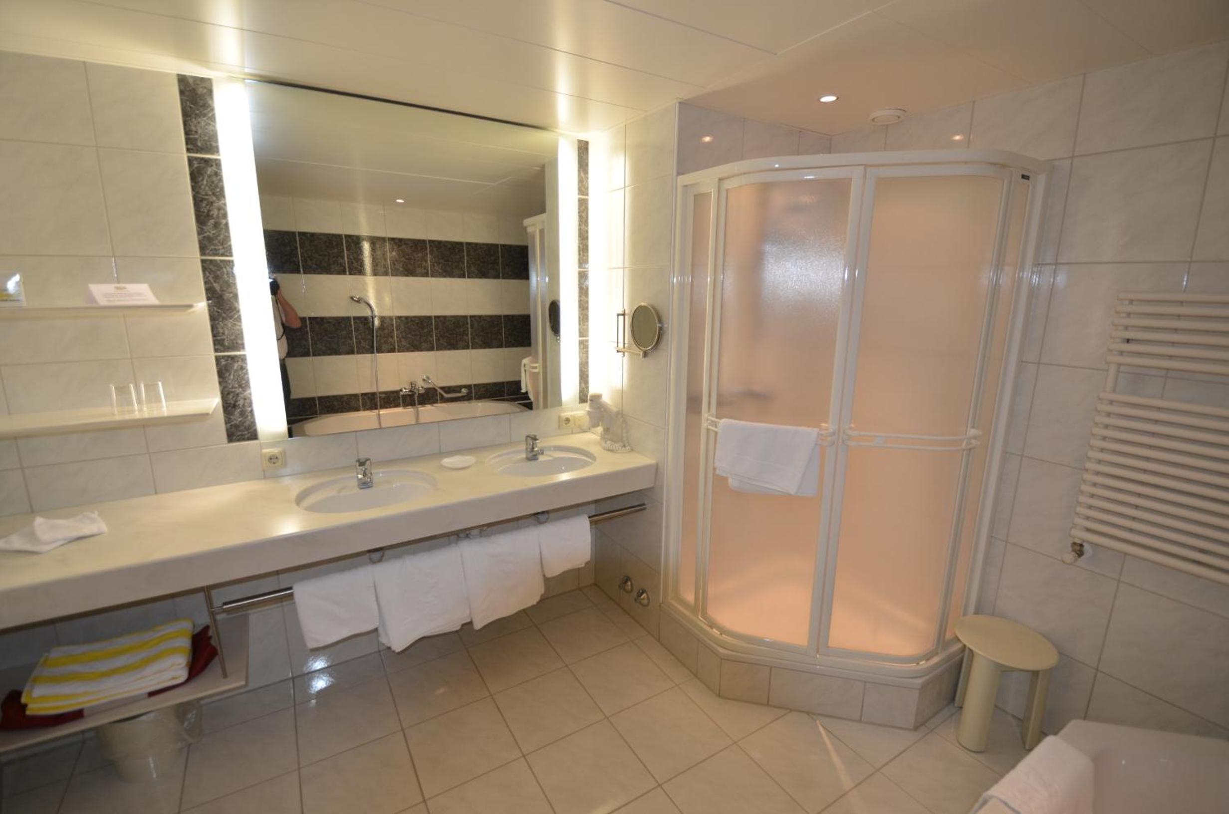 Im Zimmer gibt es keinen Wasserkocher mit Tees etc., es steht einem nichts zur Verfügung. Leider ist nach mehrmaligen Anrufen auch kein Zimmerservice ans Telefon gegangen. Die Pflegeprodukte die einem zur Verfügung stehen fallen gering aus, nur Shampoo und Seife. Im Wellnessbereich gibt es einen Wasserhahn mit lauwarmen Wasser und ein paar Äpfel, sonst stehen einem ebenfalls kein kaltes Wasser oder Tees zur Verfügung.