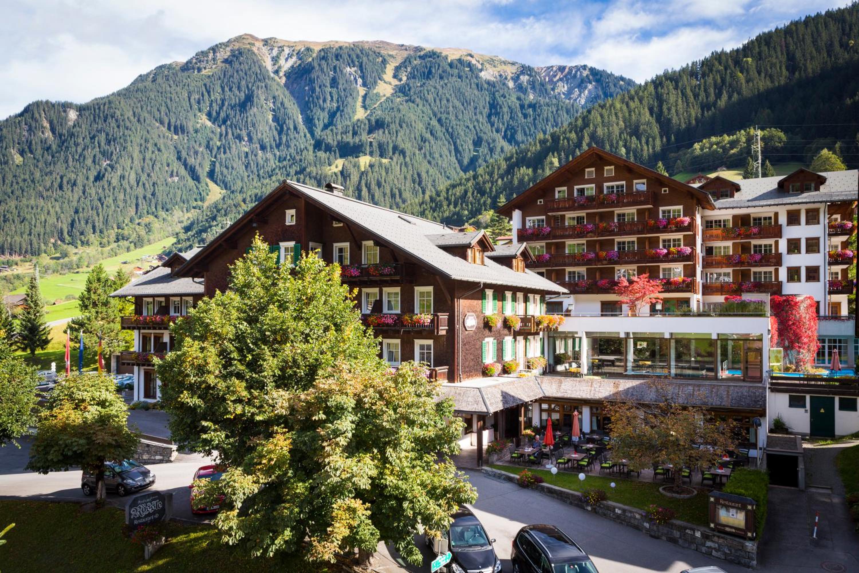 This family-run hotel in Gaschum boasts an expansive spa area, perfect for relaxation after a day of exploring the charming Alpine surroundings. The indoor pool's floor-to-ceiling windows offer stunning Montafon Valley views, creating a serene atmosphere for guests to unwind.