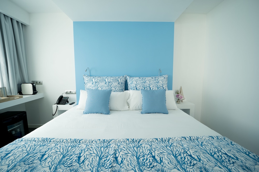This hotel is next to the tourist information centre and on the waterfront - very central. Jolly atmosphere. Crowds till late at night. And music from bandstand in nearby square with restaurants. Beautiful view onto town beach. Room clean. Bed OK. Powerful air conditioning. Enough storage space. Minibar cleared out on request, giving us a very welcome fridge. Chambermaids kept the room clean. Kettle - very useful. Better to get a taxi to and from airport. Should cost 60 euros to pick up and collect from taxi rank by Hotel Avanti. Do not get a coach transfer from the airport - however cheap - because it will drop you at the other end of Main Street - too far to walk with cases.