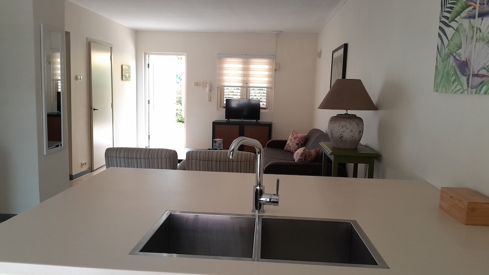 My wife and I had a lovely time on our honeymoon here! This place was great! We stayed in deluxe apartment house. It has a small kitchen, 2 bathrooms, a private outdoor patio and a BEAUTIFUL pool. The hosts Linda and Sanders are lovely hosts. We would definitely stay here again when we visit Curacao in the future.