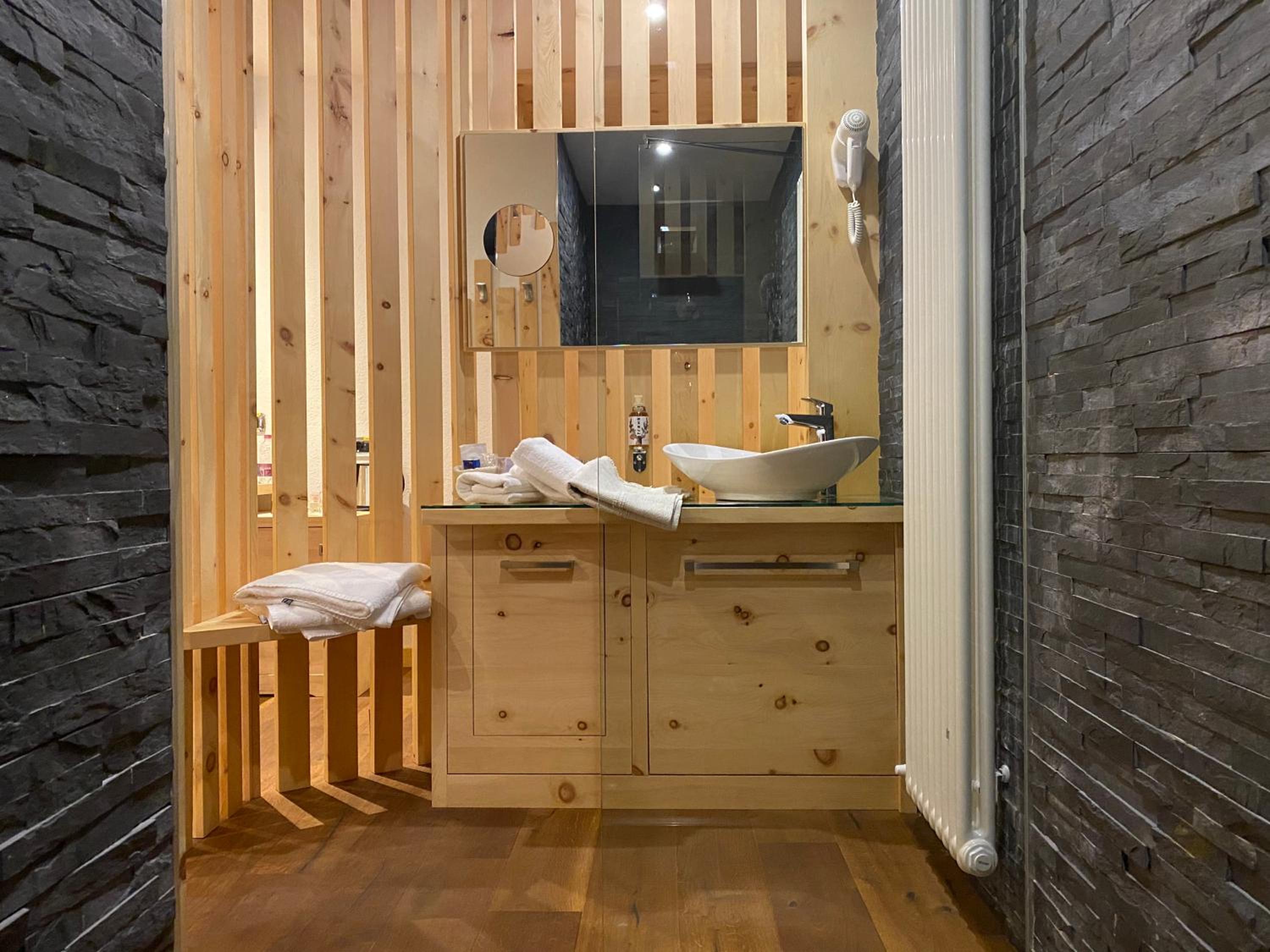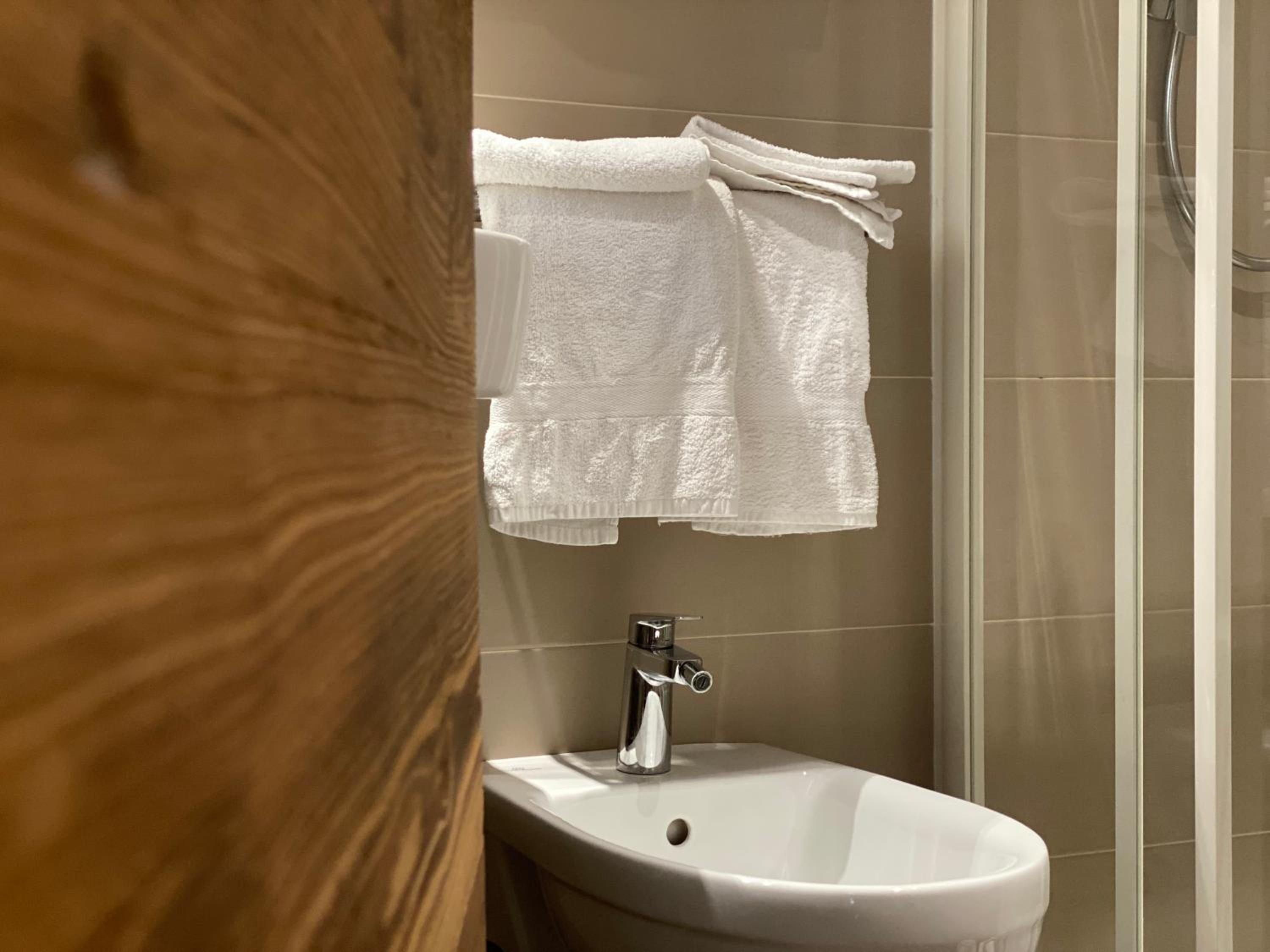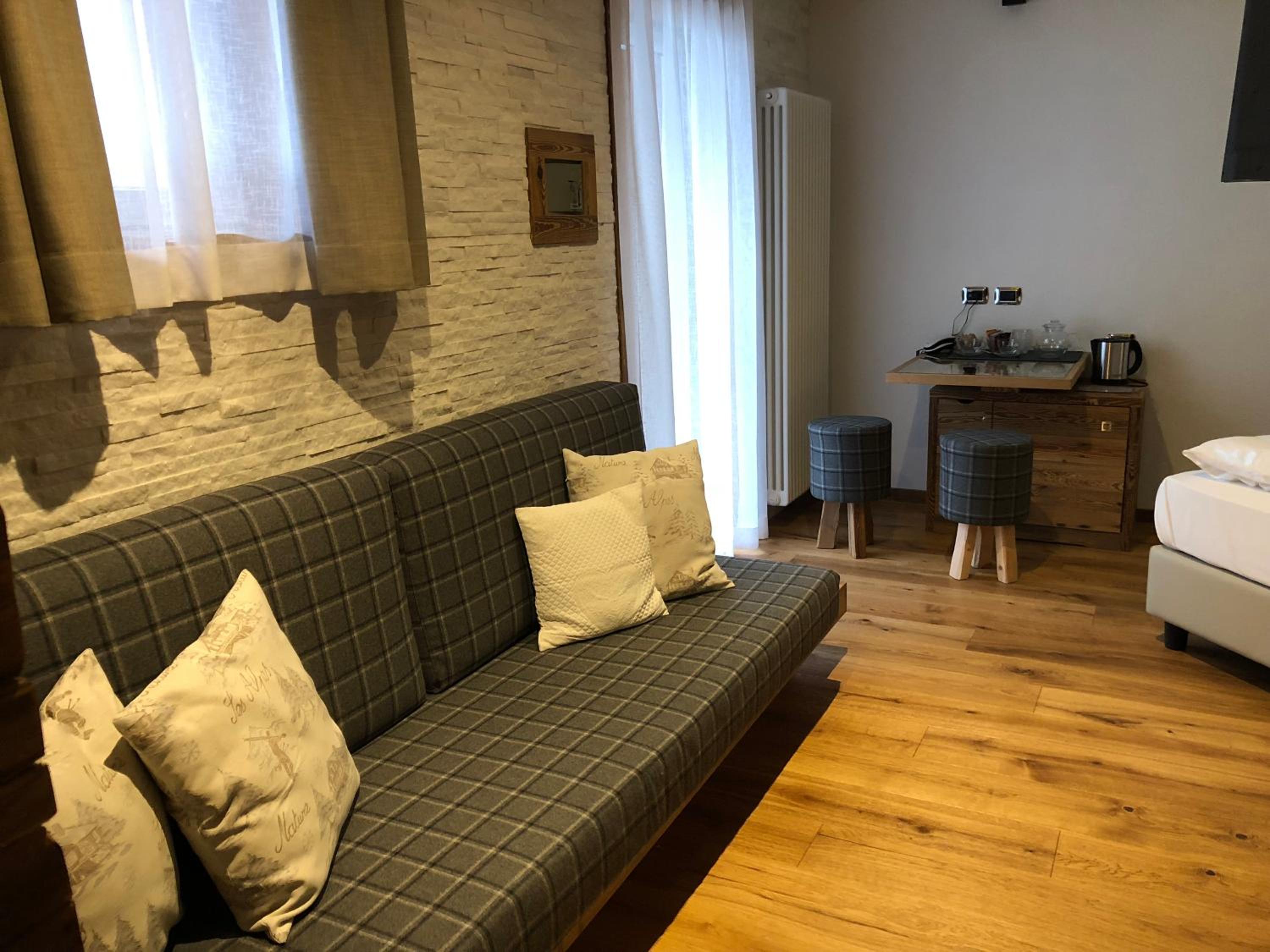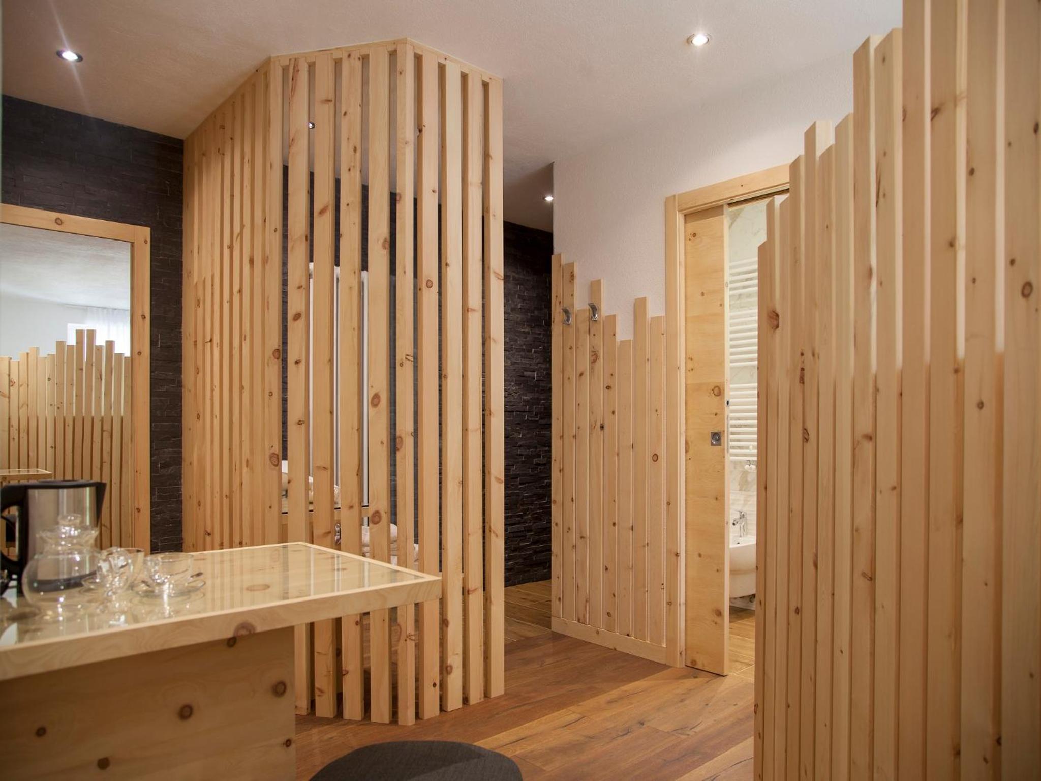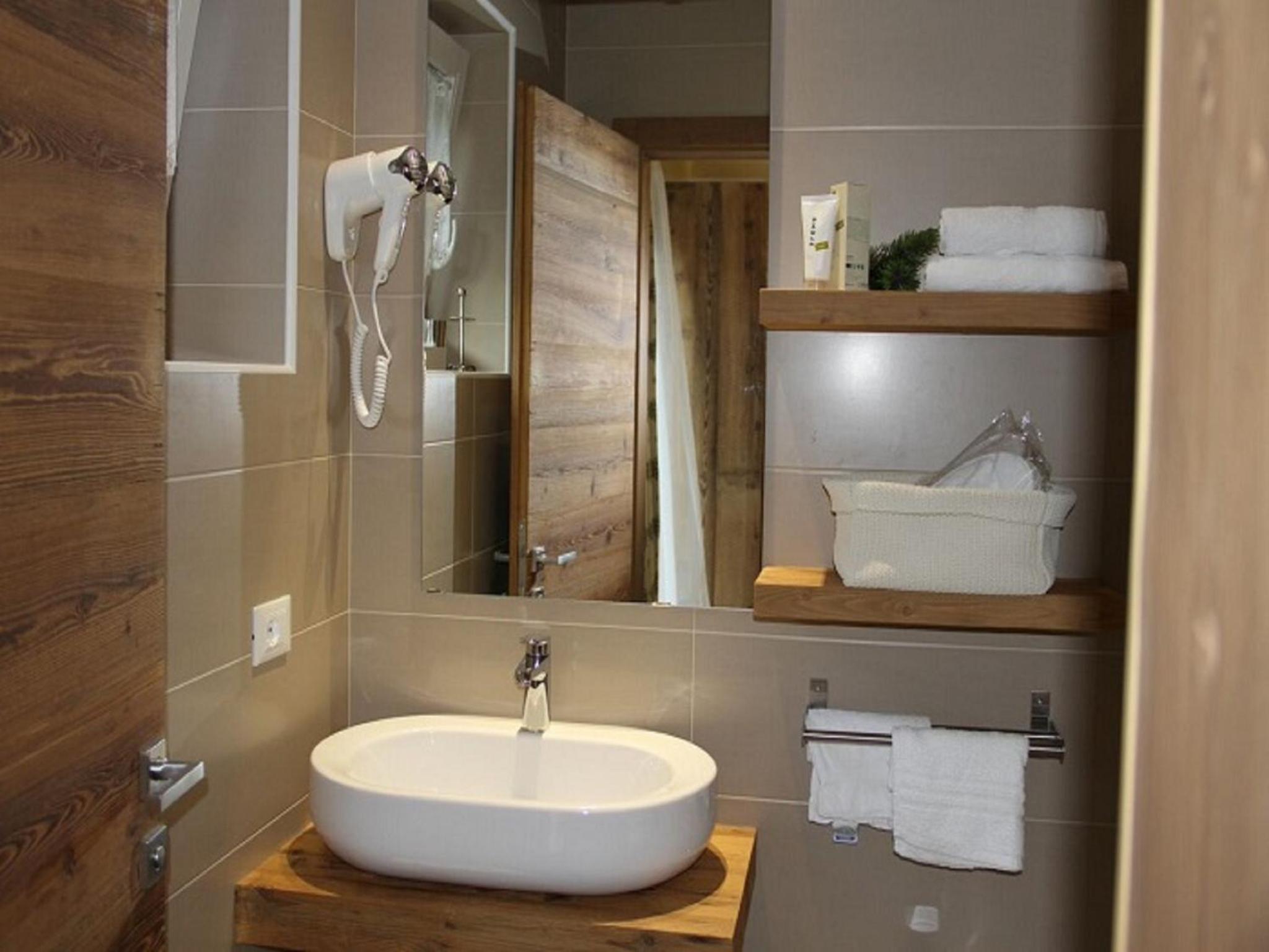 Cozy Comforts: Experience the warmth of wooden furniture and the stunning views of the Dolomites from your private balcony. Unwind in front of the flat-screen TV with satellite channels or pamper yourself in the modern bathroom with complimentary toiletries and a hairdryer.