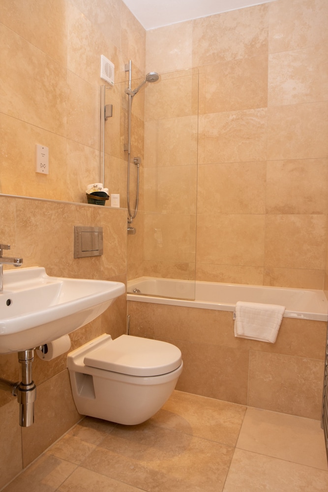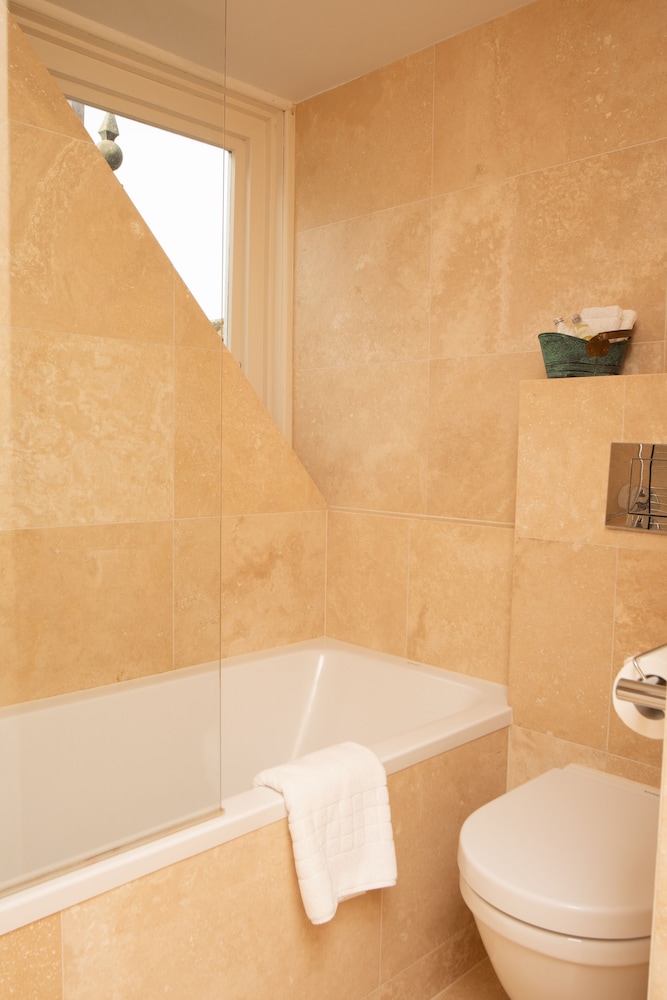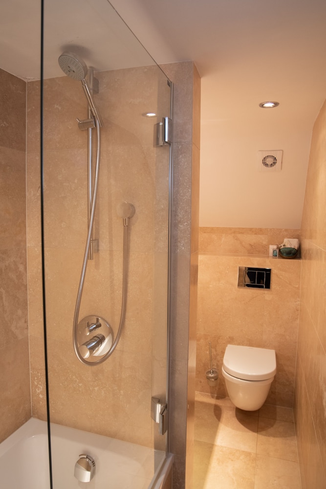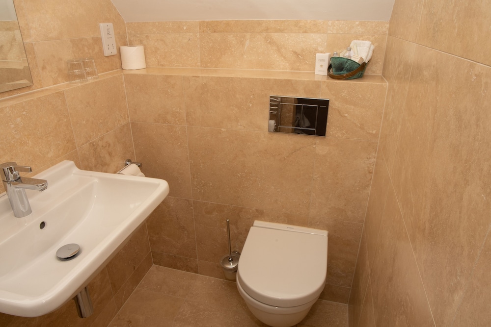 The bathroom was modern and well furnished with a super shower. The food was excellent with imaginitive dishes and a menu which changed every day.
