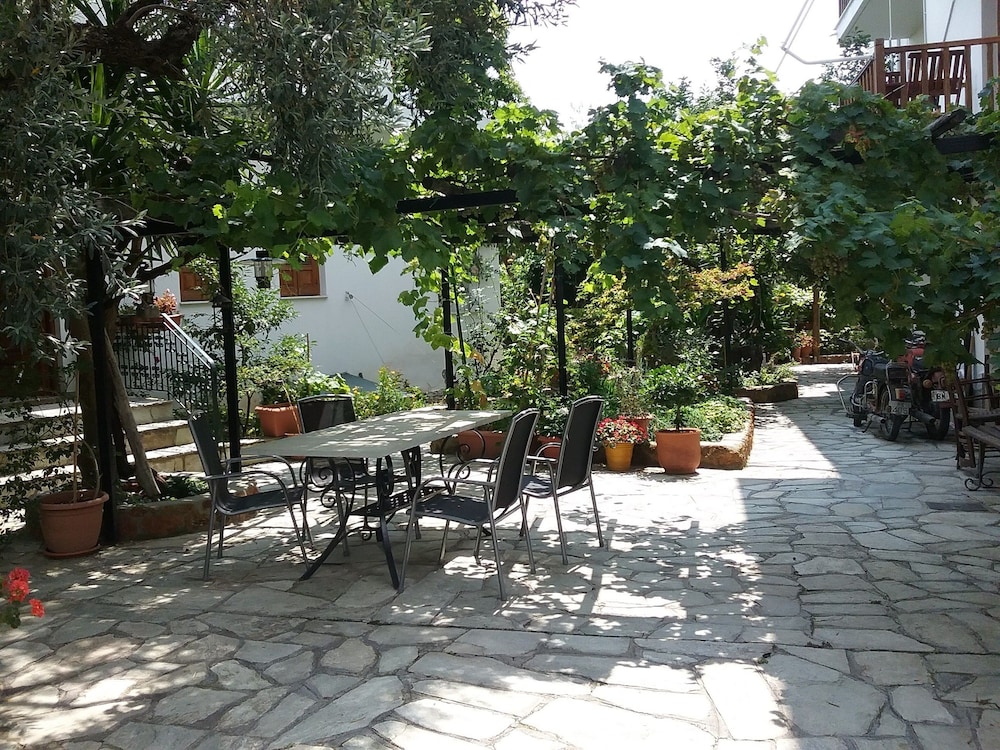 Immerse yourself in the scenic garden setting at Rodia. Enjoy the serenity and beauty surrounding this charming hotel.
