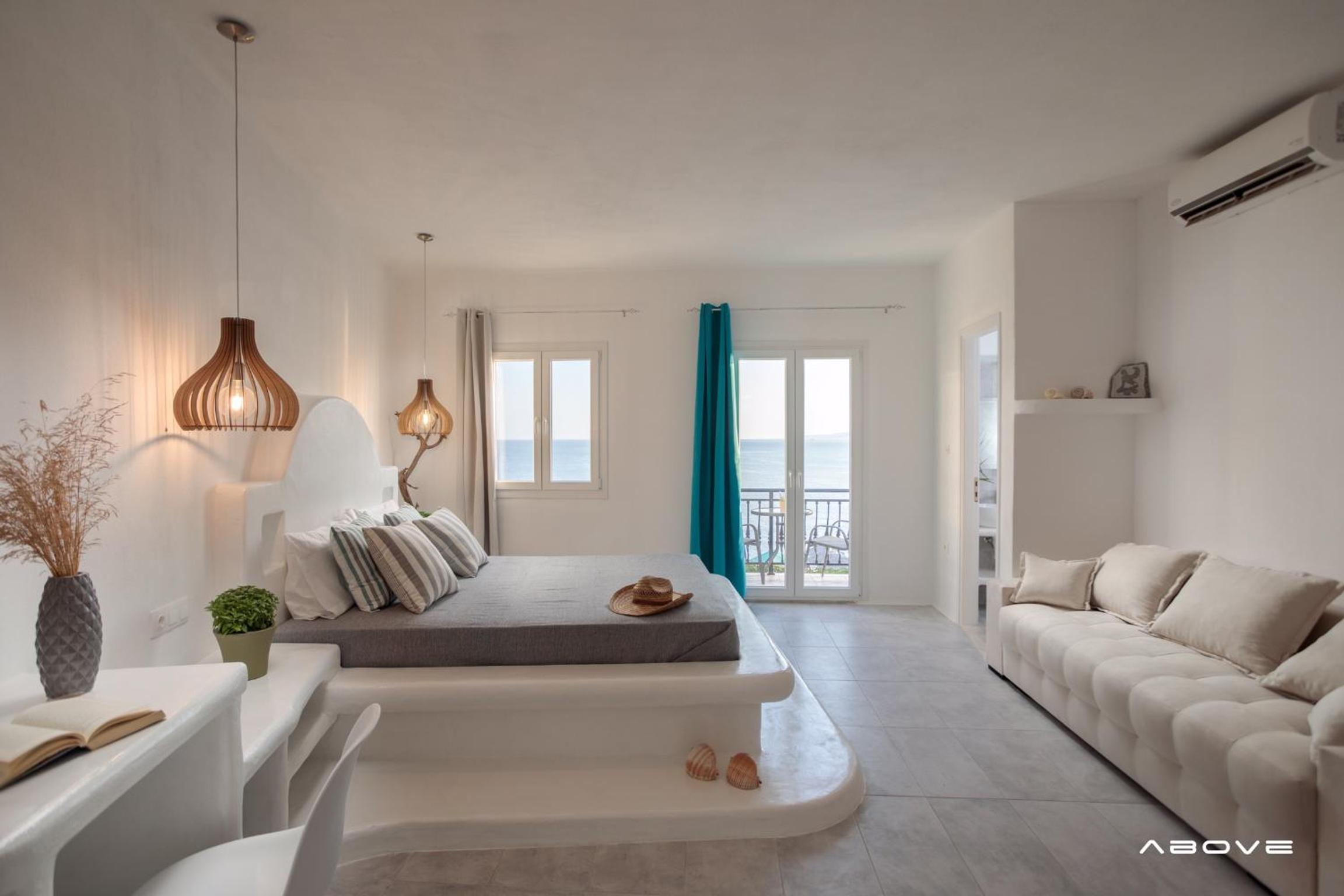 Manios Suites offers a luxurious stay on Agia Anna beach, Naxos. Each room is equipped with a flat-screen TV, private bathroom, and free WiFi.
