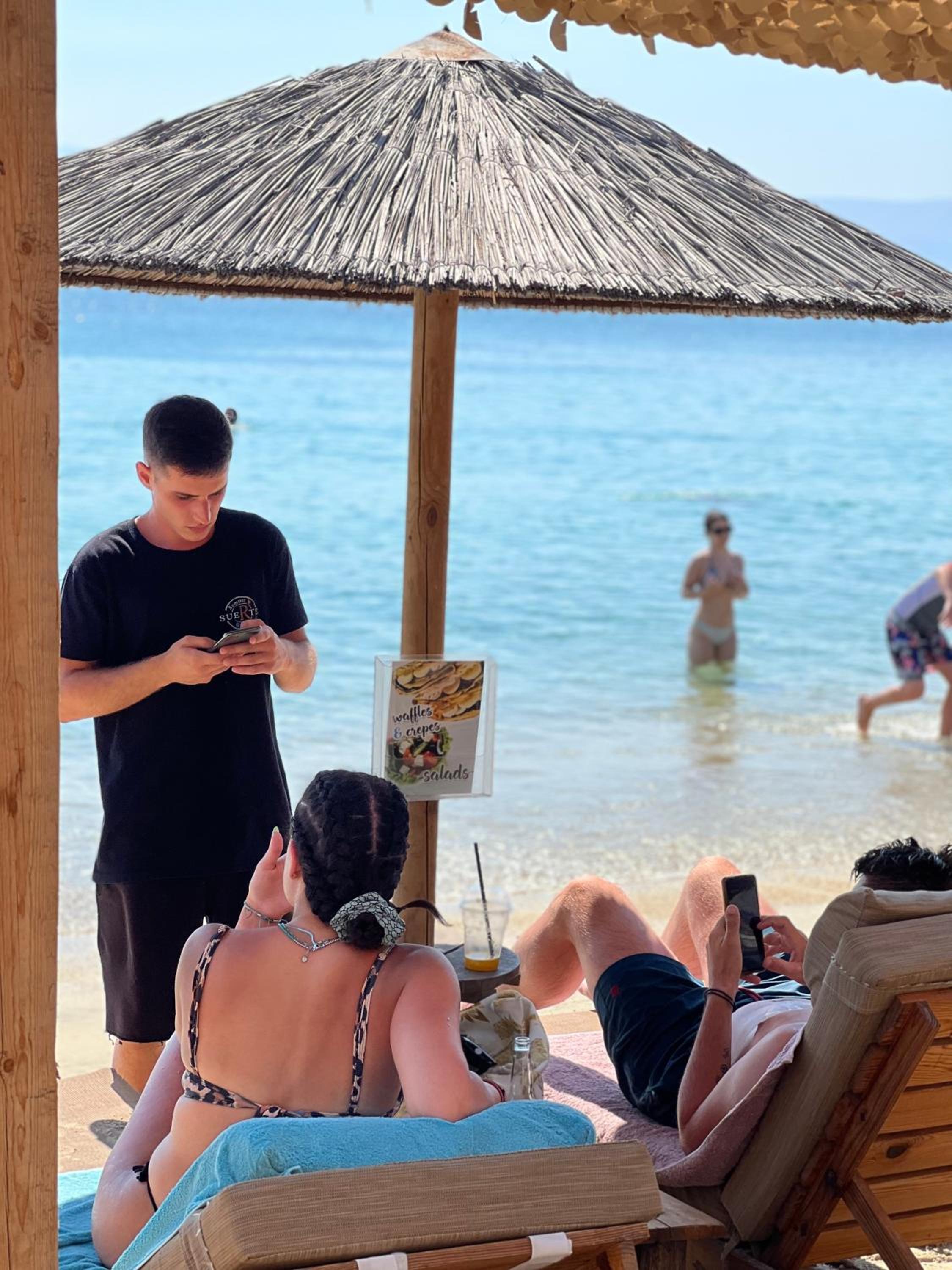 2 beach chairs and umbrella only 15 euro with service from cafe!!