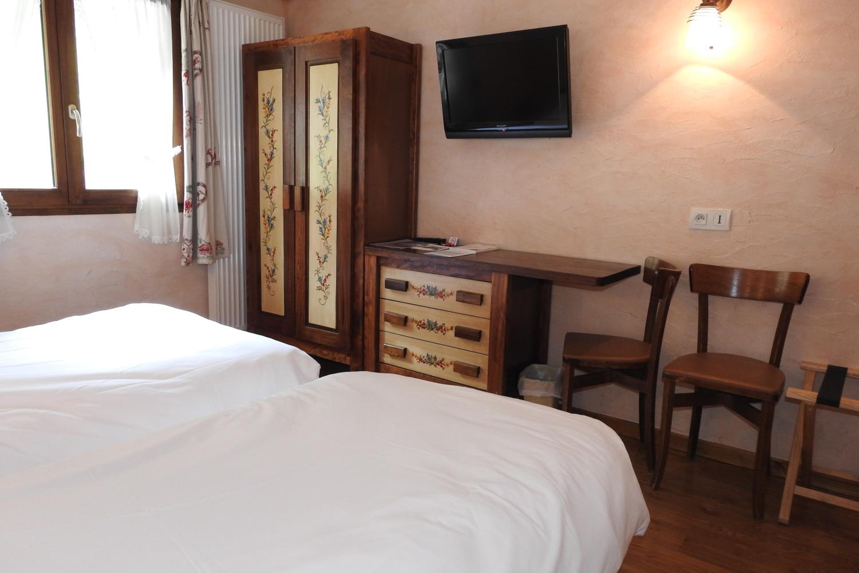 Experience comfort in our guest rooms equipped with modern amenities, including a flat-screen TV with satellite channels. Some rooms even boast a balcony offering stunning views of the surrounding village.