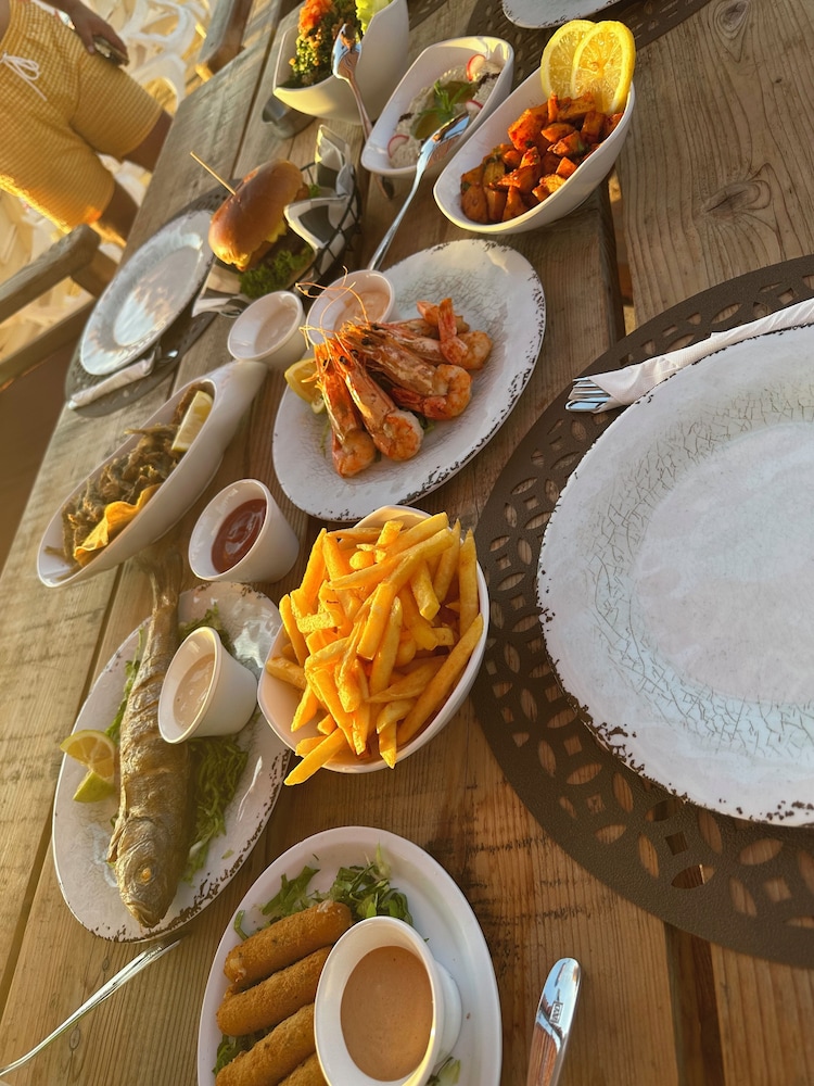 Food was extremely expensive. 6 none alcoholic drinks 1 meal of chicken fingers, 1 meal of cheese sticks, and 1 Houka cost $100. Could not shower due to the lack of hot water, informed staff about water blockage in shower and no response. I would. It recommend the place for anyone who’s over 5’10” on the first floor and 3’ on the second floor. My daughter hit her head in the ceiling and had a concussion. We have to cut our trip short and return to the US.