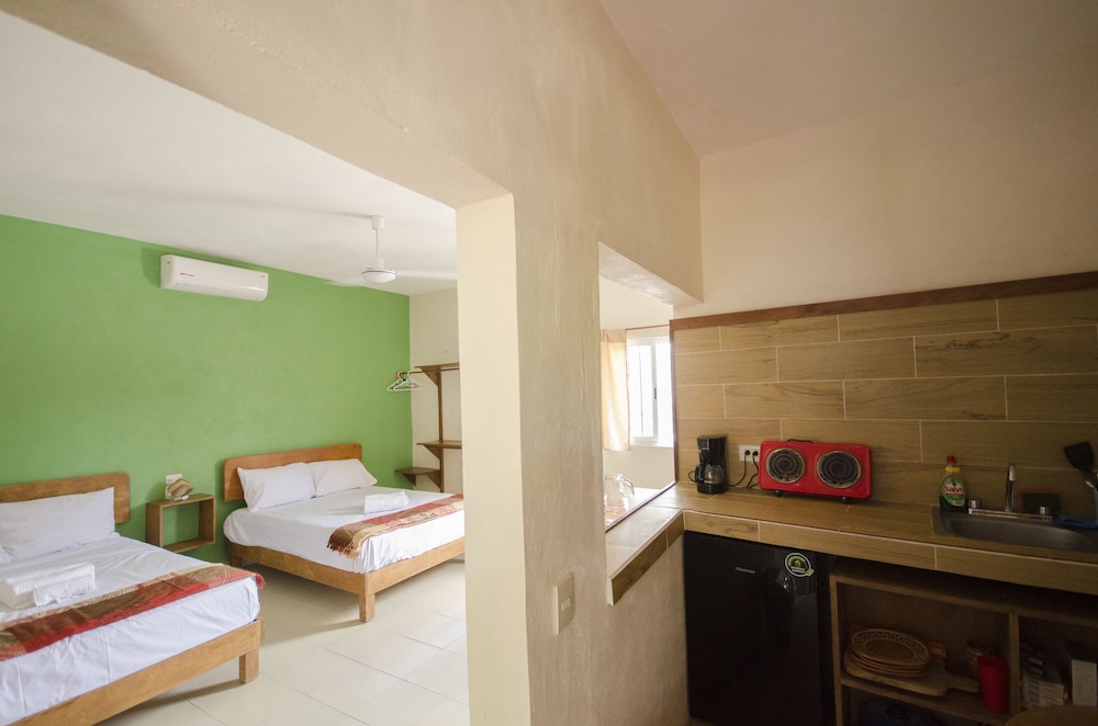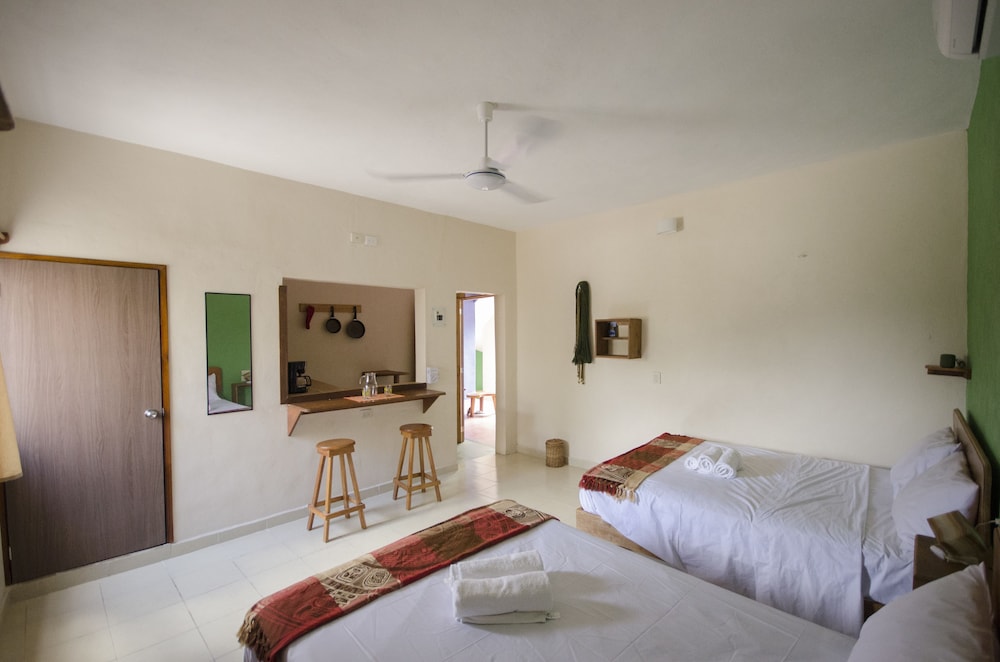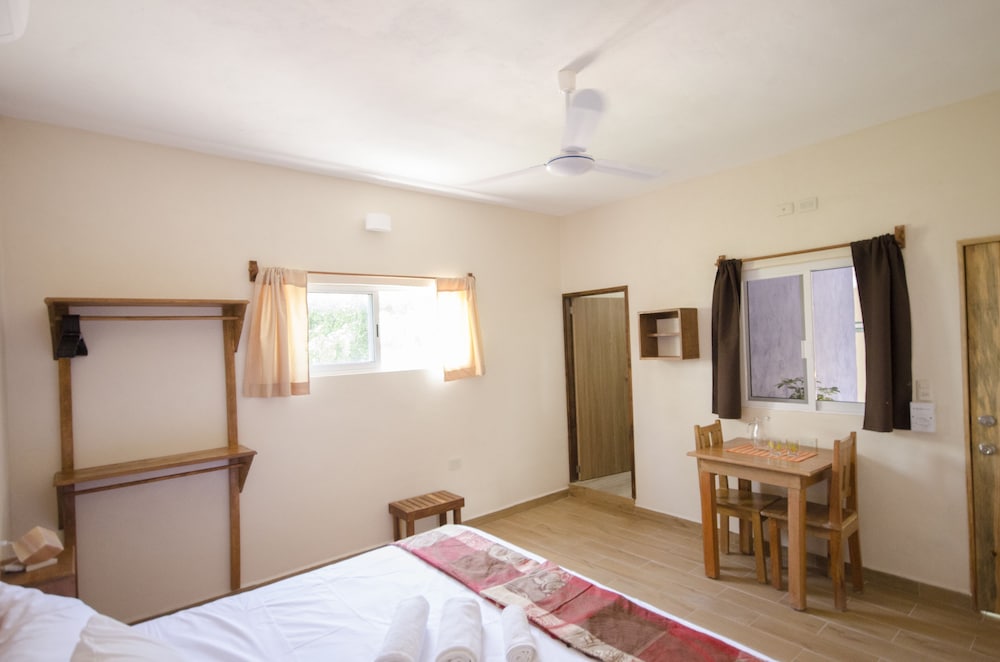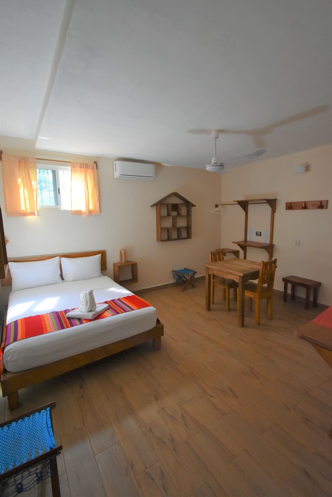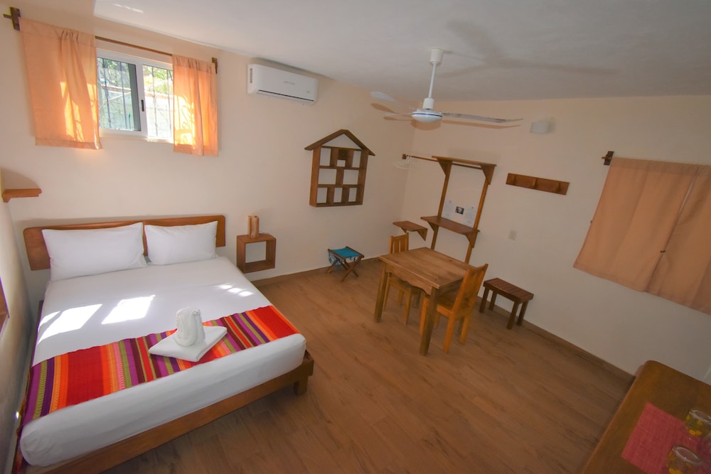 Este alojamiento nos gustó mucho, está muy bien situado en una zona tranquila pero cerca de la calle principal (3 mins andando). El hotel era muy bonito tenía mucho encanto. Pudimos aparcar casi en la puerta todos los días de forma gratuita lo cual es un plus. A nosotros no nos dio la sensación de que Tulum no fuera seguro pero mantienen siempre la puerta principal del hotel con llave y hay que estar abriendo y cerrando. Te limpiaban la habitación todos los días. La azotea es muy bonita