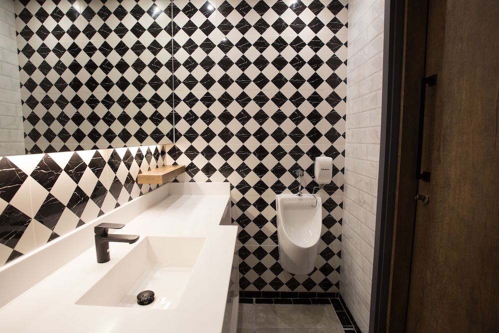 Use eco-friendly concept of glass bottles n flask to reduce single use plastics. Hotel lobby only accessible by key card from 6pm so that's good security. Easy access to 24hr minimarts, abundant food choices within walking distance.
