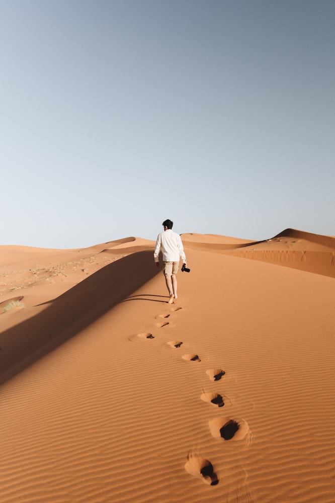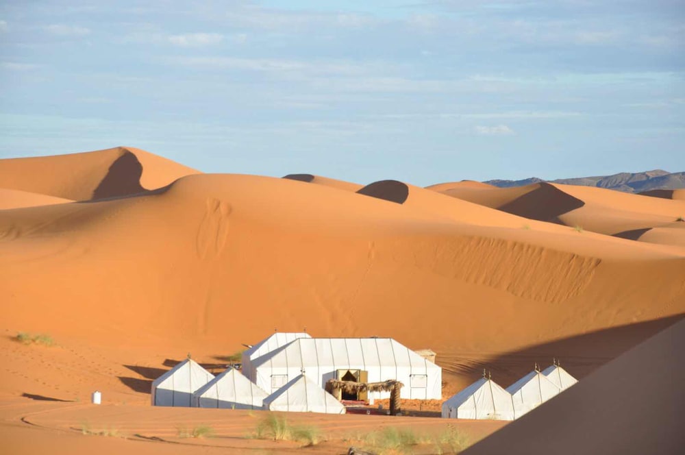 Buena experiencia dormir bajo las estrellas en el Sahara, pero a este campamento le faltan algunos detalles. Las fotos de la web no corresponden a la realidad, y las carpas ya no están entre las dunas. Los campamentos están relativamente cerca y son bastante parecidos unos de otros. Las camas y carpas nuevas son cómodas, el baño funciona bien y las sábanas blancas están limpias.