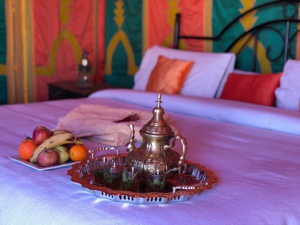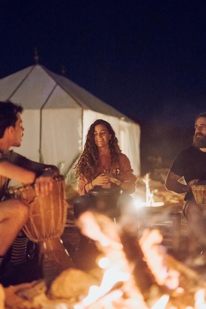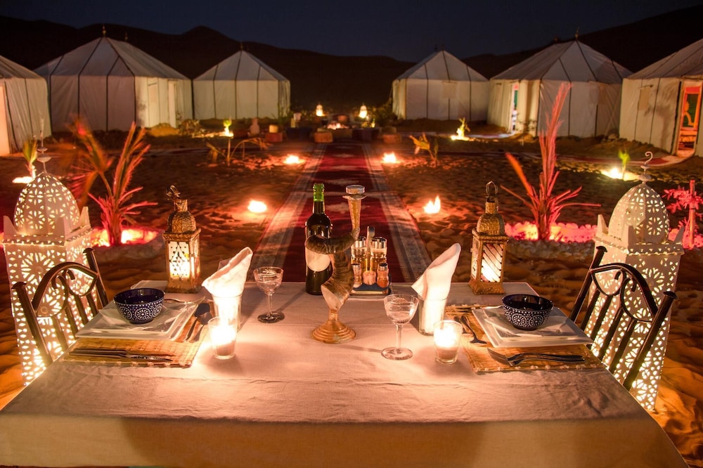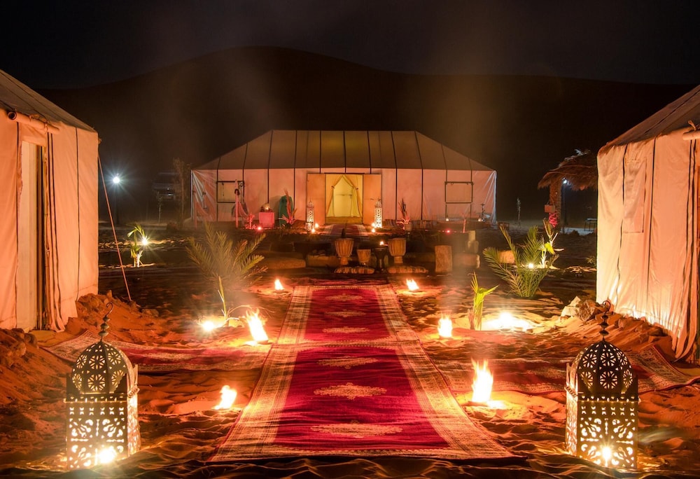 The photos are simply untrue. The camp is in poor condition - broken chairs & lanterns; blankets thrown about; garbage strewn here & there. There is only one outlet in each tent and electricity was not always available. We had less than five minutes of hot water over 48 hours. Often one teenager was the only staff on site, and we had to communicate using Google translate, as the adults simply were not around. Hamid did his best to keep things lively, but he’s working with very little. I would not recommend this camp to anyone - and I’ve been to others, so this is not a review in isolation. The owner Albert (who is apparently back in Spain) told us we would be picked up at a location 10 kms from the place his staff were waiting. They couldn’t be bothered to come get us and we could not find the site on Google Maps. Eventually we found each other, but this is one example of poor service and communication. Thankfully our 4x4 guide Barack saved this trip by making our tour memorable. The rest was simply disappointing all around. Go elsewhere and get a real camp experience…