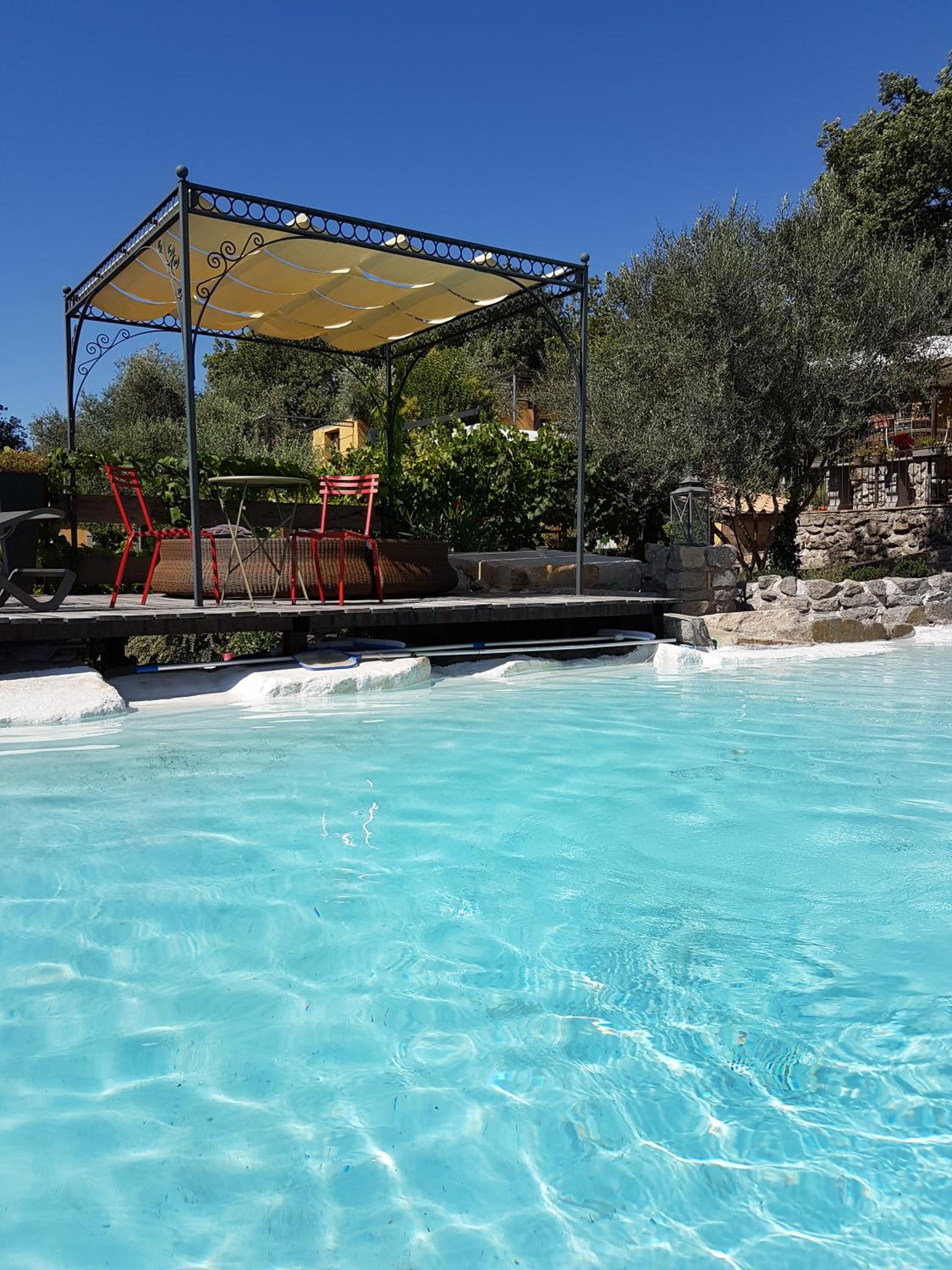 Situated just 4 km from Viterbo city centre, the resort provides a peaceful retreat with a furnished garden and BBQ facilities for outdoor dining. Explore the nearby shops in Bagnaia or take a short drive to the picturesque shores of Lake Bolsena, only 25 minutes away.