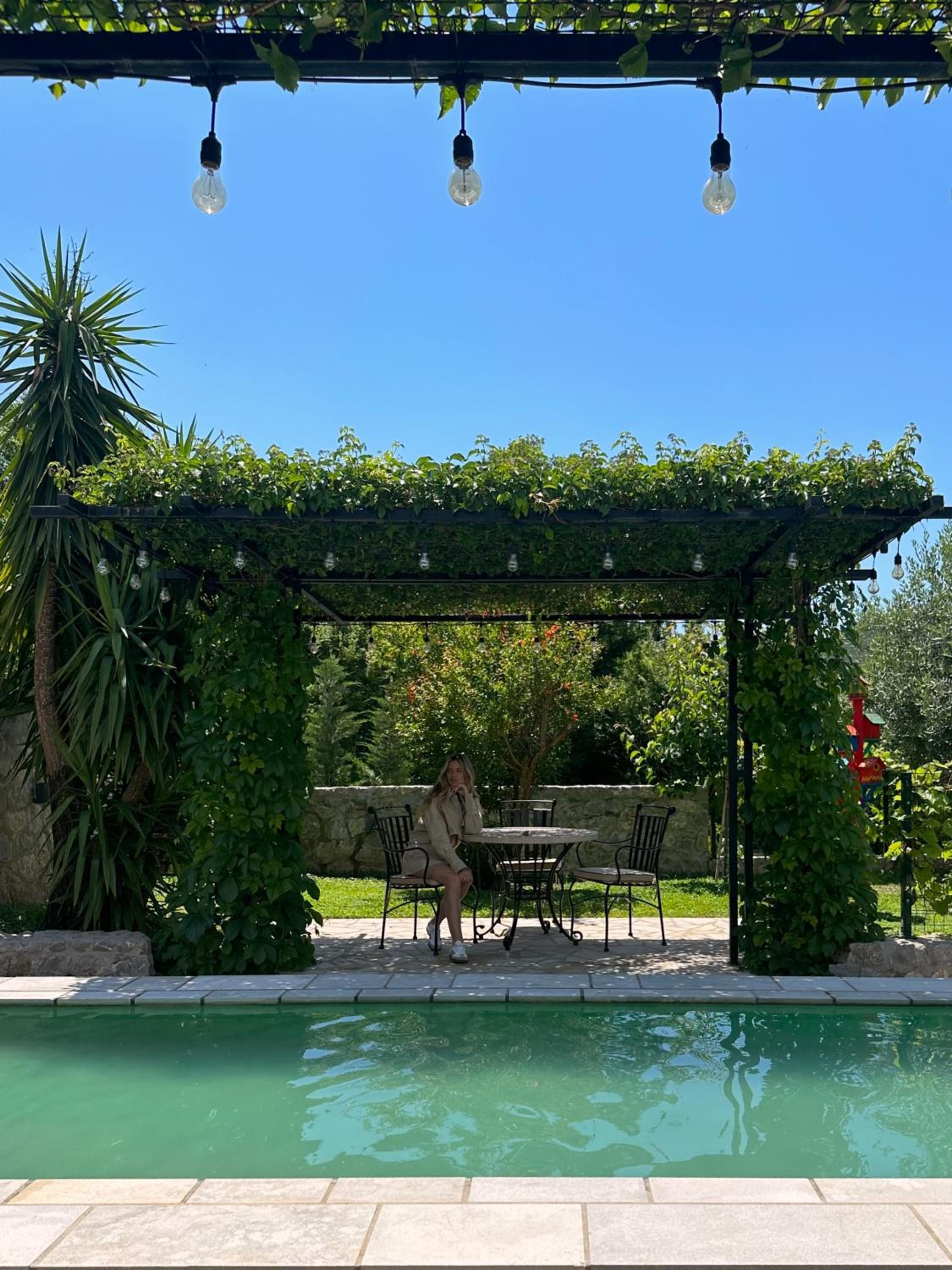 שהינו בבונגלו ליד הבריכה. פינת הישיבה מחוץ לחדר, תחת הצימחייה הייתה נעימה. גם הבריכה נחמדה ומטופחת.
