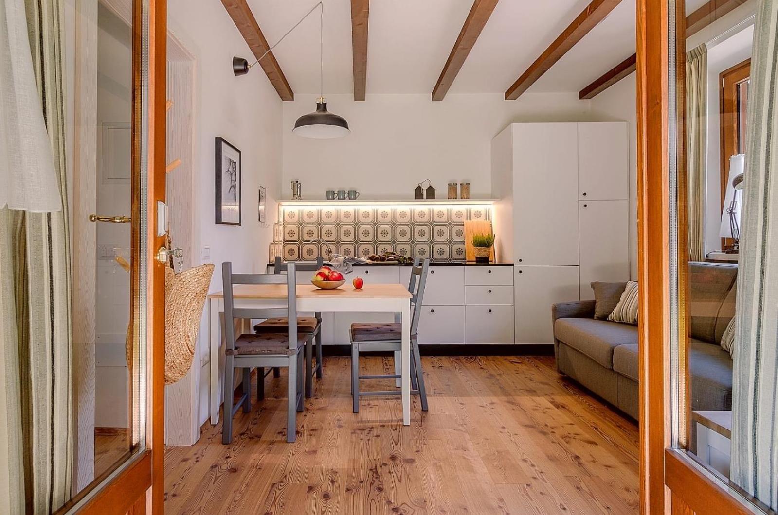 Kalter Fliesenboden, wir hatten keine Hausschuhe dabei und ich friere sehr schnell. Die Betten haben gequitscht, beim Lattenrost fehlen einzelne Latten und es wurde nur ein Brett darüber gelegt. Kein Spüllappen mit den man den Tisch oder die Arbeitsflächen hätte abwischen, können. Kein Spülmittel, Keine Spülmaschinen Tabs, bzw mittel. Wir waren 2 Tage dort, da fällt einfach Geschirr an. Kein Salz, kein Zucker. Muss nicht, wäre aber schön gewesen. Dann gibt es eine Türe die zur anderen Wohnung führt, da hörte man ständig jemand Laufen und sprechen. An einem Abend hat es so nach Lackmittel gerochen, als ob in der anderen Wohnung was gestrichen wurden wäre. Das war ganz schlimm. Die Wohnung war zweckmäßig eingerichtet aber nicht liebevoll wie man es gerne vorfinden würde und wie der Eindruck auf den Bildern vermittelt.