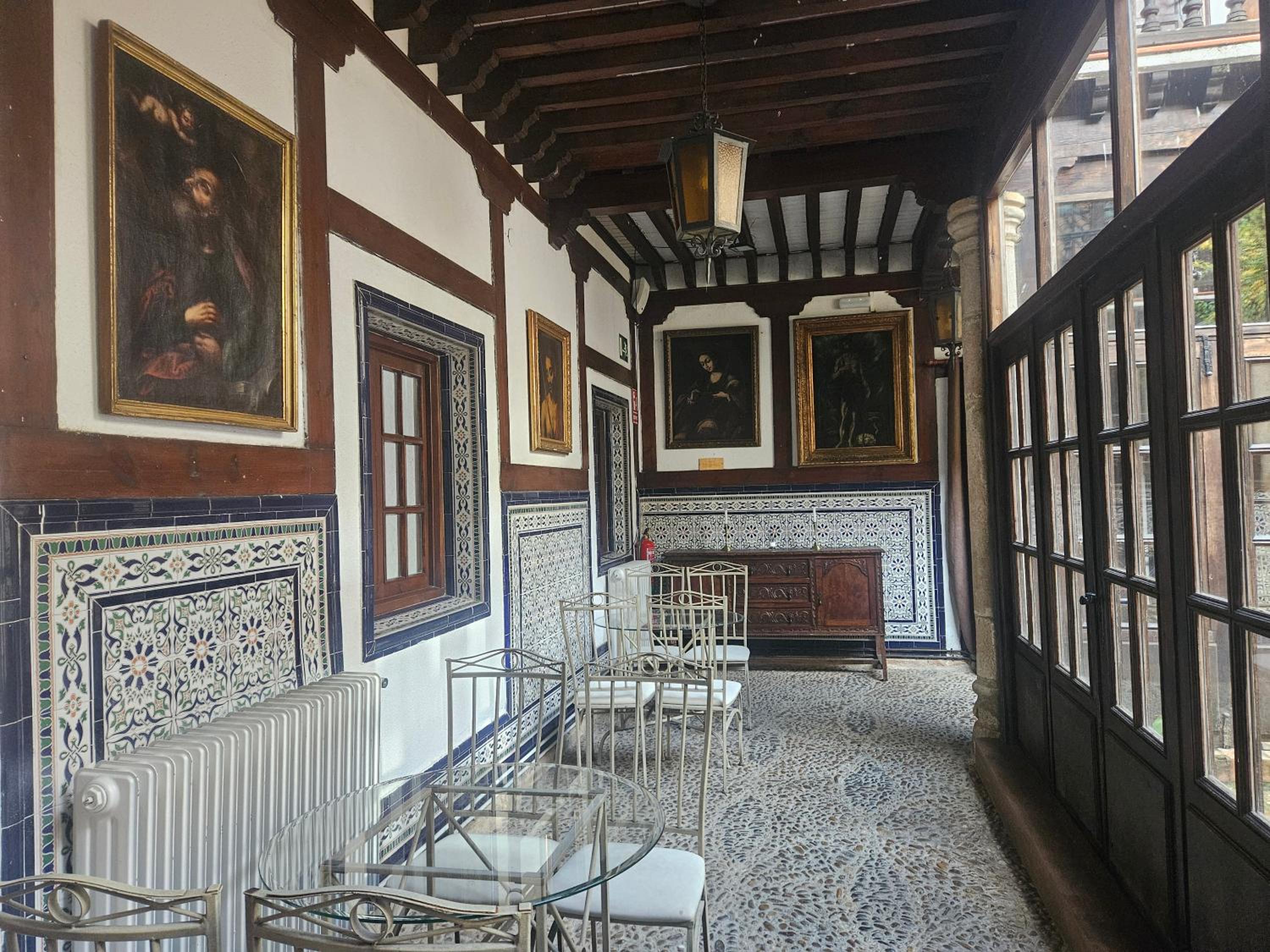 Cuenta con servicio de bar donde puedes tomar algo en la bonita terraza situada en su bonito patio y galería porticada