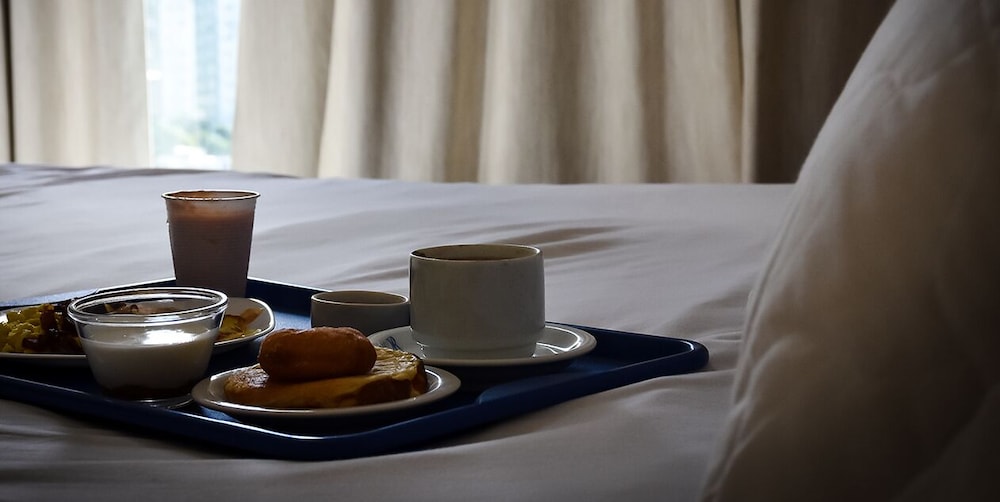O atendimento dos funcionários é excelente, variedade no café e jantar, mesmo sendo uma cortesia, são ótimos. O espaço do quarto tbm é muito bom e funcional, e o ar condicionado funciona bem.