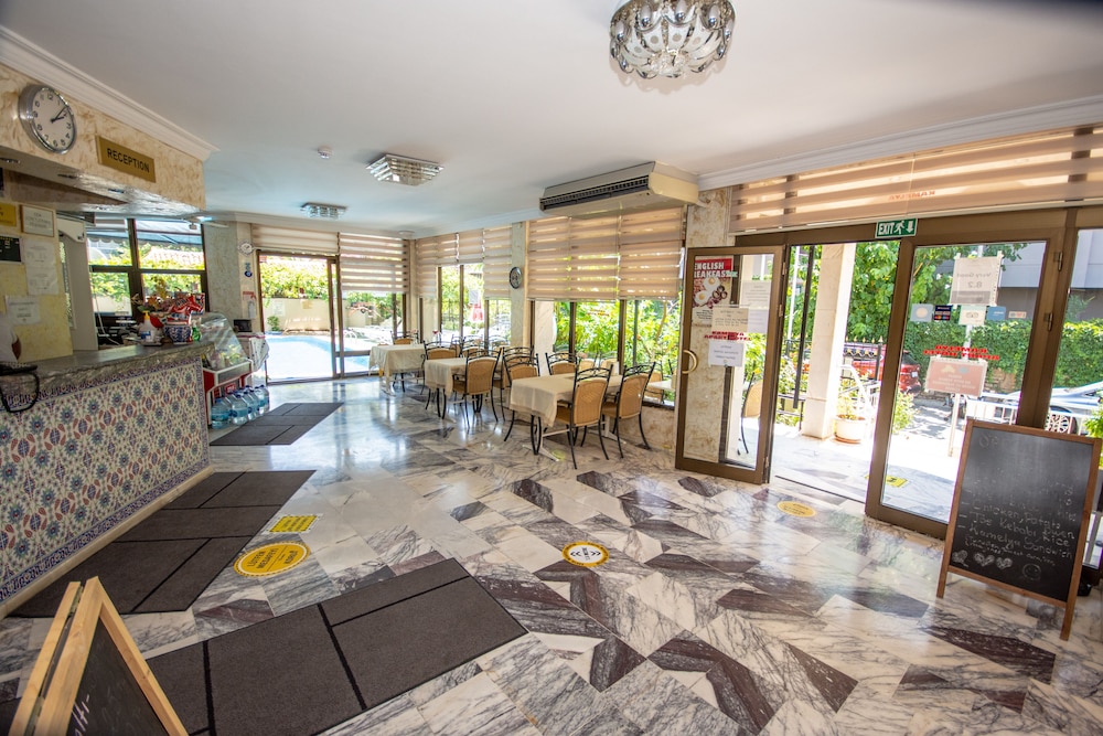 They cater to the UK if you're American/Turkish or I'll guess any other nationality don't bother, they are extremely unwelcoming. I was told drinking water in the outdoor common area was "forbidden" meanwhile a bunch of Brit's was eating bags of chips. The USA/UK soccer game was on and the worker turned down the volume when they played the National Anthem, knowing I was American. It's like a small British colony run by rude Turkish people. I don't get it. The rooms are big and the cleaning women are amazingly nice and would probably do better at running the establishment. Oh, yea they say they are pet-friendly but then complained my dog barked.