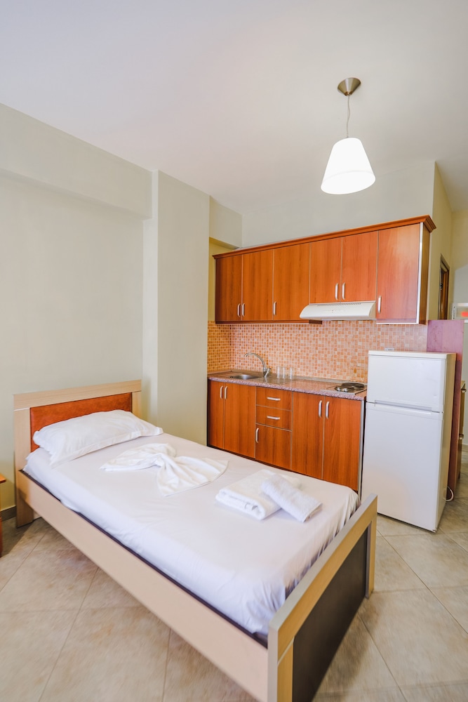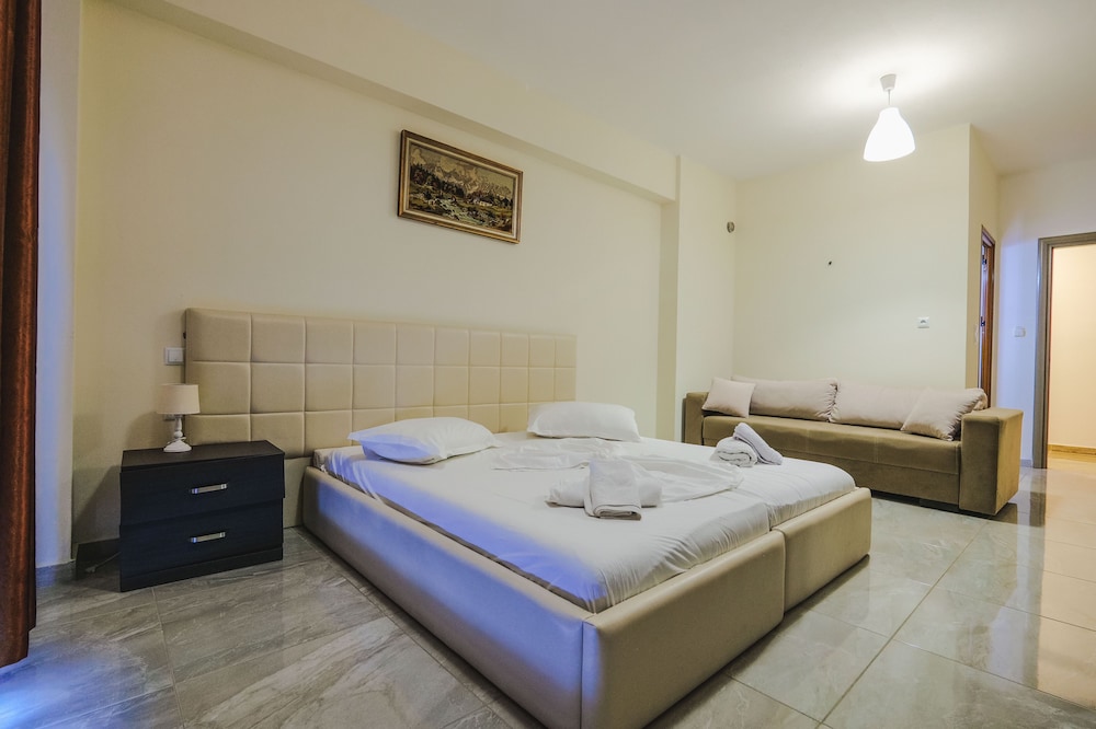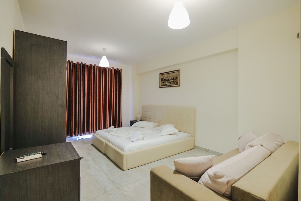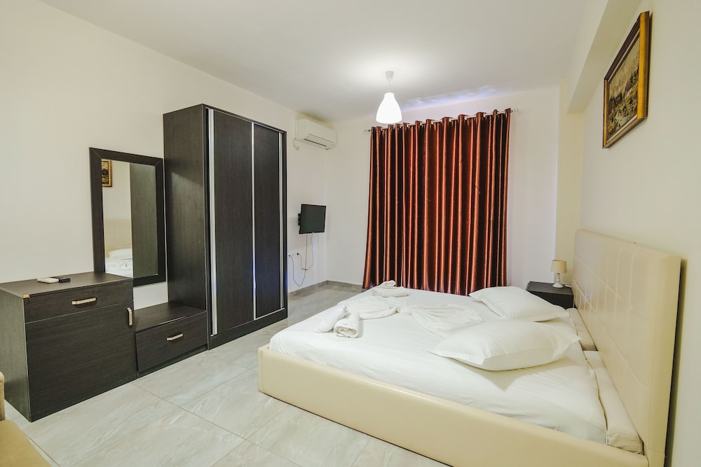 DIFETTI: stanze mal isolate acusticamente (se i vicini sono rumorosi come quelli che abbiamo beccato noi, anziché relax, farete notte bianca!); il mobilio sembra assemblato tra vari lowcost acquistati qua e là (in camera avevo letti con testiere diverse, armadio di altro tipo ancora); aggiungerei una mensola in bagno per appoggiare il cambio d'abiti dopo la doccia; mal indicato dalla strada principale (l'ingresso della via è adiacente al bora bora); manca la raccolta differenziata dei rifiuti; il solito problema di fognature maleodoranti che c'è in gran parte dell'Albania; la strada per arrivare dal mare è costeggiata da un rigagnolo di fognatura a ciel sereno! Comunque, in generale nulla di grave ma è una struttura potenzialmente di categoria superiore ed è un peccato che i dettagli siano curati poco.