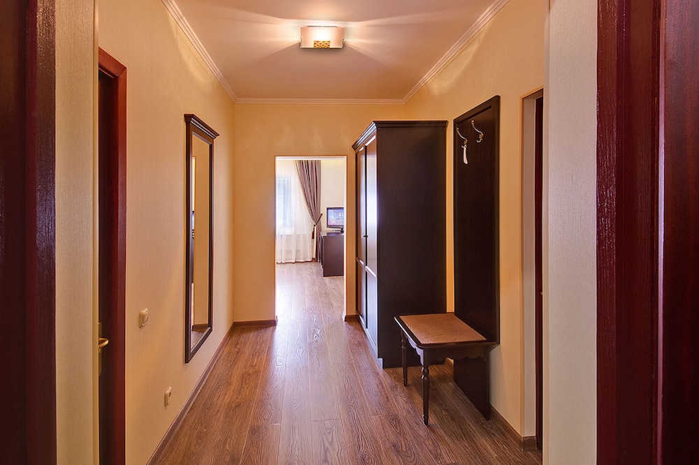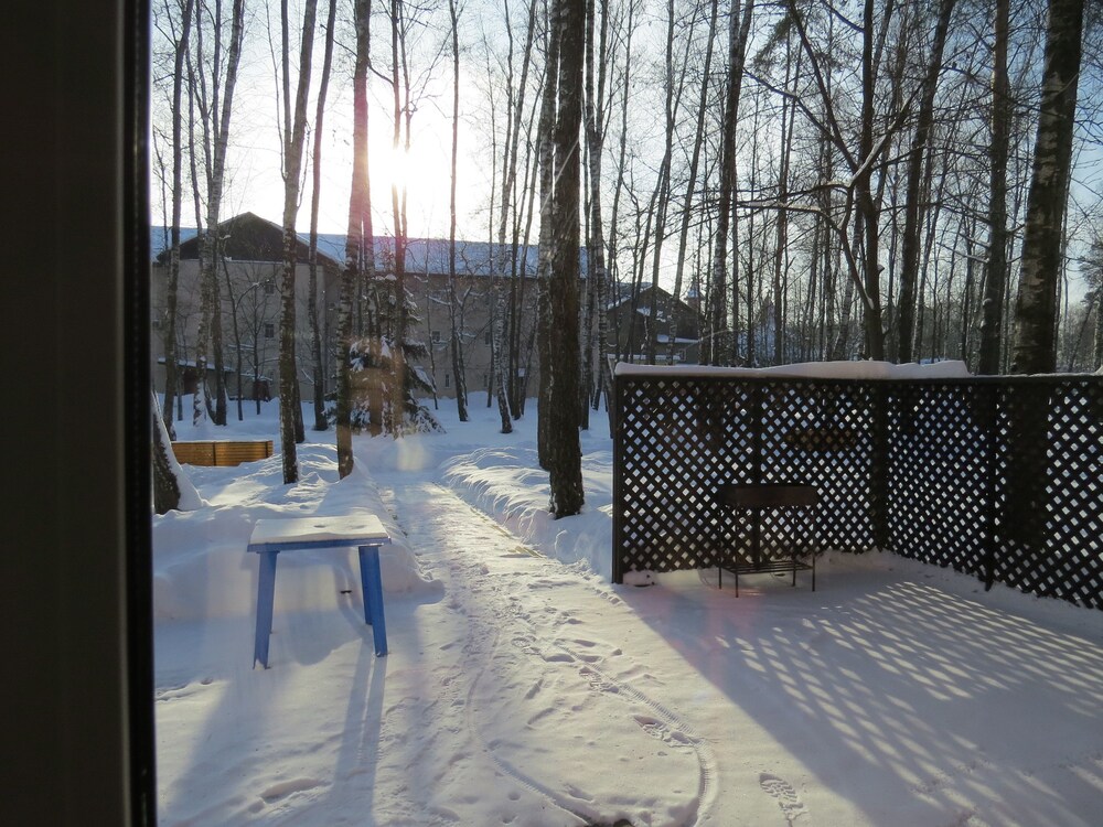 The hotel is situated in a forest next to the motor way. There is not much close by accept the motorway services which include a KFC and a pretty good Ukrainian resturant.