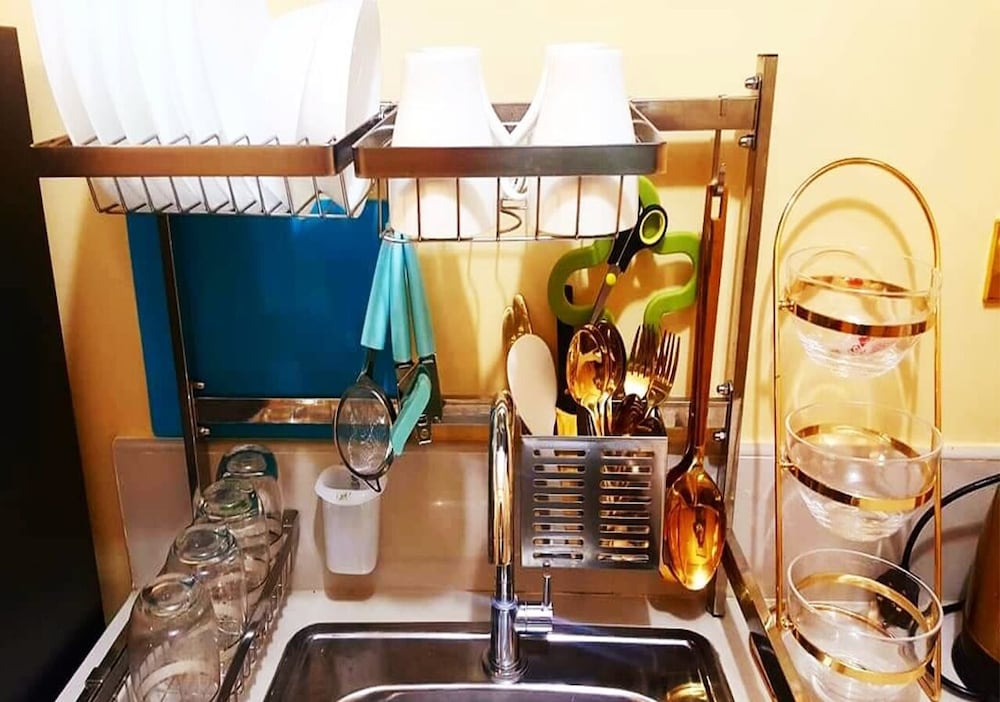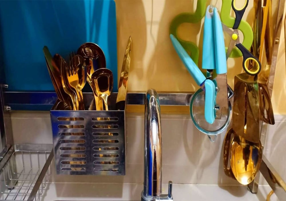 Inside the room - 1st impression very nice,we liked the gold theme but poor connection of internet and lots of cockroaches that bothered Us for 2 nights We stayed their place. Some appliances didn’t work like the microwave & laundry washer.