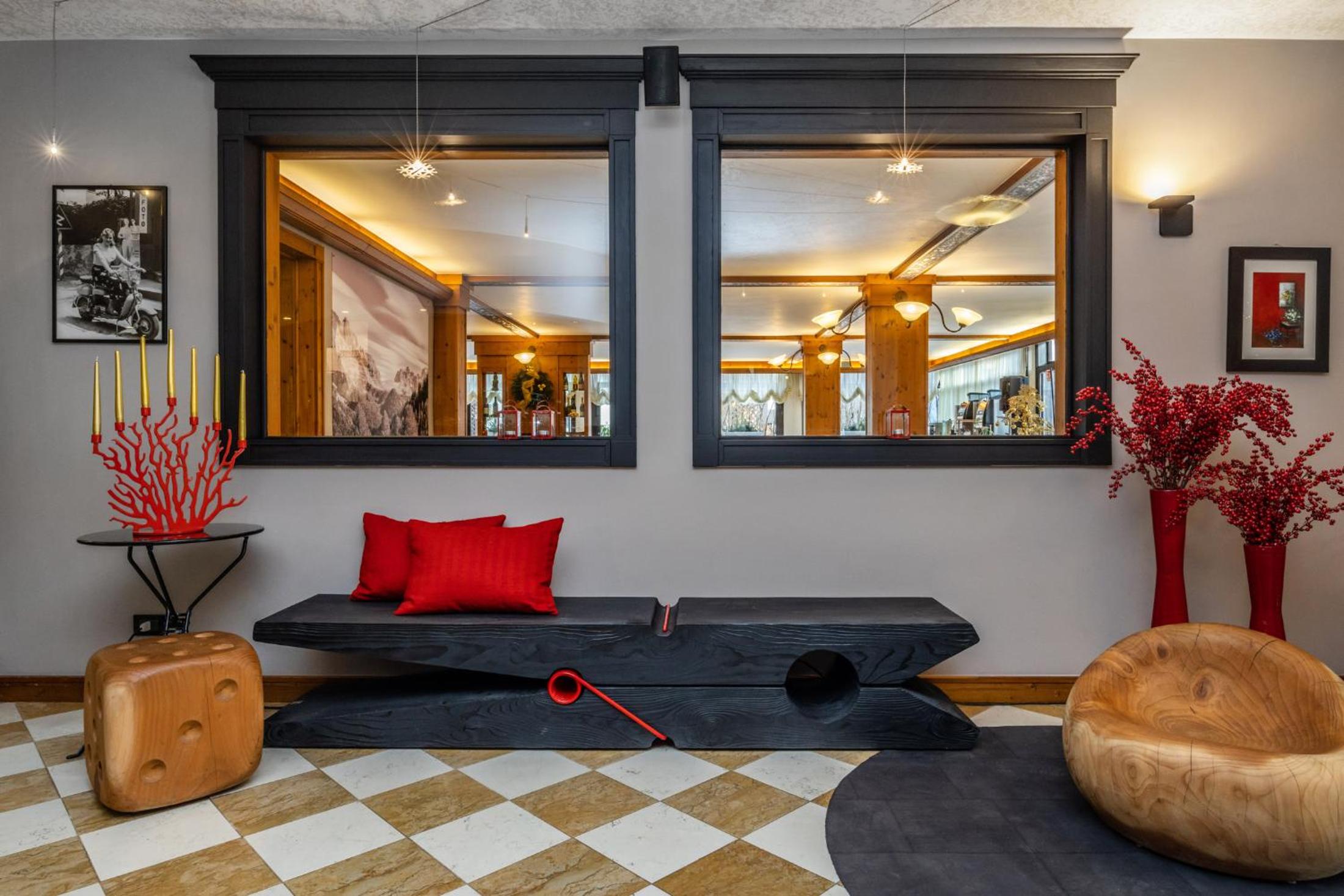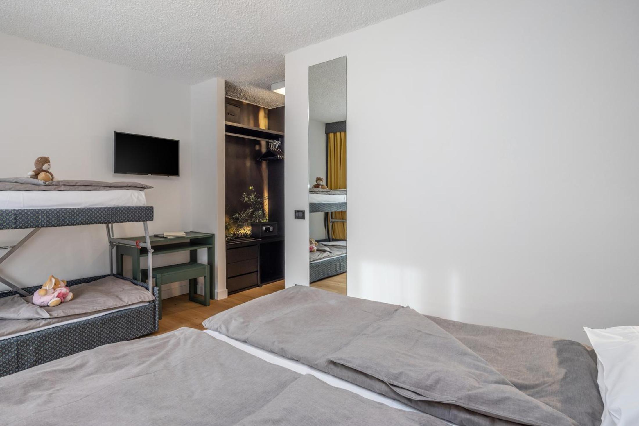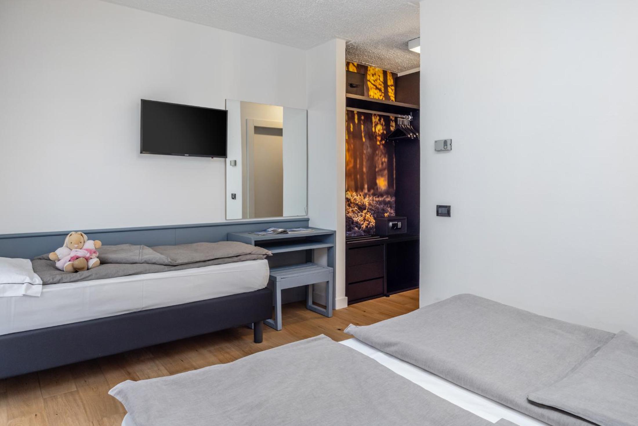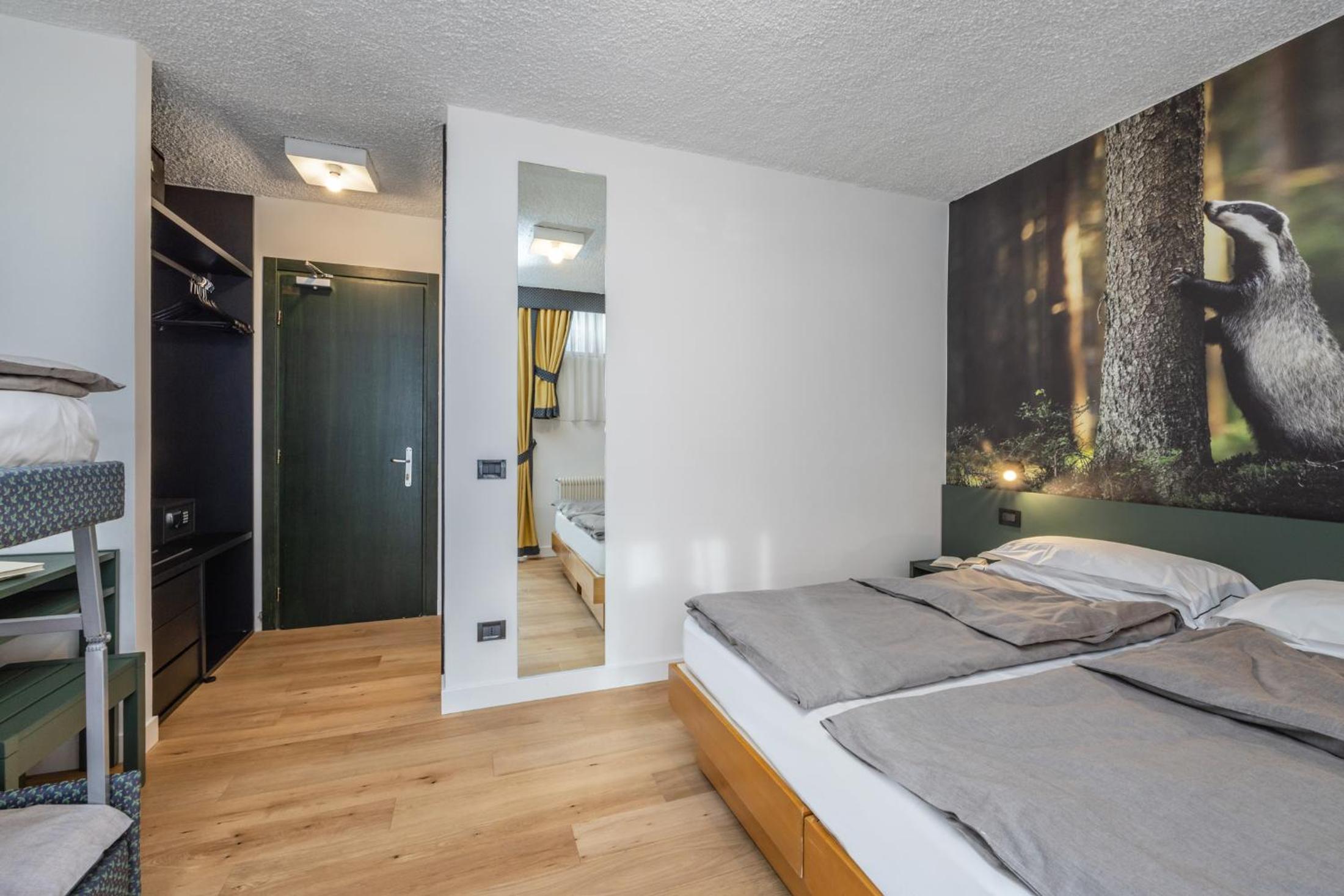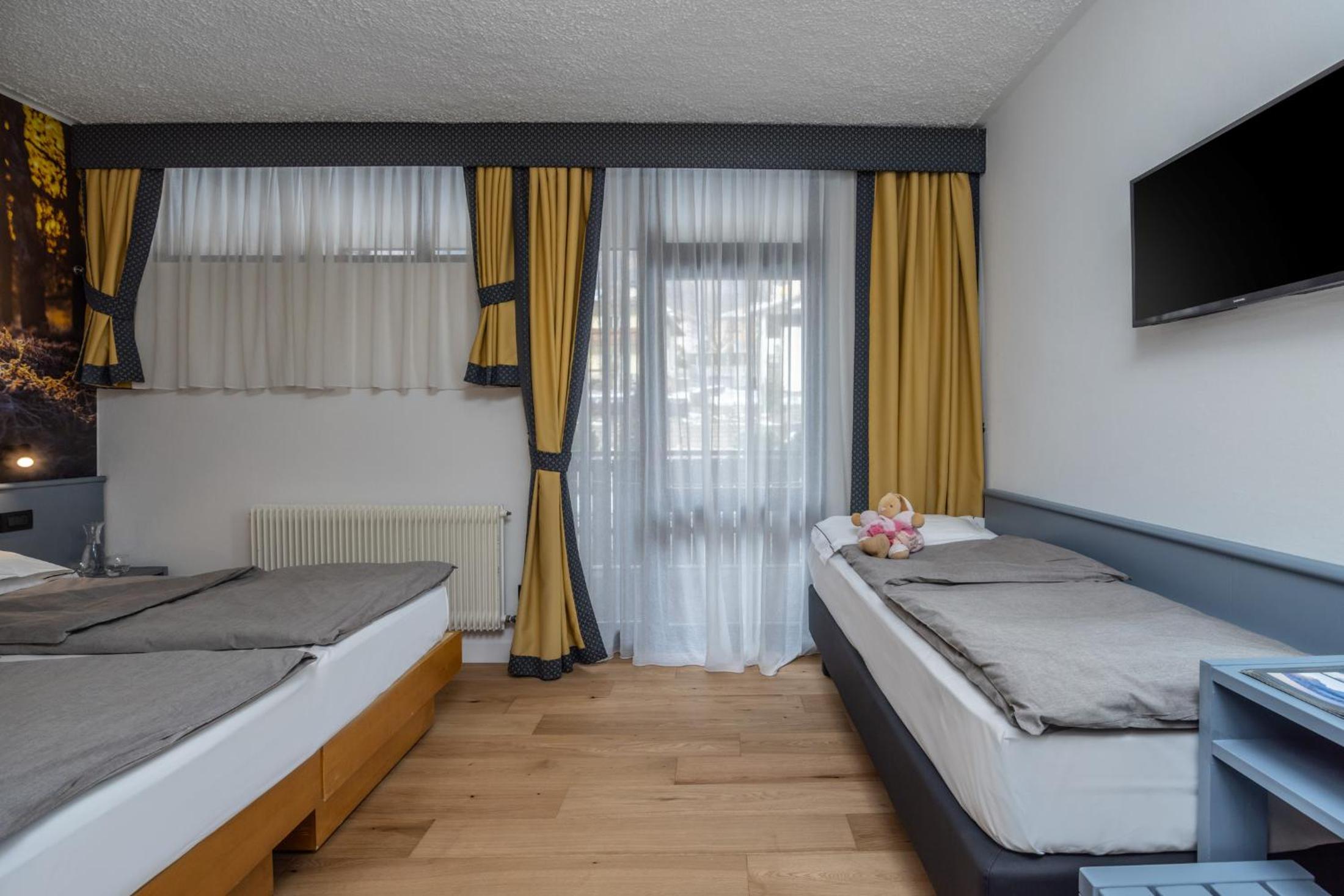 Basic rooms with dated and minimal furniture. Not ski-in ski-out, need to drive 10 minutes or take the hotel shuttle. Limited breakfast with not hot food items - traditional Italian.