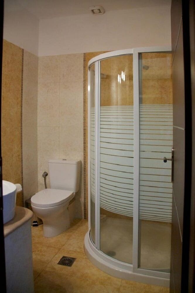 Relax in one of the 15 air-conditioned rooms with modern amenities like refrigerators, private bathrooms, and complimentary wireless internet.
