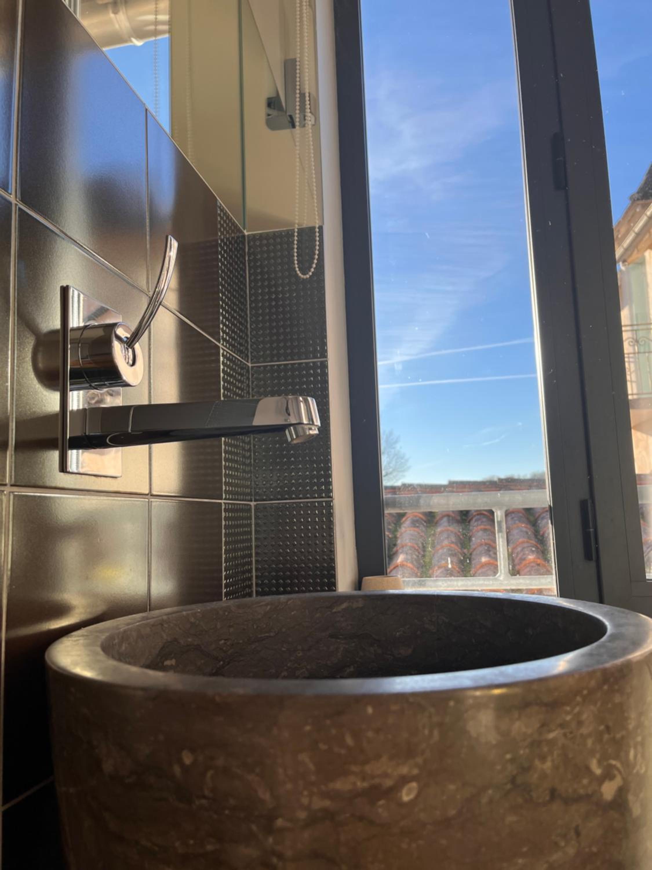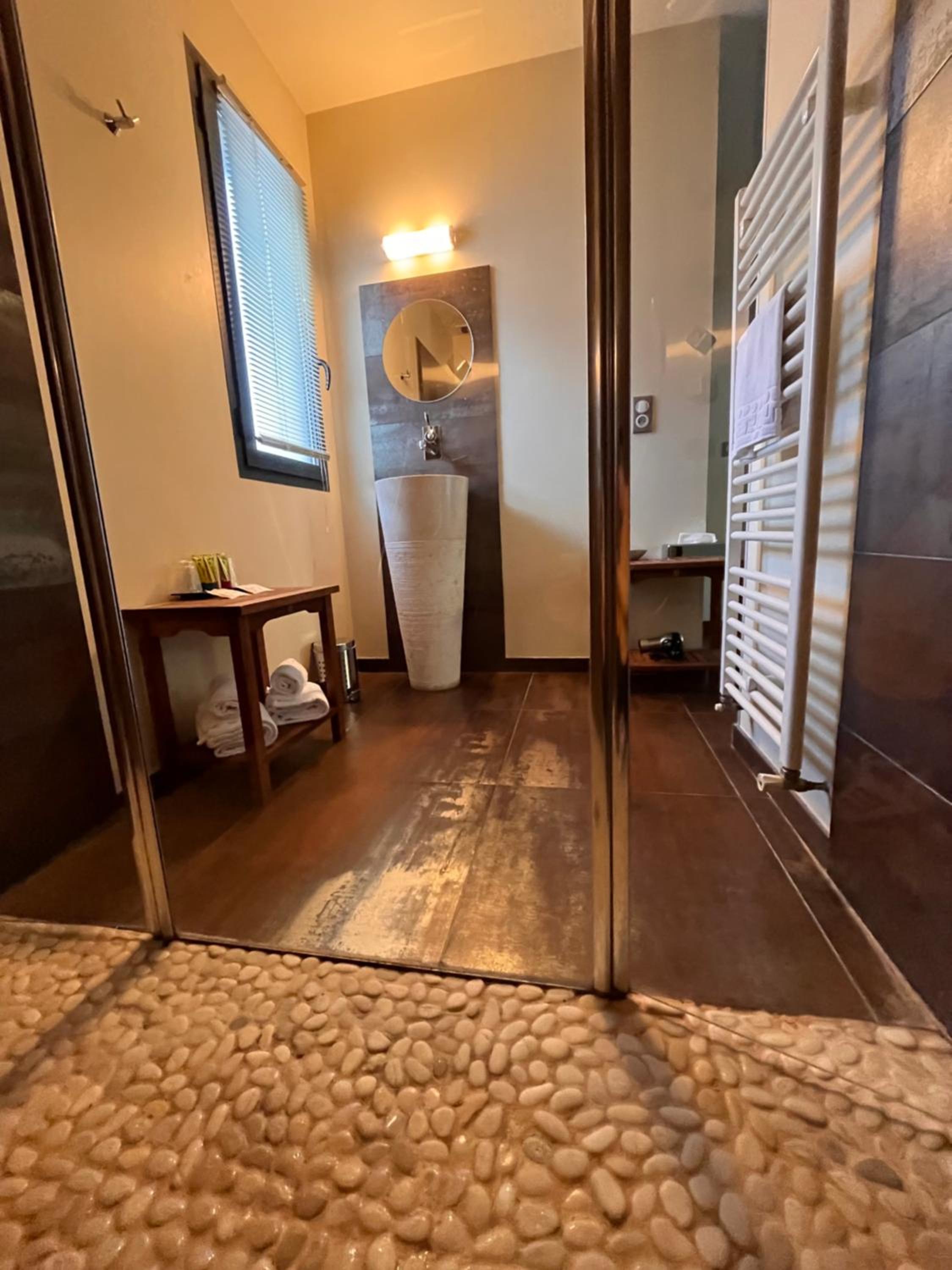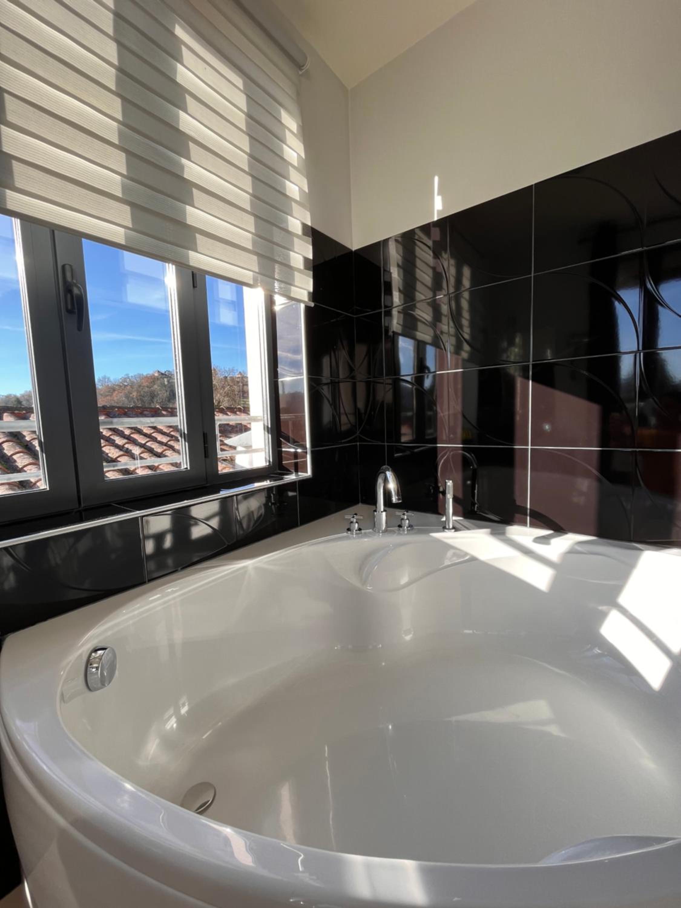 La baignoire est spacieuse et la literie de bonne qualité.