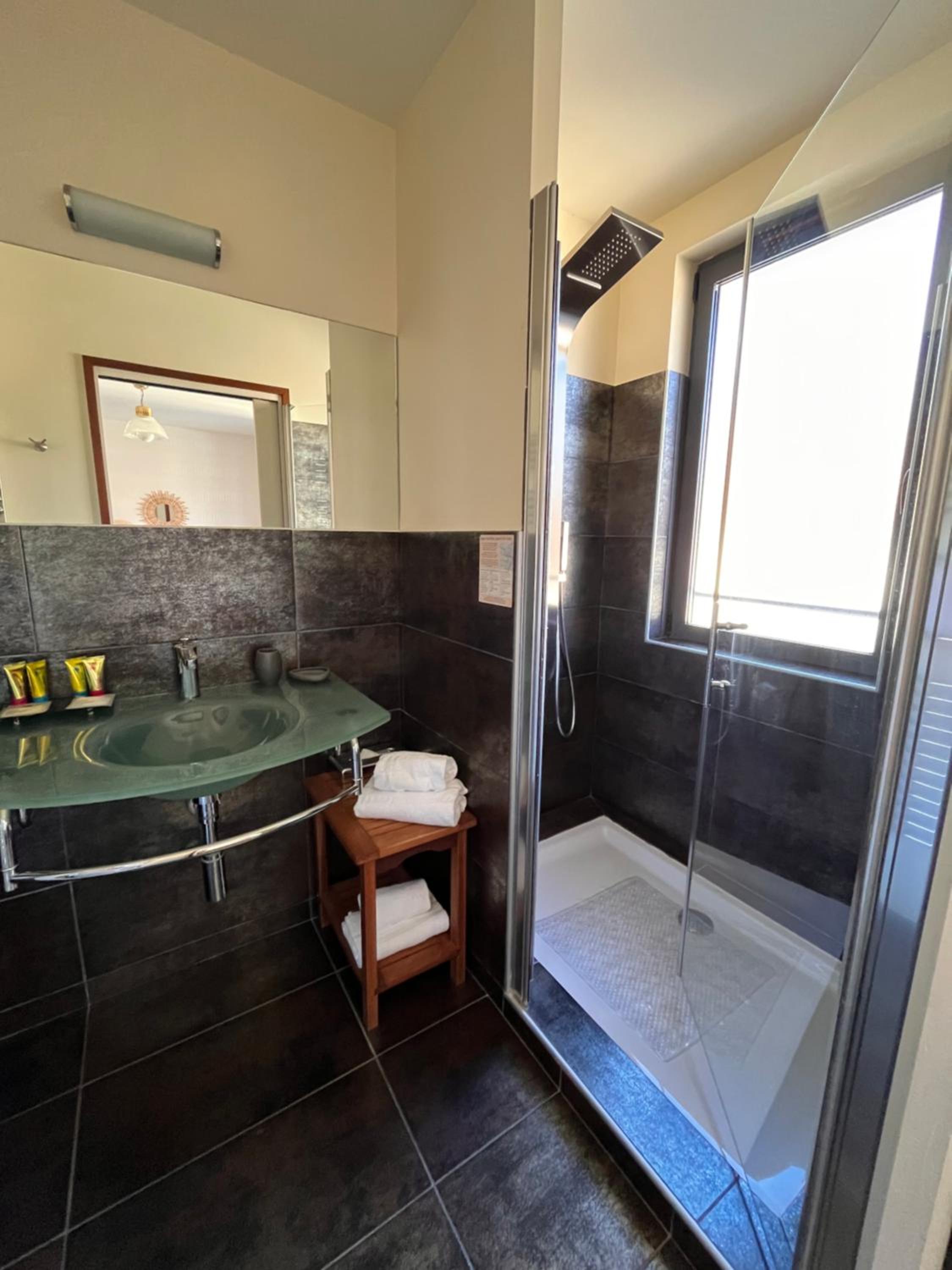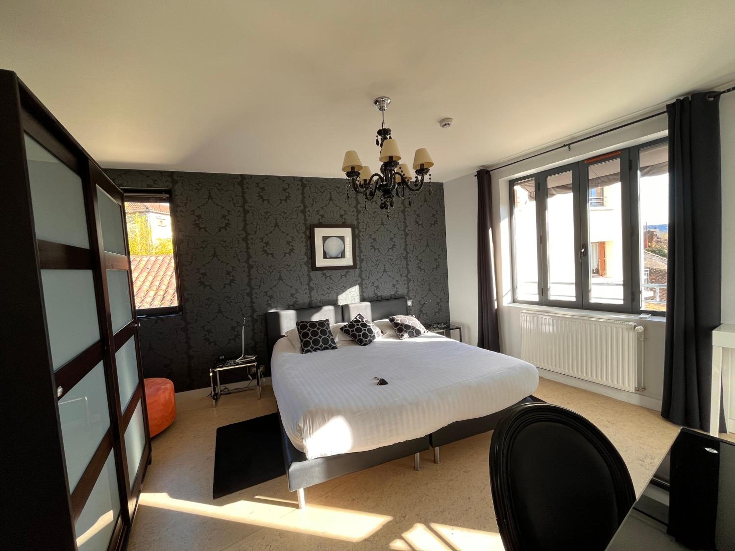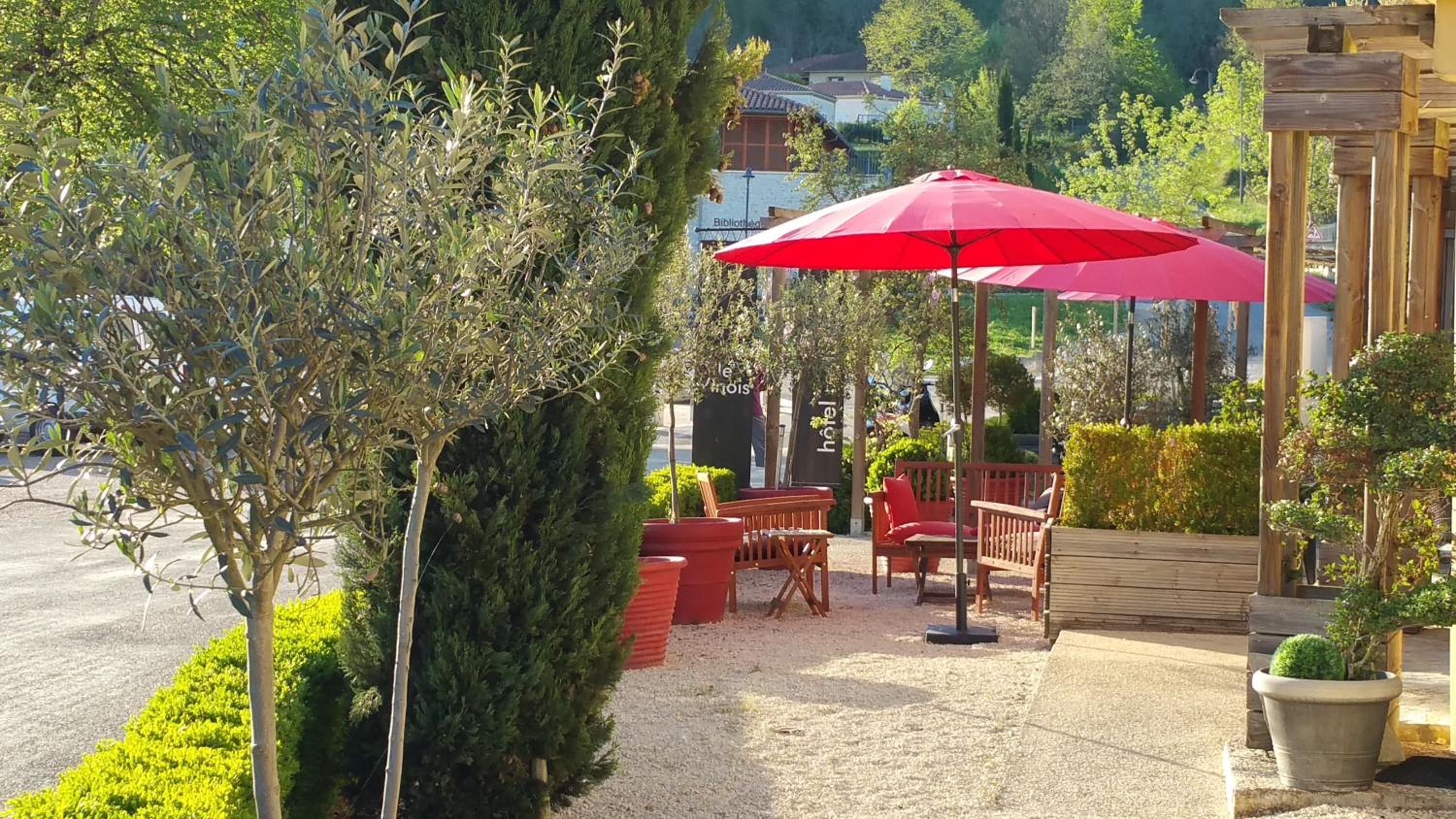 Hotel Le Vinois, nestled in the vineyards of the Lot Valley, offers modern rooms with sleek furniture, some with private bathrooms and soundproofing for ultimate comfort.