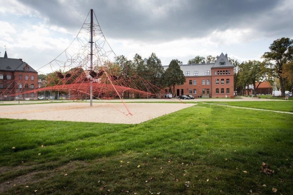 Det är ett Hostel, men när man kommer till adressen så frågade vi minst 4 personer som jobbade i olika caféer men INGEN visste var receptionen låg. Endast information på Polska på en dörr hänvisade till ett annat hotell där receptionen låg. Väl där så fick vi ett bryskt bemötande på väldigt usel Engelska. Hon var mer intresserad att prata i sin mobil. Rummet var som utlovat men väldigt mycket oväsen från en mycket trafikerad väg med minst en polis eller ambulansbil i halvtimmen. Mycket oväsen dygnet runt. Då rummen saknar Ac måste man sova med alla fönster öppna. Vi kan inte rekommendera detta boende. Men läget var fint då det är trevliga restauranger och en härlig park där barnen kan leka.