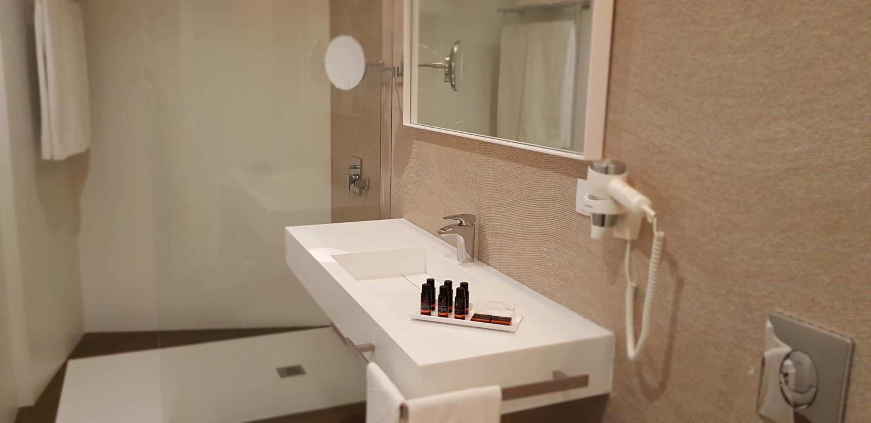 Location, hotel terrace, fabulous bathroom
